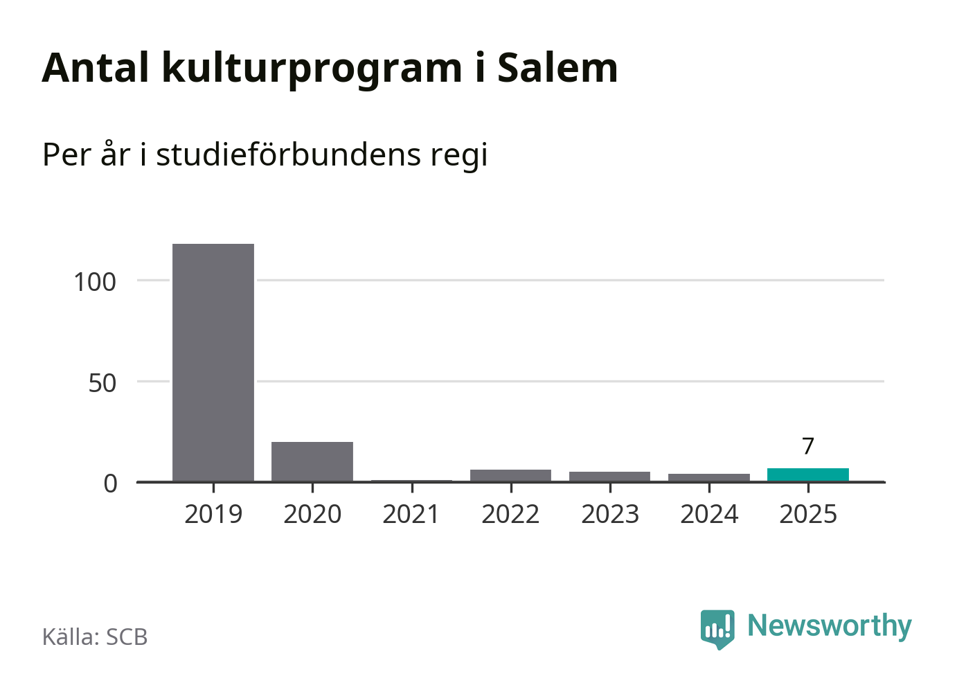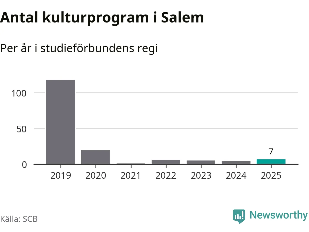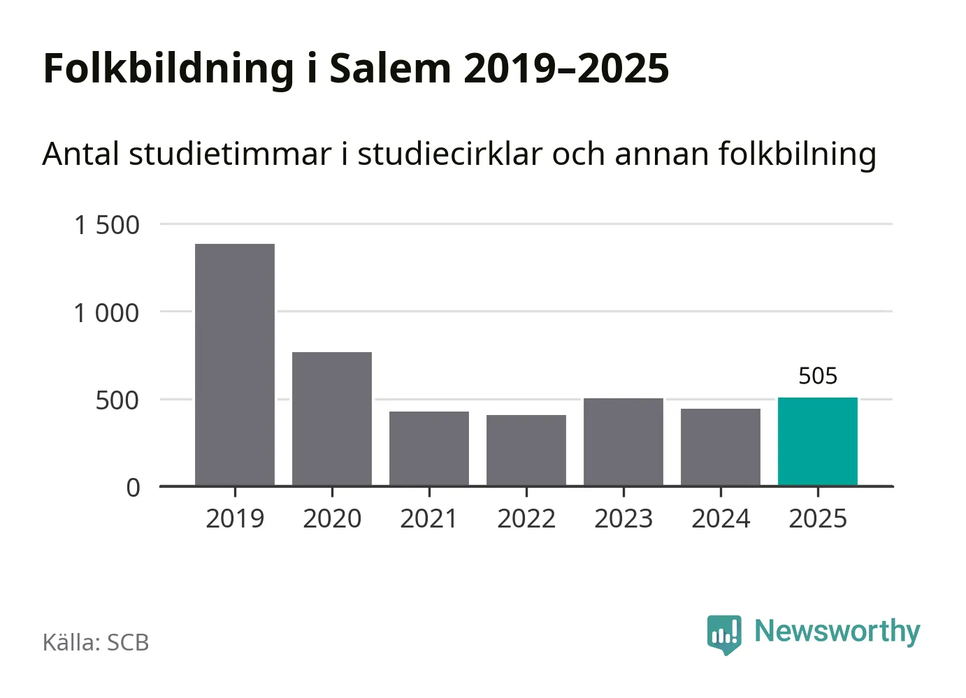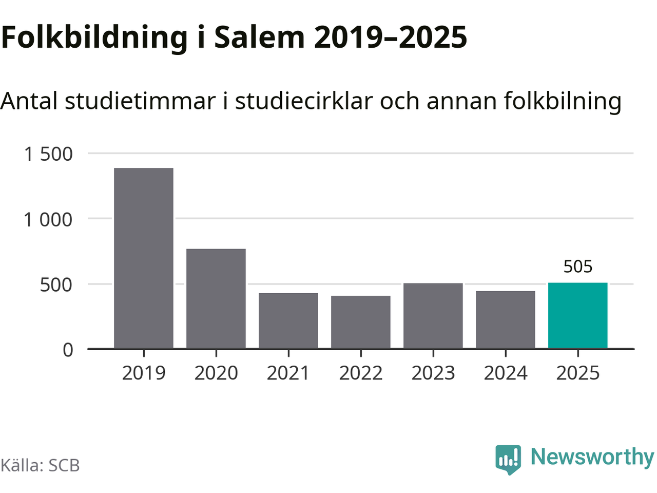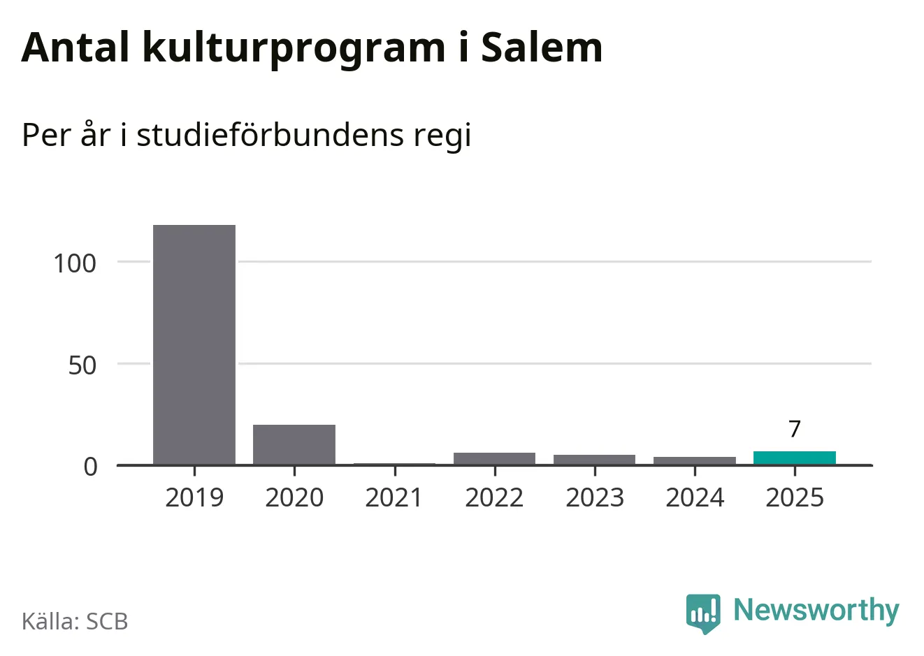 Även antalet unika deltagare ökade i Salem i fjol: från 80 till 141 personer. Det innebär att en procent av befolkningen i kommunen deltog i studieförbundens verksamhet under 2025 och det är den lägsta andelen i landet.