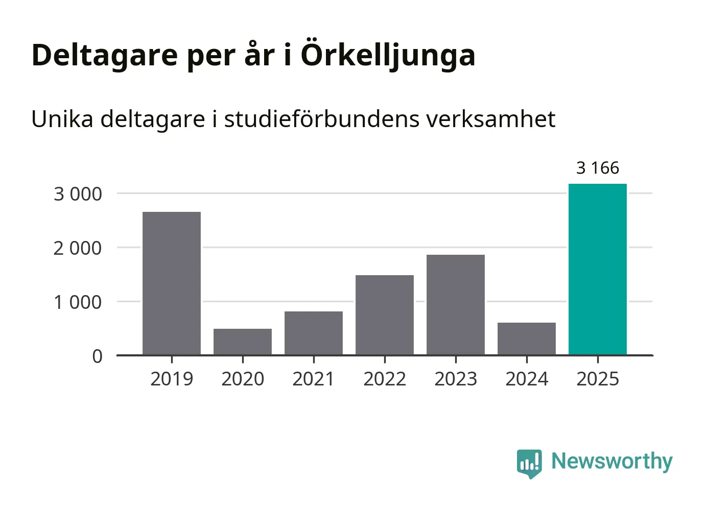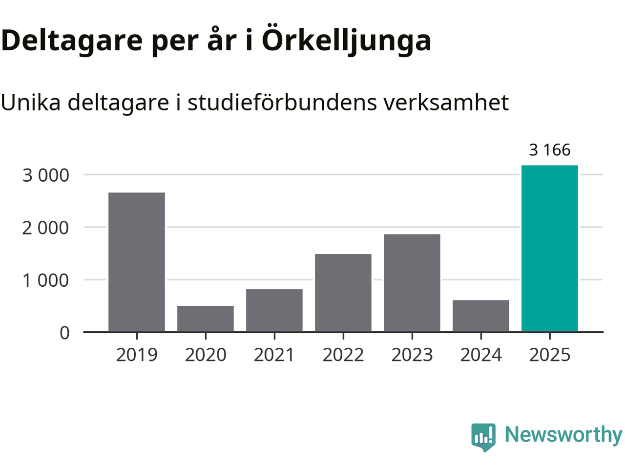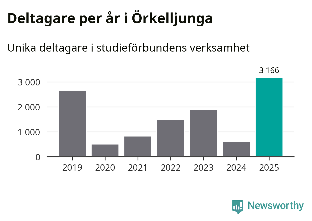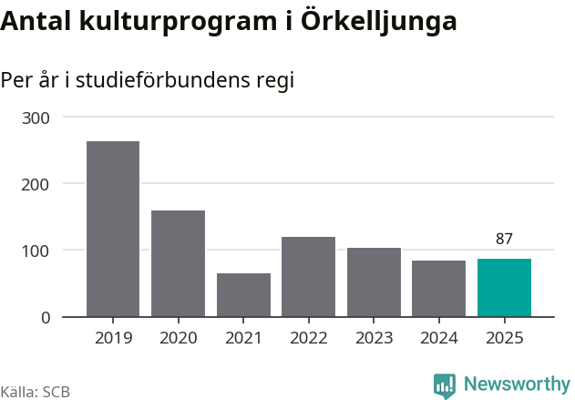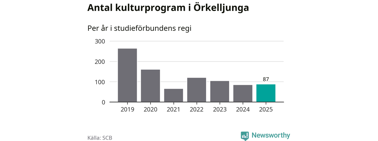 Även antalet unika deltagare ökade i Örkelljunga i fjol: från 603 till 3 166 personer. Det innebär att 31 procent av befolkningen i kommunen deltog i studieförbundens verksamhet under 2025. Det är den högsta andelen i landet.
