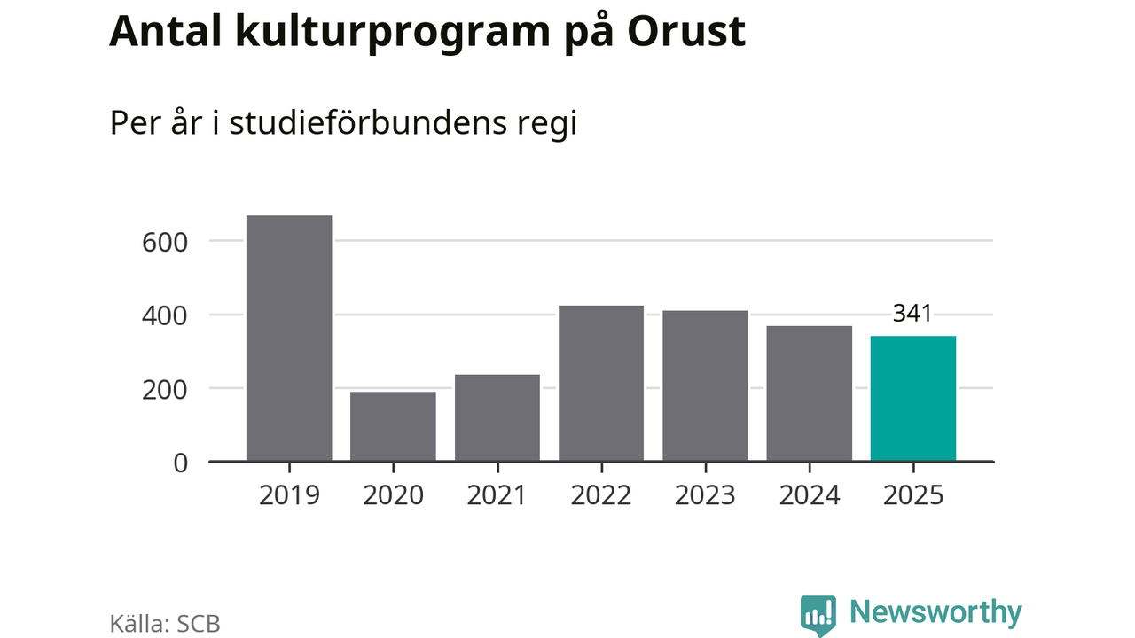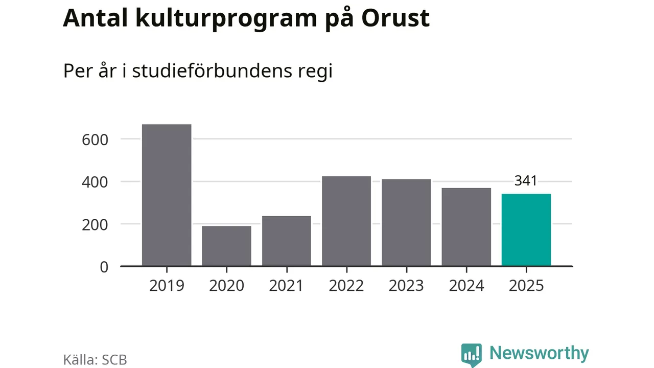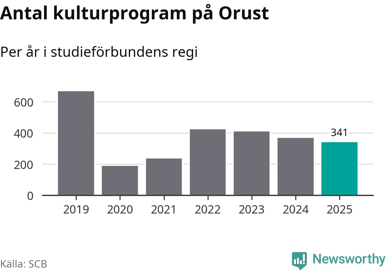 De svåra tiderna fortsätter för studieförbunden. Under 2024 och 2025 skars statsbidragen ner med totalt 350 miljoner kronor och under 2026 kapas de med ytterligare 150 miljoner kronor. Det har lett till uppsägning av personal, uppsagda lokaler och arbetsställen i allt färre kommuner. Och det märks i de färska siffrorna från SCB och Folkbildningsrådet: Under 2025 föll antalet studietimmar i studiecirklar och liknande verksamhet med sex procent jämfört med året innan. Det är tredje året i rad med färre studietimmar. Samtidigt minskade antalet kulturprogram som studieförbunden arrangerade med nio procent.