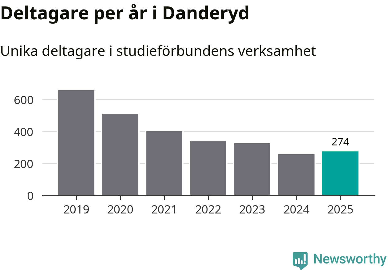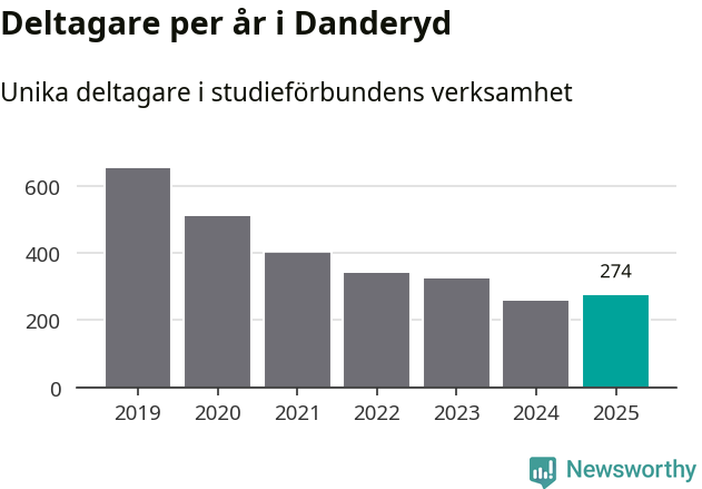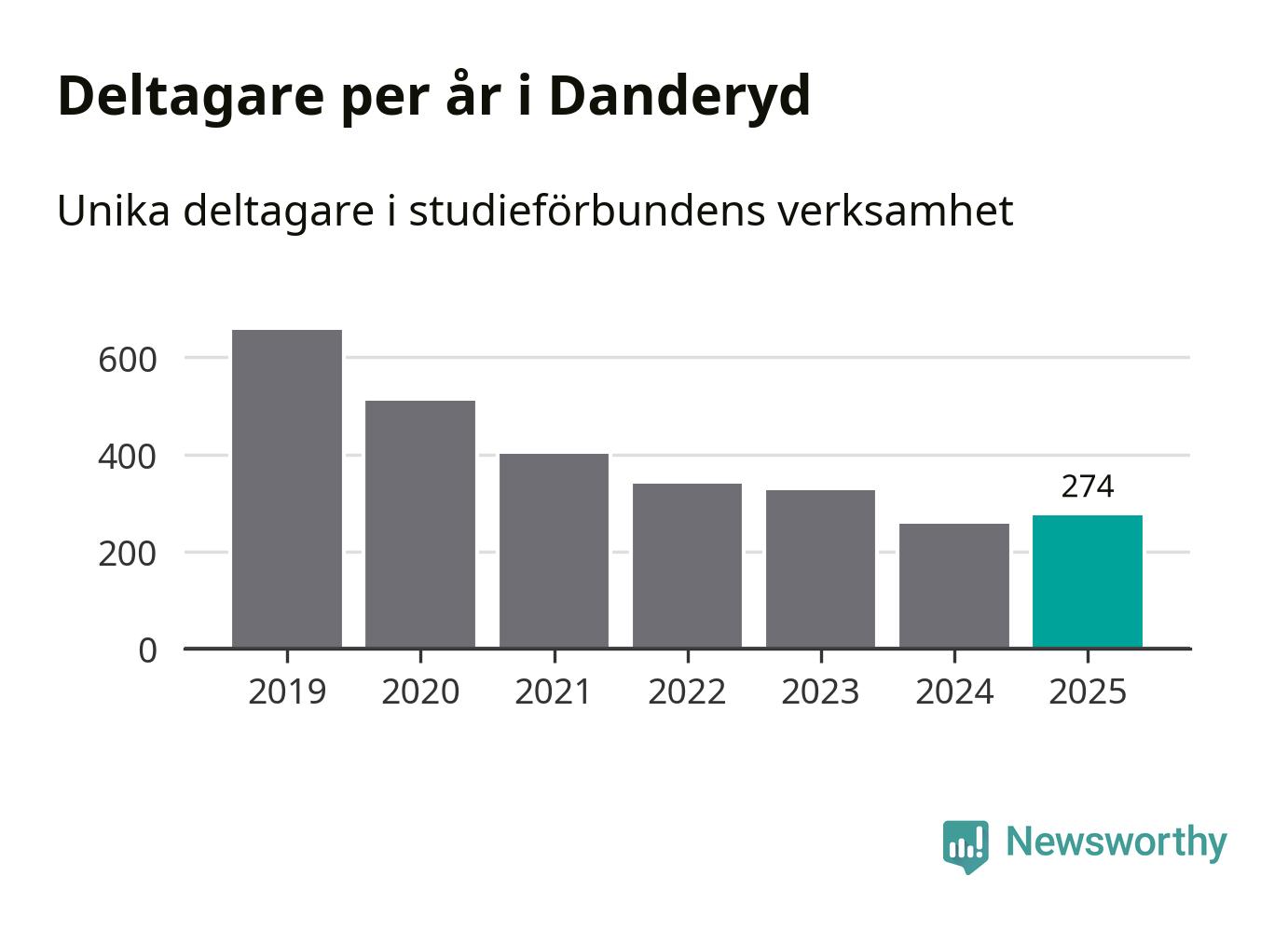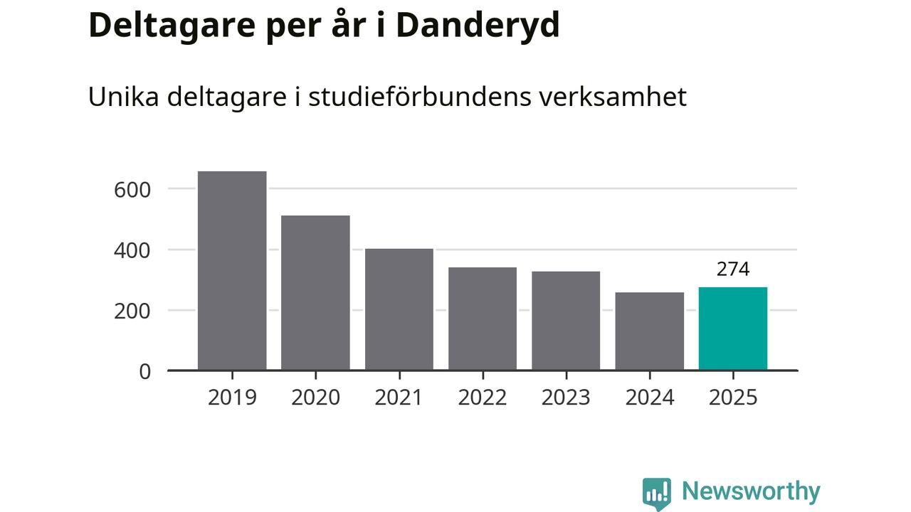 Antalet unika deltagare ökade i Danderyd i fjol: från 257 till 274 personer. Det innebär att en procent av befolkningen i kommunen deltog i studieförbundens verksamhet under 2025 och det är den näst lägsta andelen i landet.