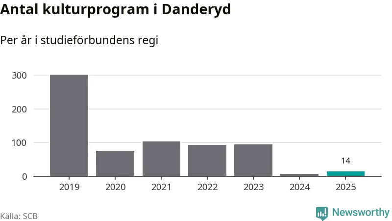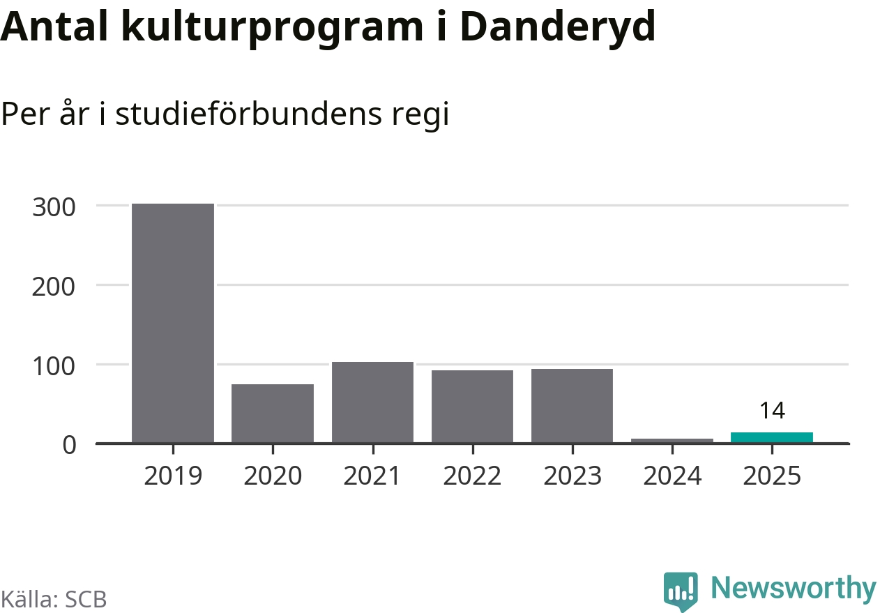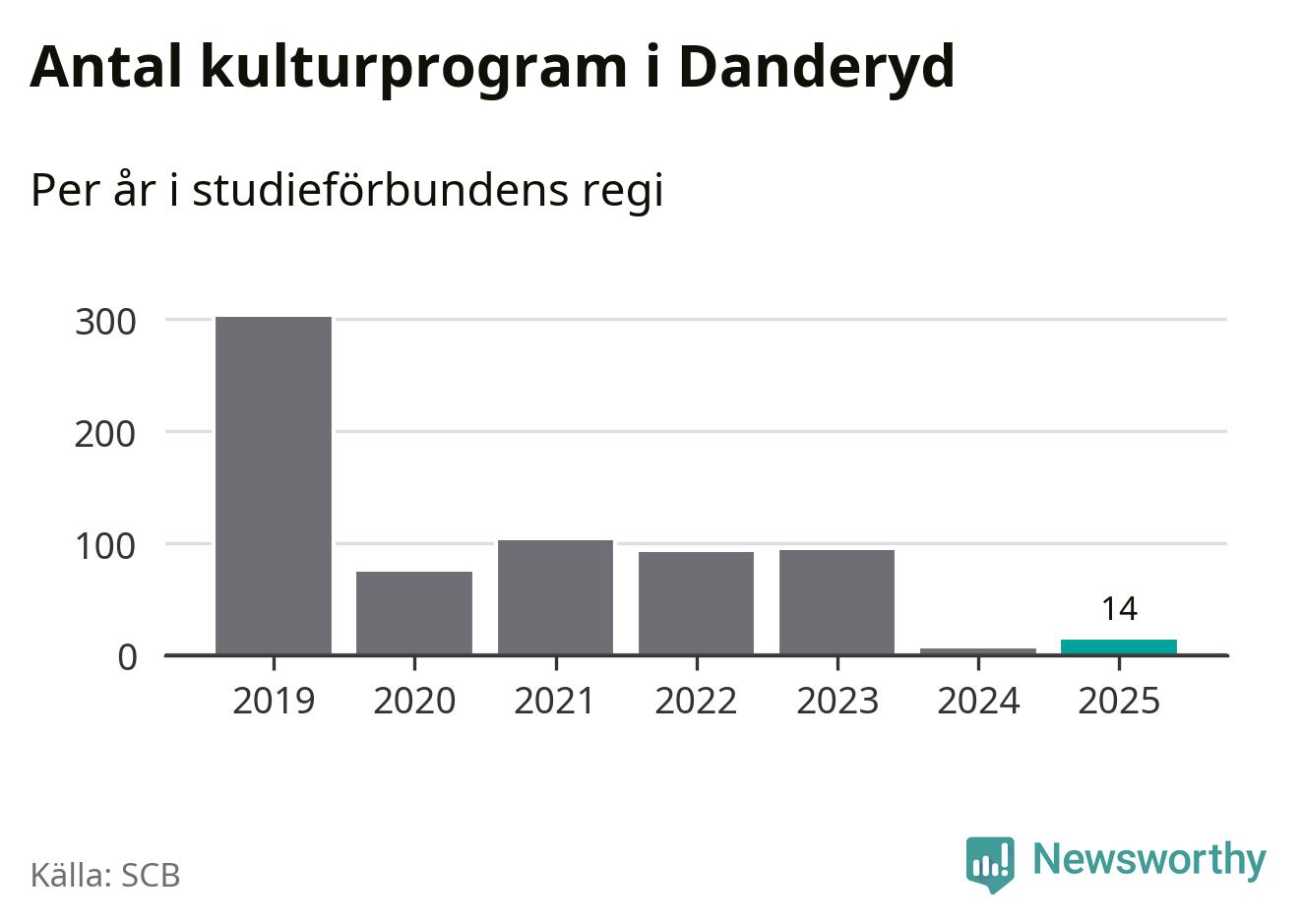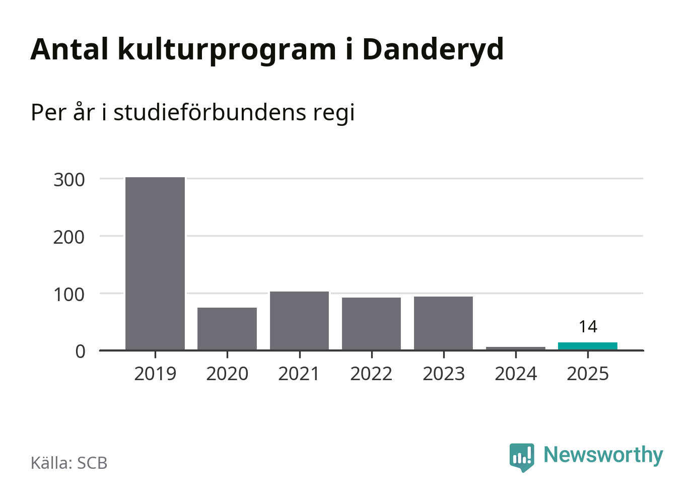I Danderyd är minskningen inte lika kraftig: förra året hade studieförbunden drygt 1 100 studietimmar i kommunen, vilket är fyra procent färre än året innan. Men medan studiecirklar och annan folkbildningsverksamhet minskade ökade faktiskt antalet kulturarrangemang i studieförbundens regi från 6 till 14.
