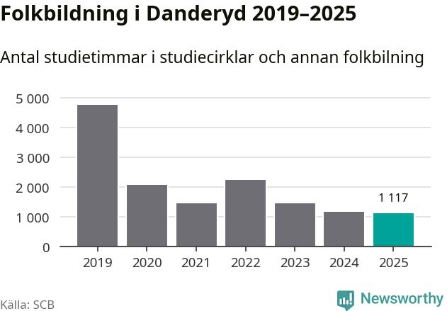 Studieförbunden drabbades hårt av pandemin. Även i Danderyd noterades det lägsta antalet studietimmar under 2021, som då var 70 procent färre än 2019 – vilket fortfarande är fler än 2025.