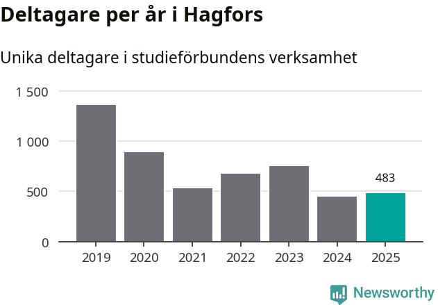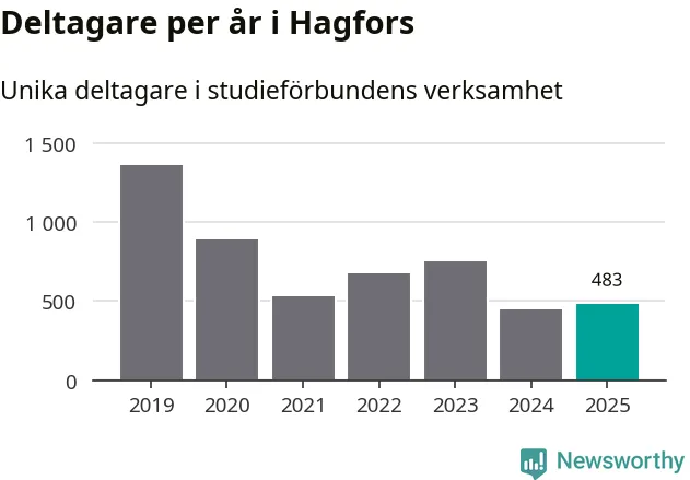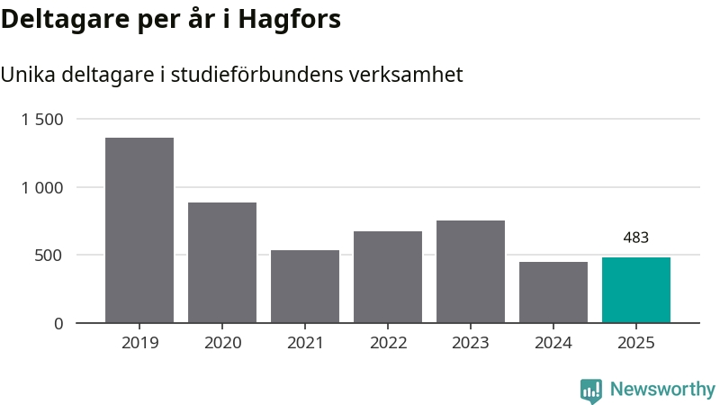 Antalet unika deltagare ökade i Hagfors i fjol: från 447 till 483 personer. Det innebär att fyra procent av befolkningen i kommunen deltog i studieförbundens verksamhet under 2025, vilket är ungefär som rikssnittet.