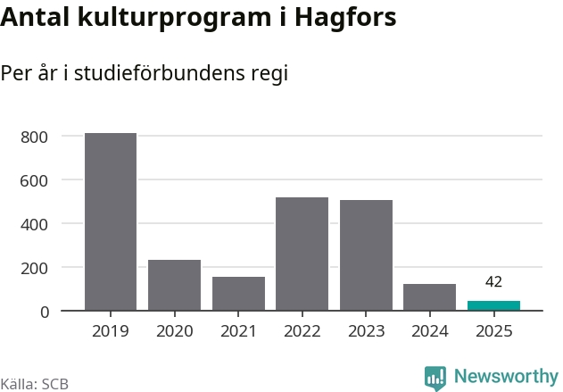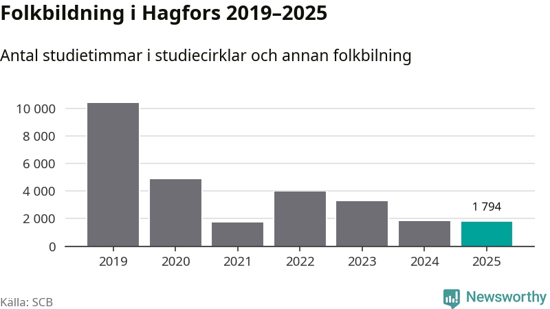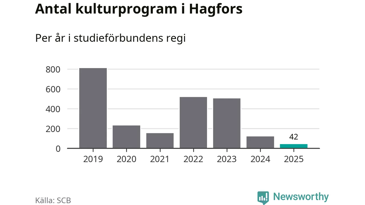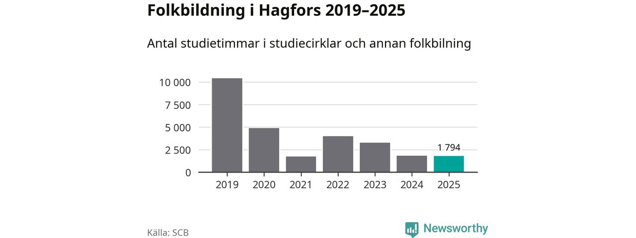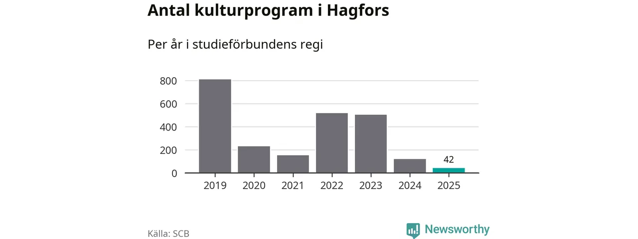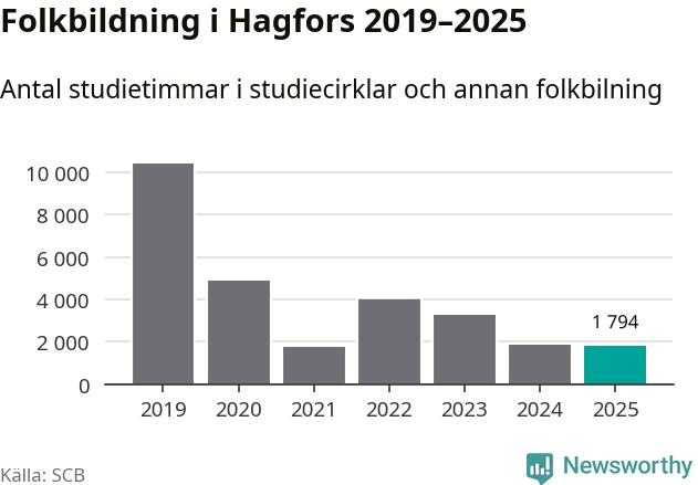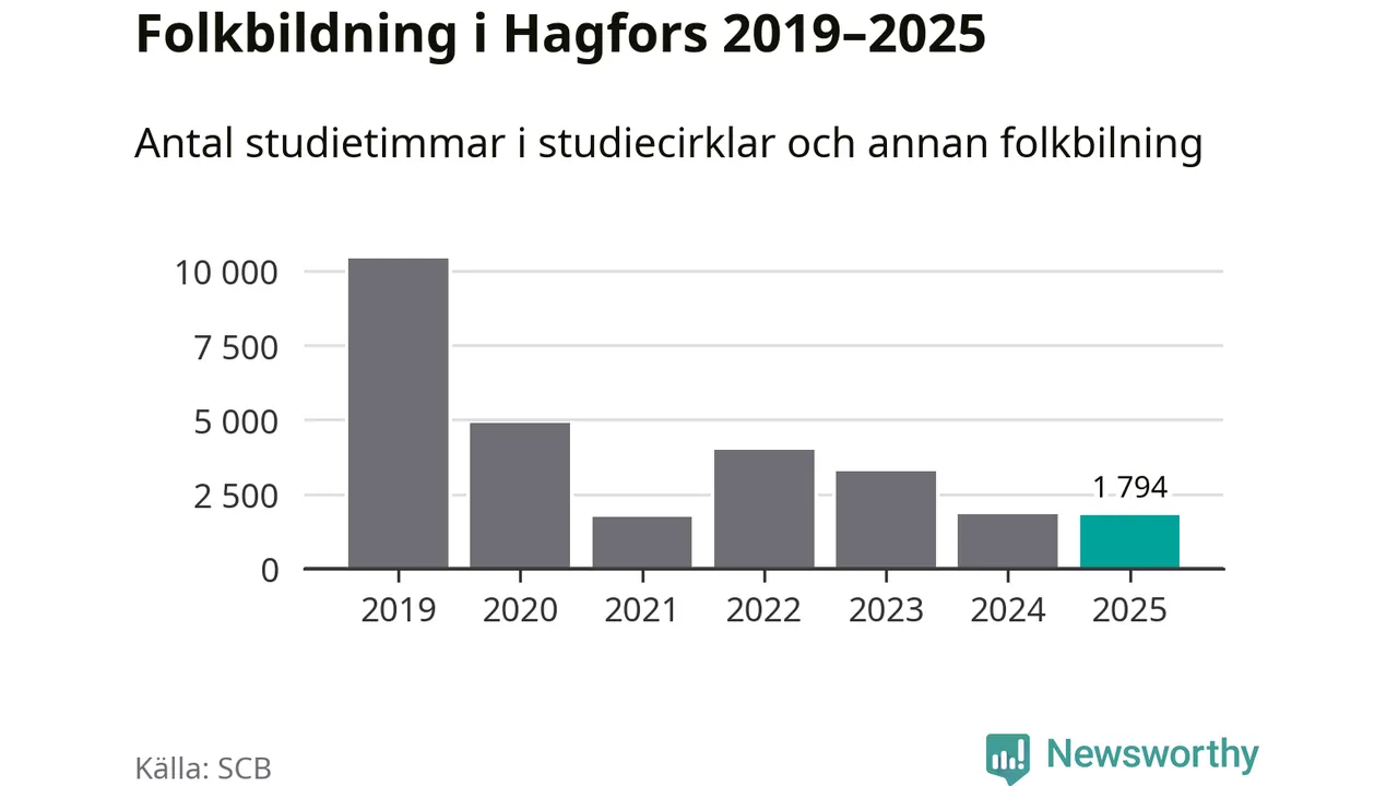 Studieförbunden drabbades hårt av pandemin. Även i Hagfors noterades det lägsta antalet studietimmar under 2021, som då var 83 procent färre än 2019 – vilket är ungefär samma nivå som 2025.
