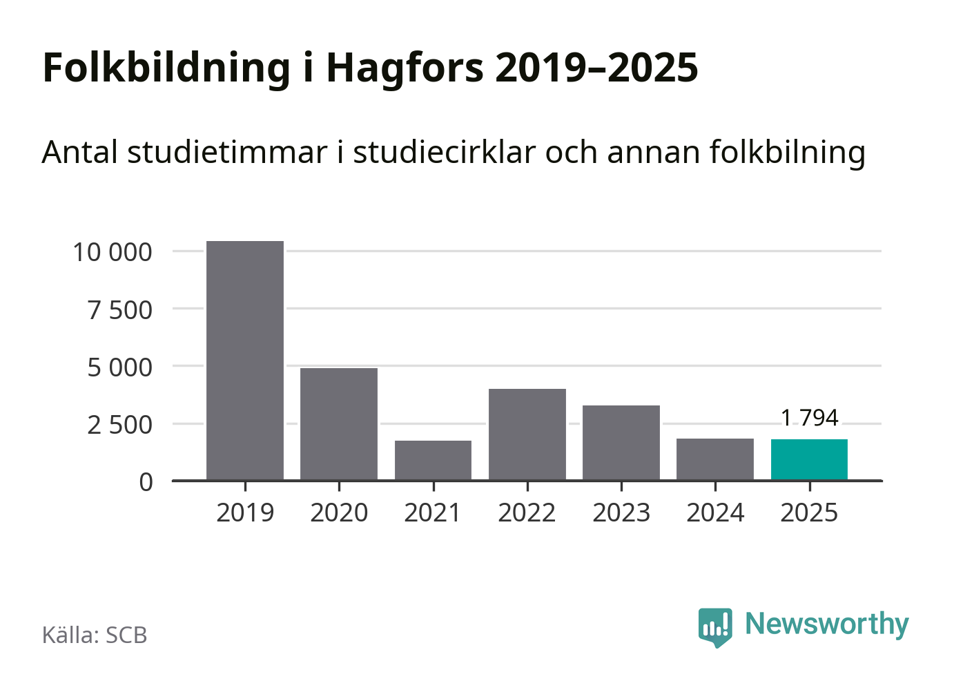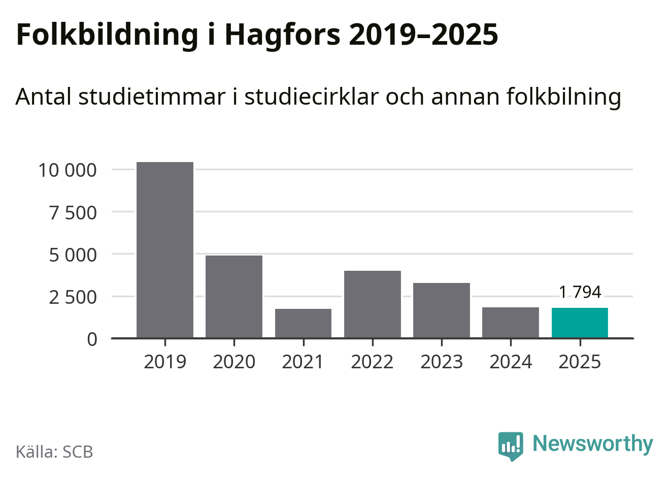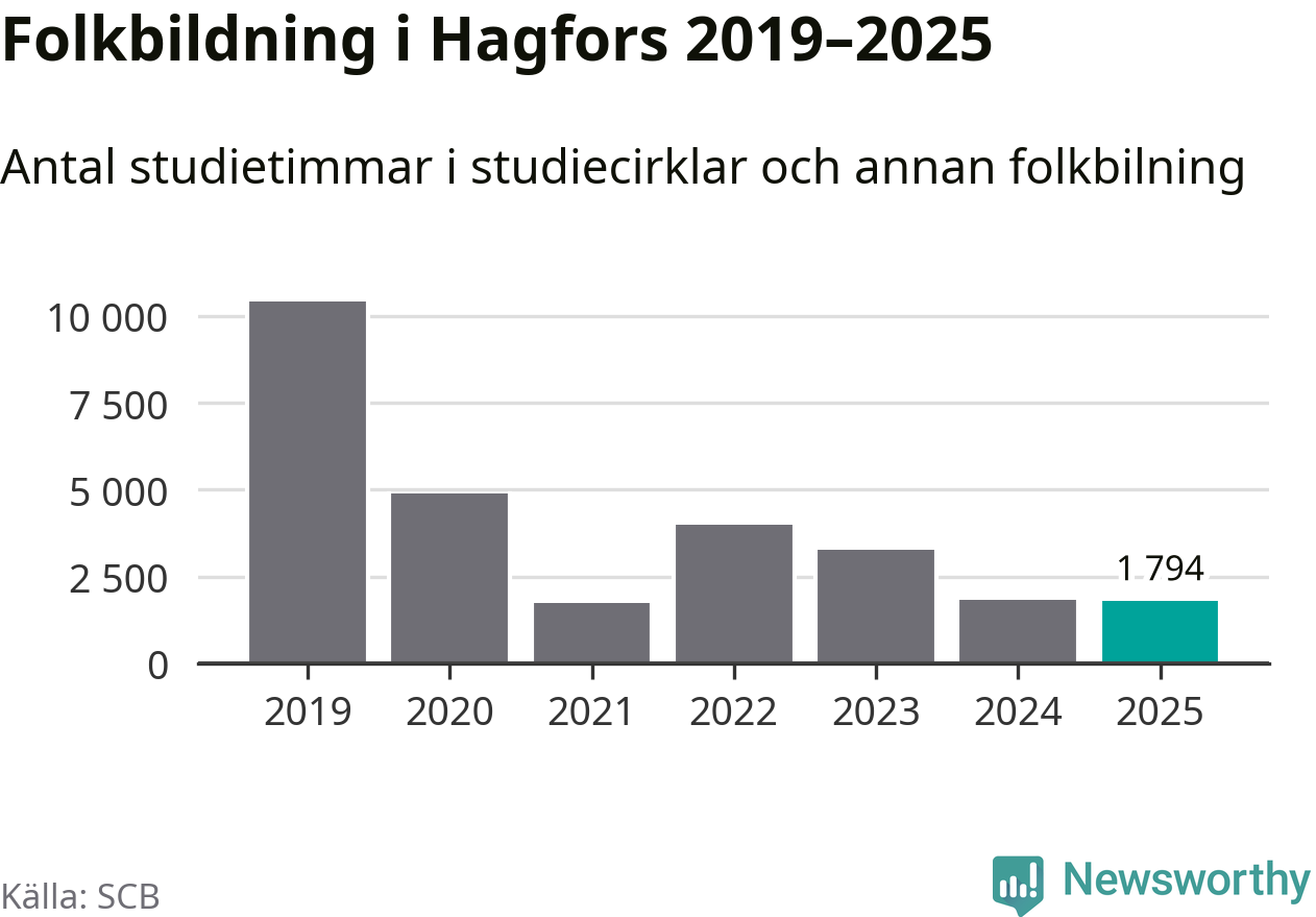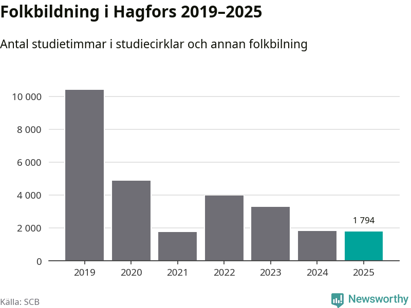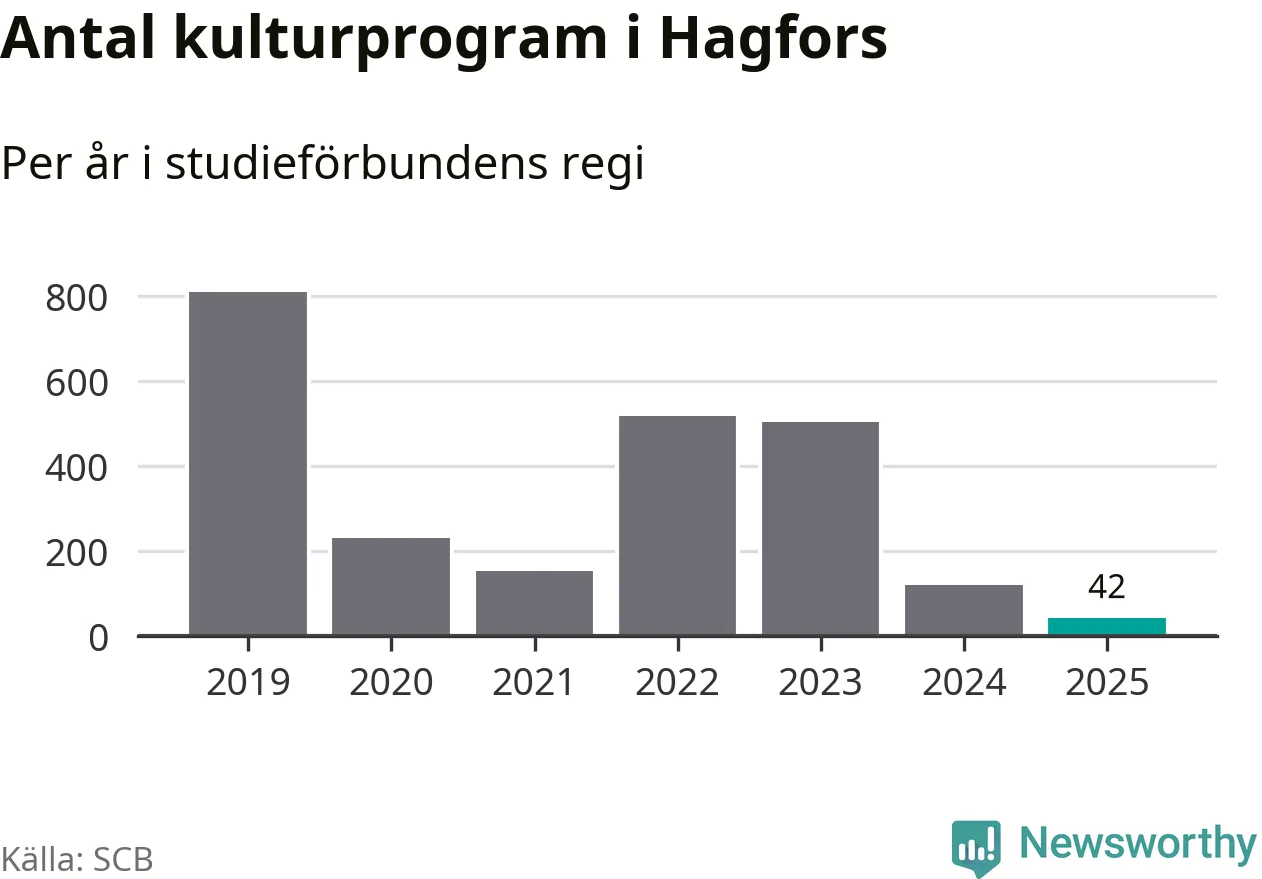 Studieförbunden drabbades hårt av pandemin. Även i Hagfors noterades det lägsta antalet studietimmar under 2021, som då var 83 procent färre än 2019 – vilket är ungefär samma nivå som 2025.