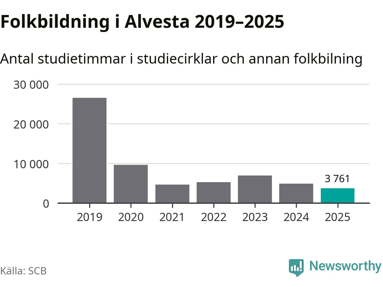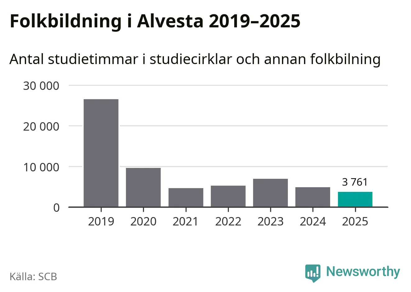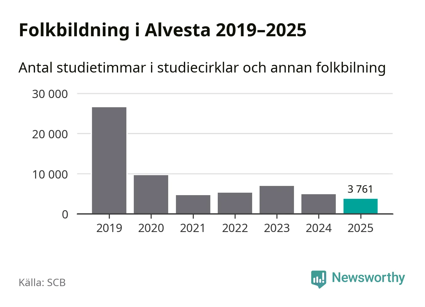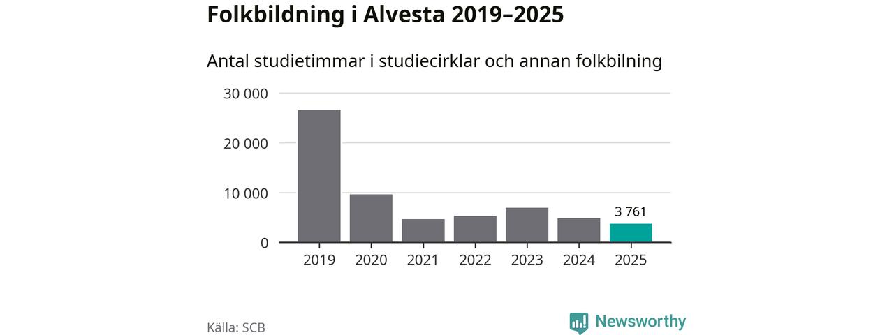 Studieförbunden drabbades hårt av pandemin. Även i Alvesta noterades det lägsta antalet studietimmar under 2021, som då var 82 procent färre än 2019 – vilket fortfarande är fler än 2025.
