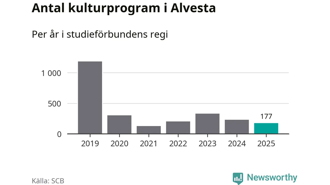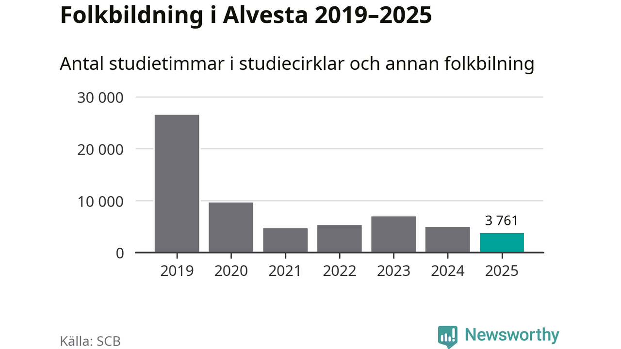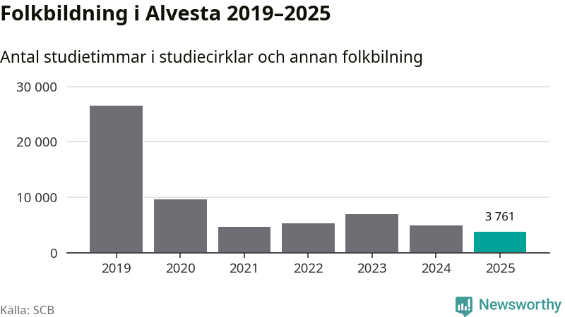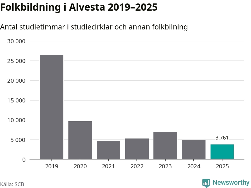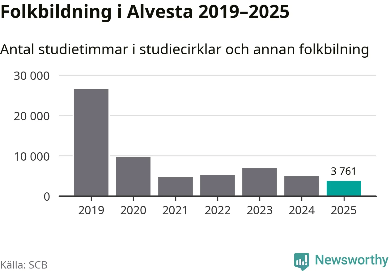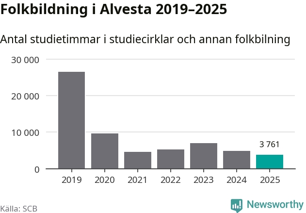 Studieförbunden drabbades hårt av pandemin. Även i Alvesta noterades det lägsta antalet studietimmar under 2021, som då var 82 procent färre än 2019 – vilket fortfarande är fler än 2025.