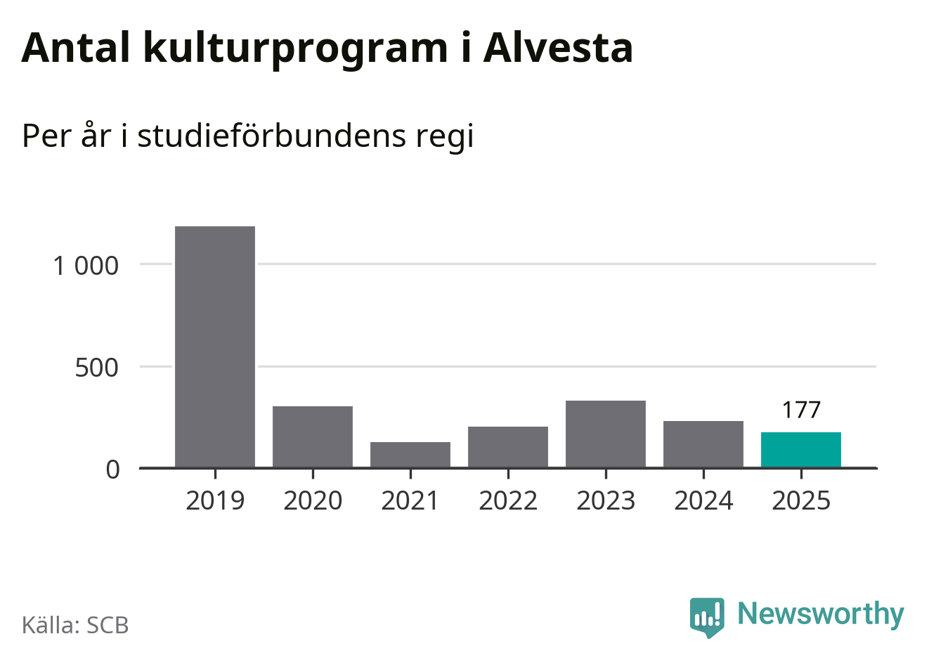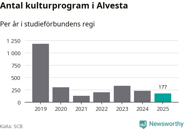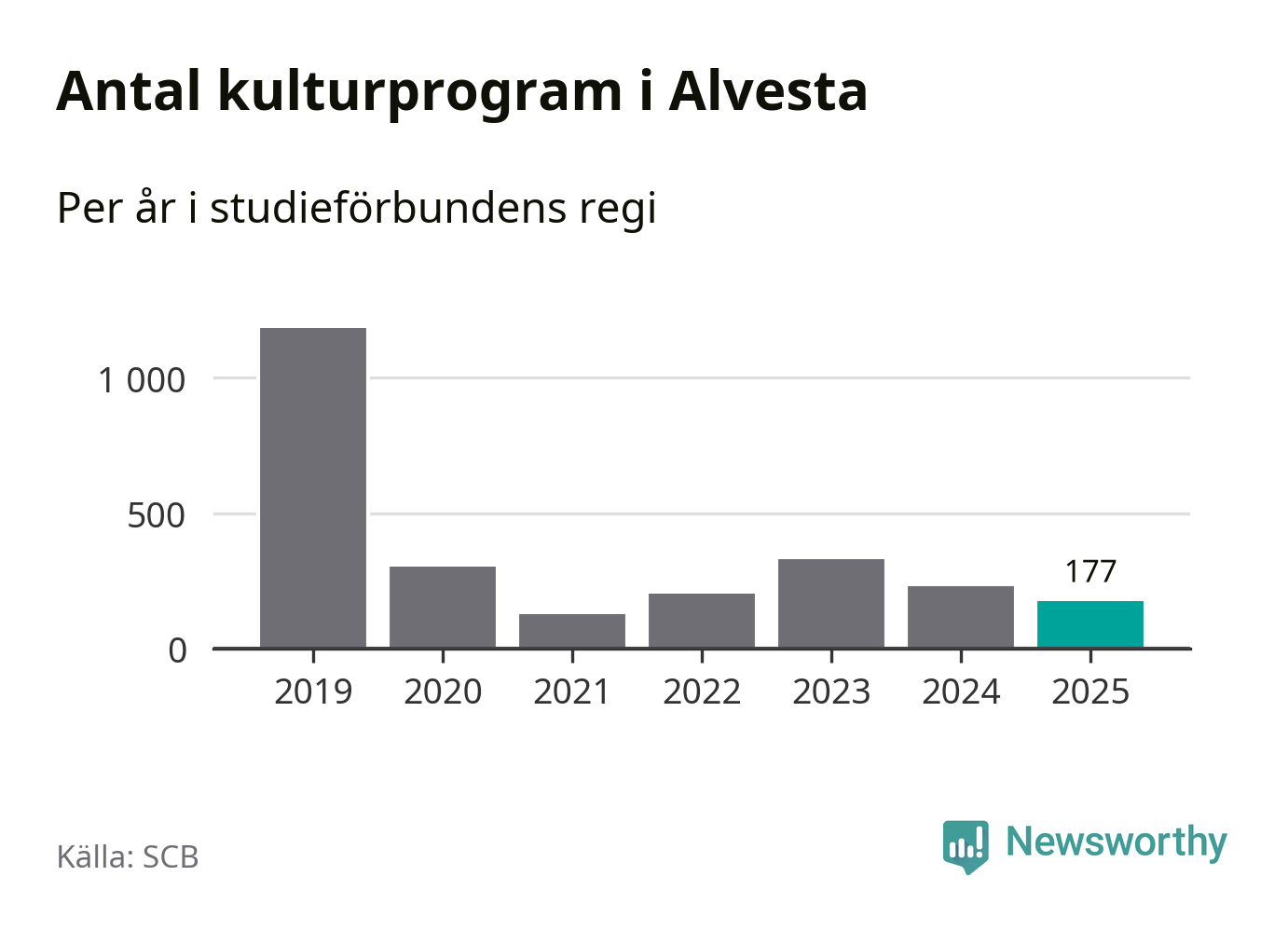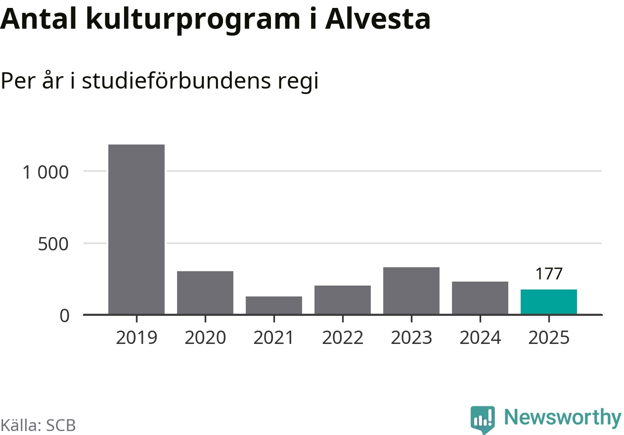 I Alvesta är minskningen ännu större: förra året hade studieförbunden omkring 3 800 studietimmar i kommunen, vilket är en minskning med 23 procent jämfört med året innan. Även antalet kulturprogram i studieförbundens regi minskade, från 229 till 177 stycken.