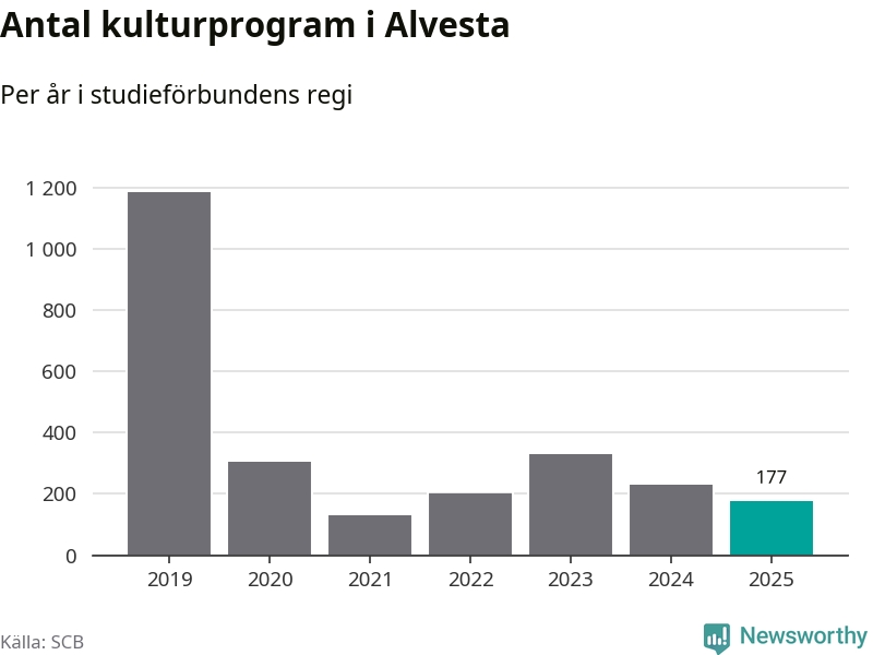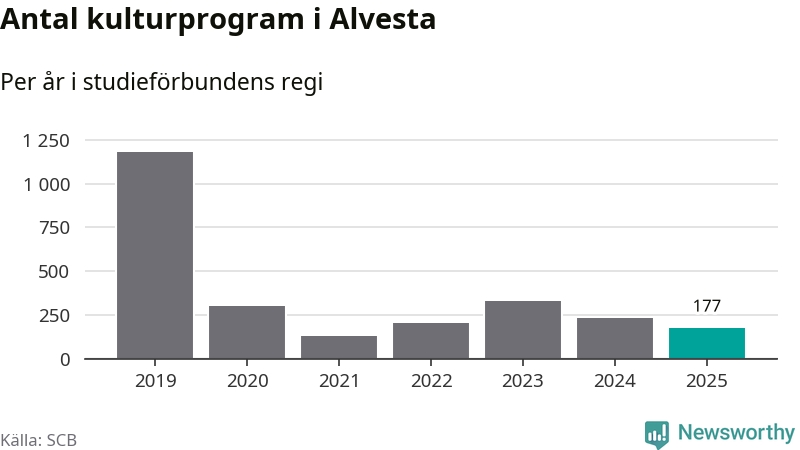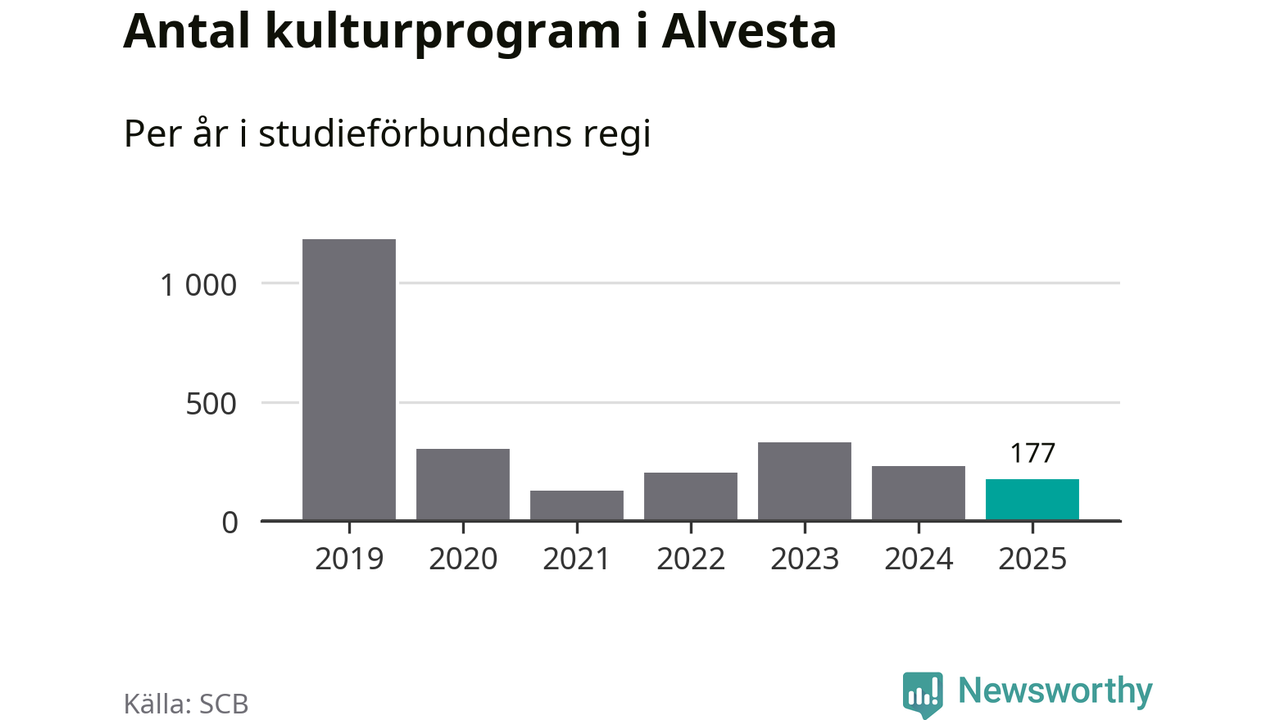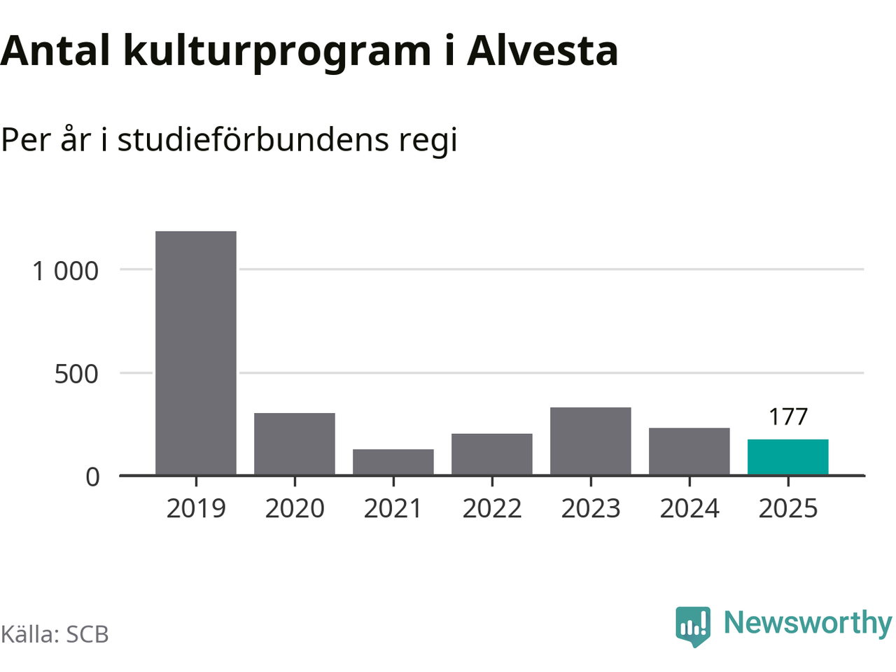 I Alvesta är minskningen ännu större: förra året hade studieförbunden omkring 3 800 studietimmar i kommunen, vilket är en minskning med 23 procent jämfört med året innan. Även antalet kulturprogram i studieförbundens regi minskade, från 229 till 177 stycken.