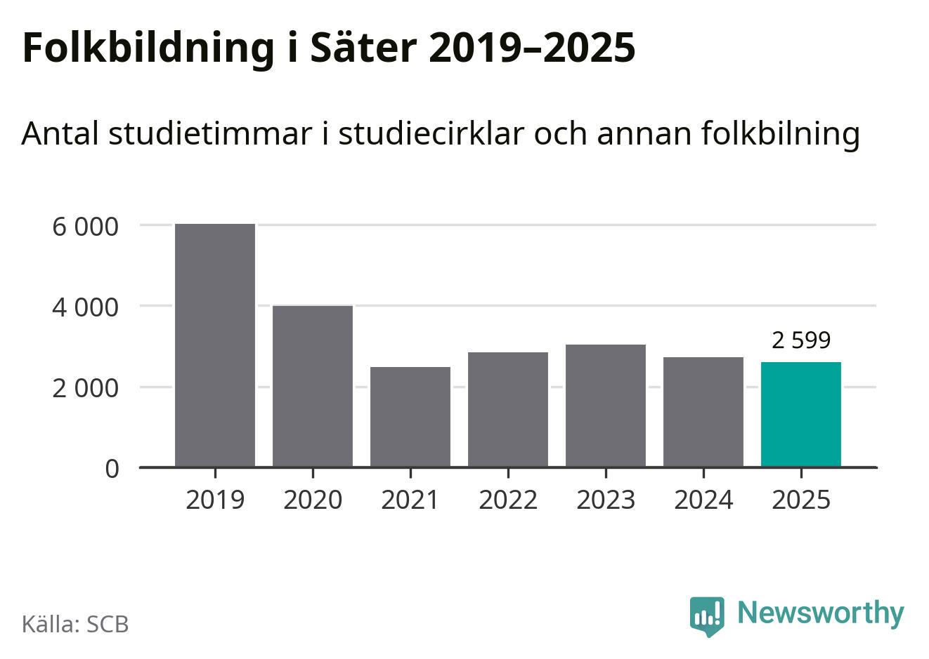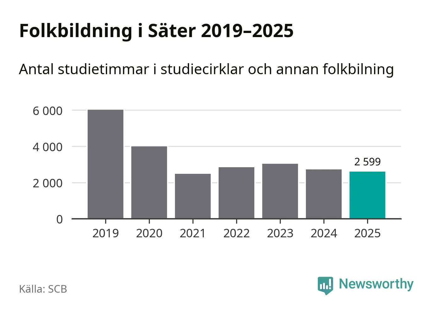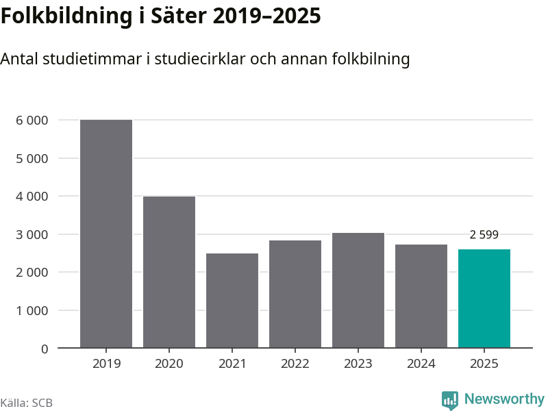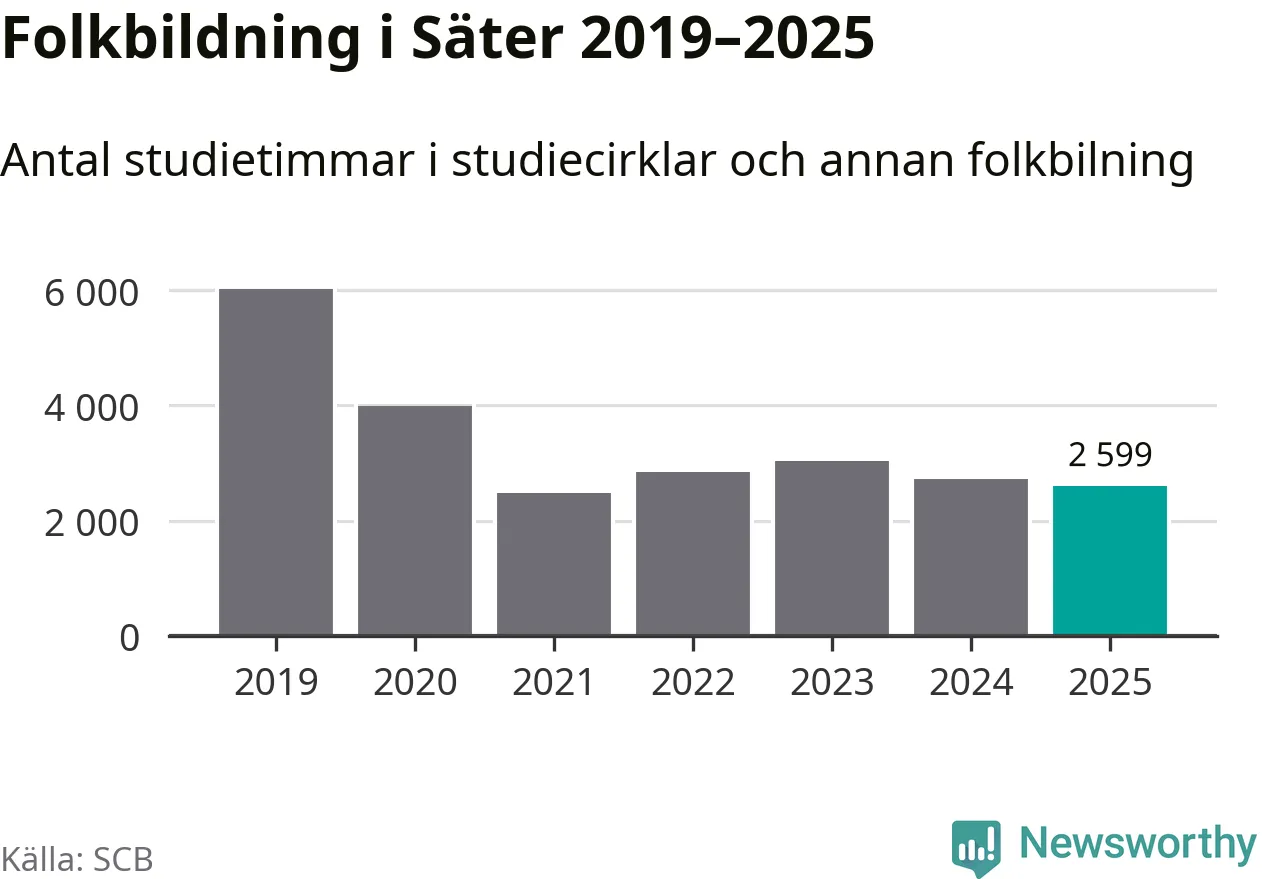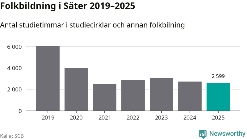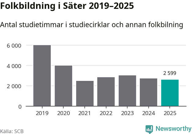 Studieförbunden drabbades hårt av pandemin. Även i Säter noterades det lägsta antalet studietimmar under 2021, som då var 59 procent färre än 2019. År 2024 var antalet studietimmar åter högre men de var fortfarande långt från förpandeminivåerna.