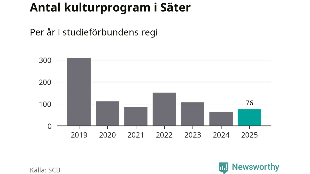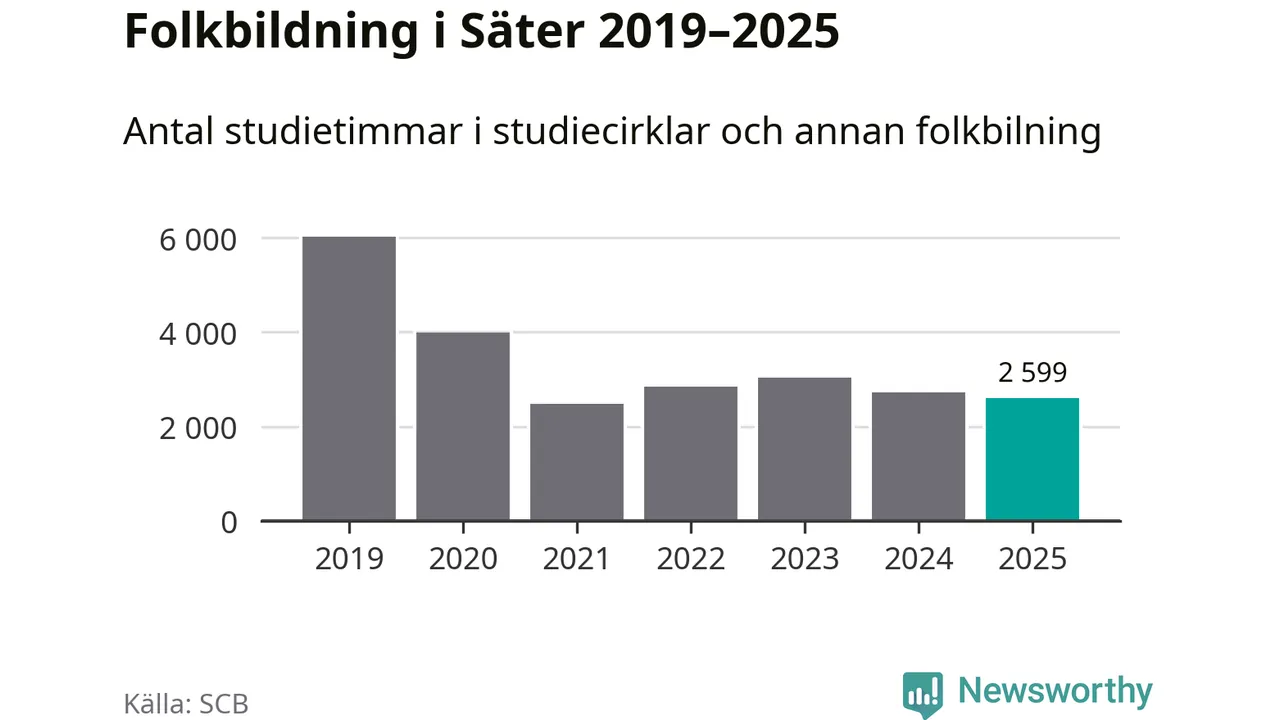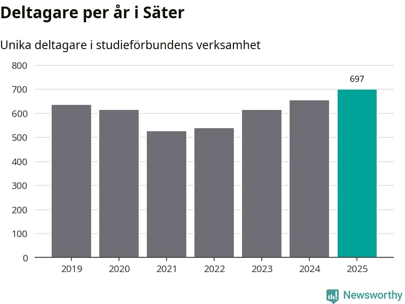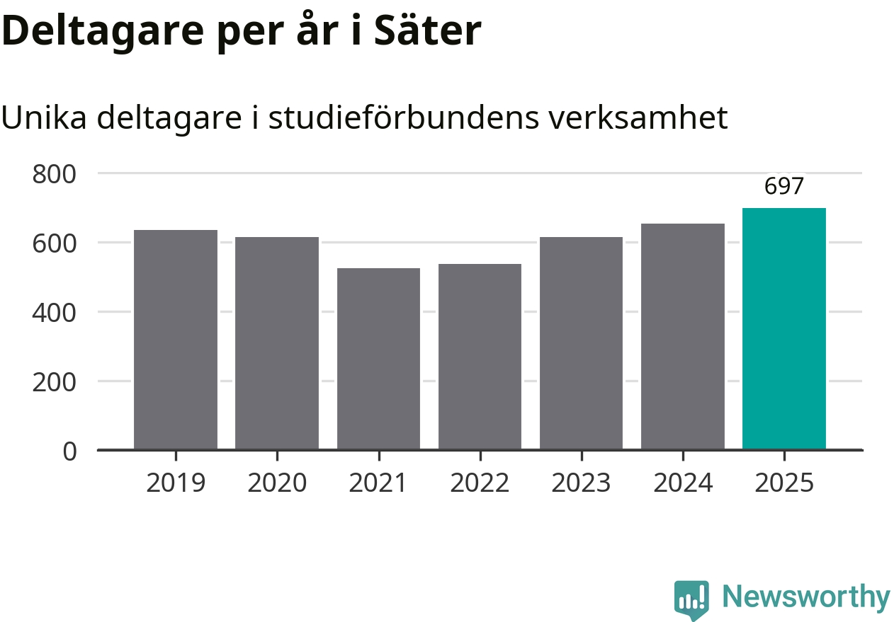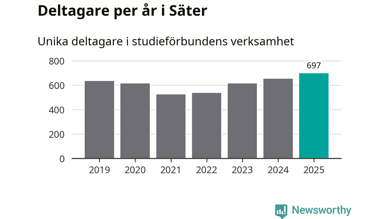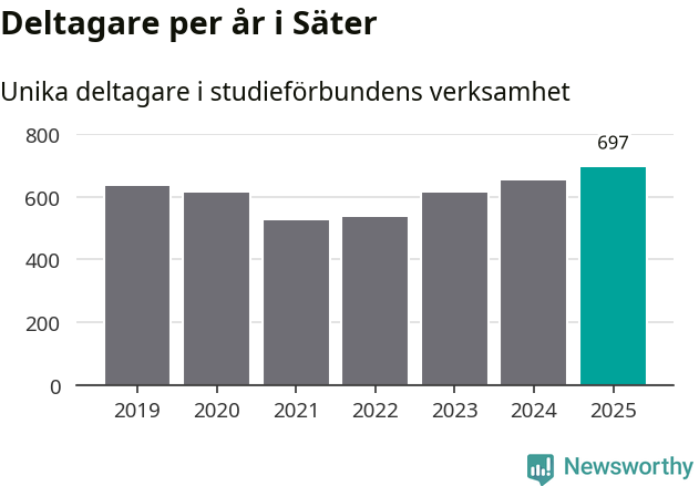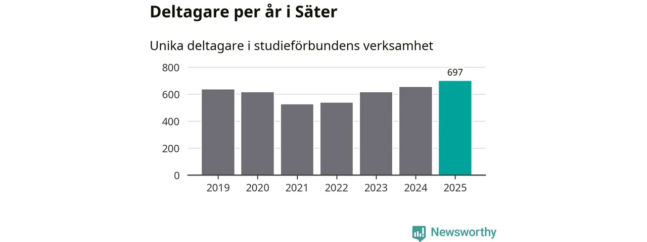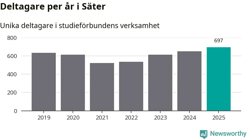 Antalet unika deltagare ökade i Säter i fjol: från 653 till 697 personer. Det innebär att sex procent av befolkningen i kommunen deltog i studieförbundens verksamhet under 2025, vilket är ungefär som rikssnittet.