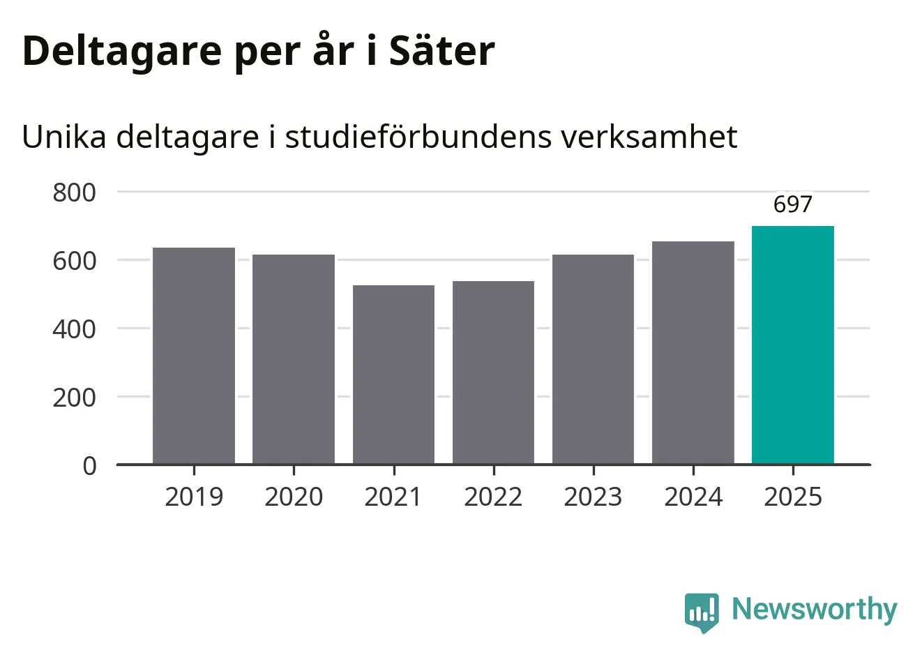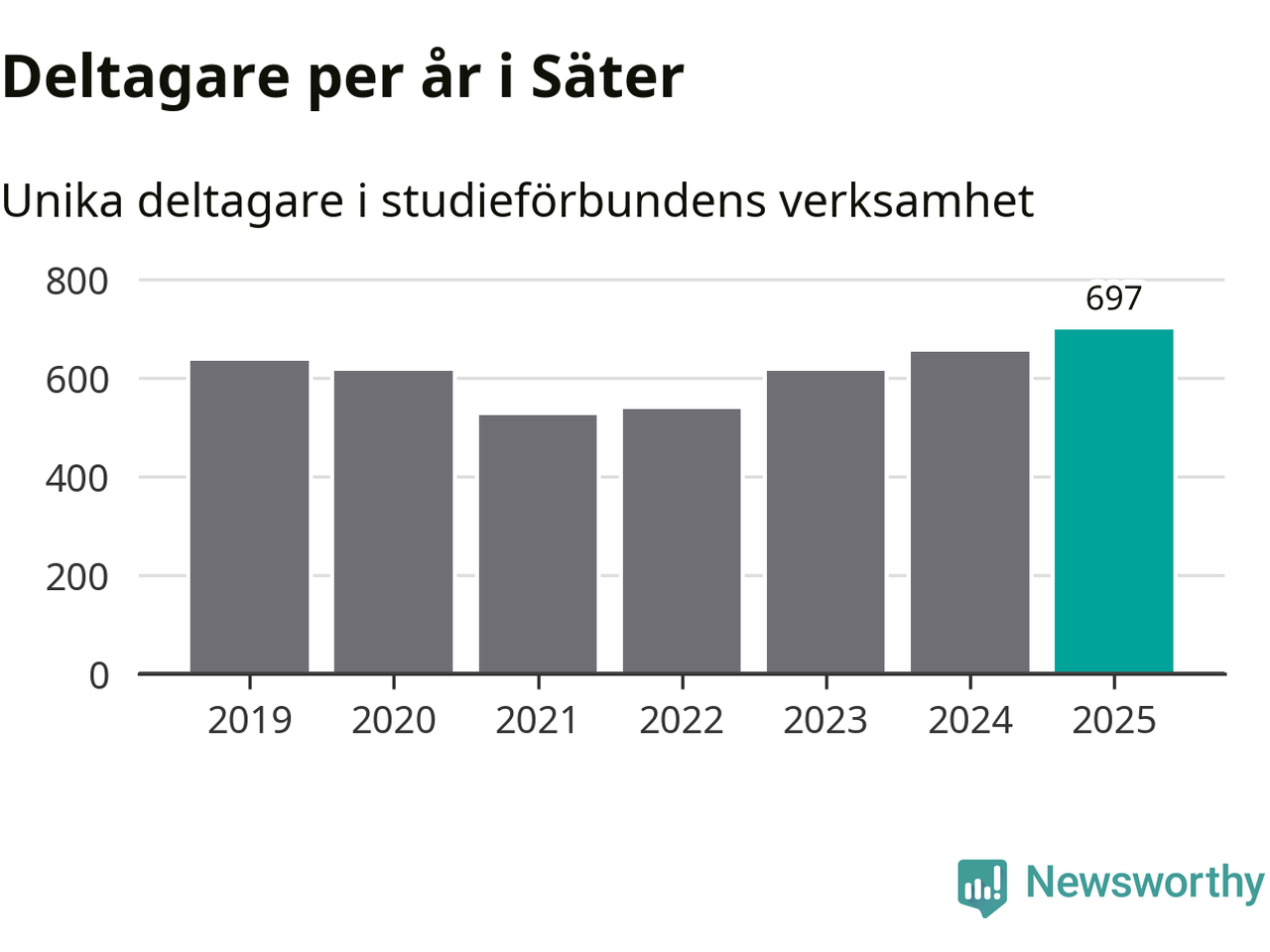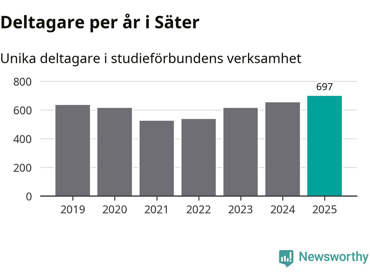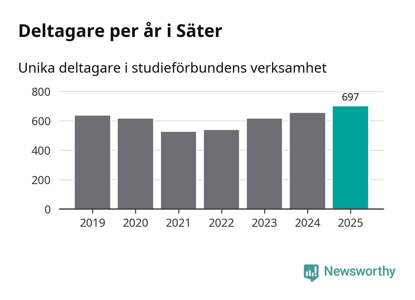 Antalet unika deltagare ökade i Säter i fjol: från 653 till 697 personer. Det innebär att sex procent av befolkningen i kommunen deltog i studieförbundens verksamhet under 2025, vilket är ungefär som rikssnittet.