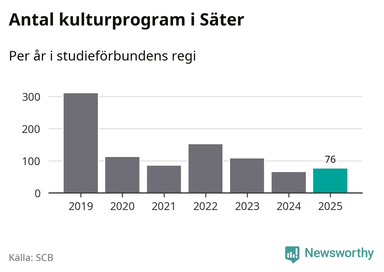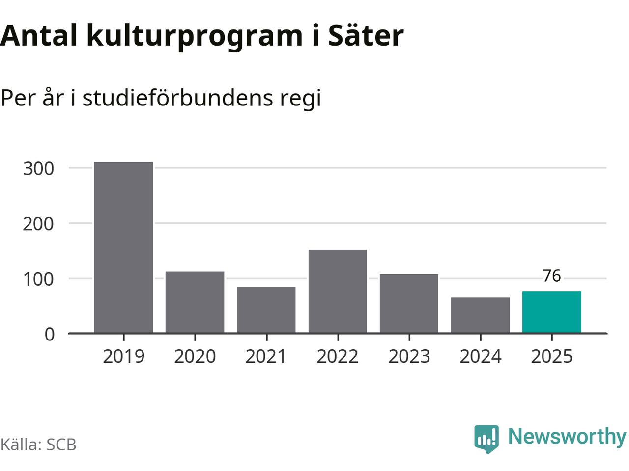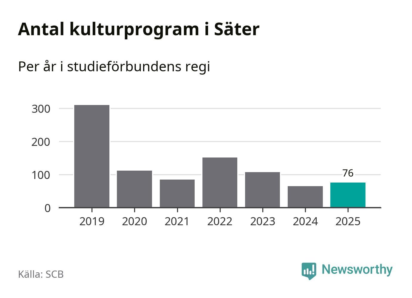 Utvecklingen ser ungefär likadan ut i Säter, förra året hade studieförbunden omkring 2 600 studietimmar i kommunen jämfört med omkring 2 700 året innan, en minskning med fem procent. Men medan studiecirklar och annan folkbildningsverksamhet minskade ökade faktiskt antalet kulturarrangemang i studieförbundens regi från 65 till 76.