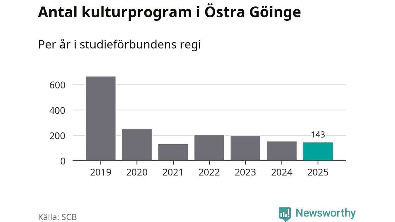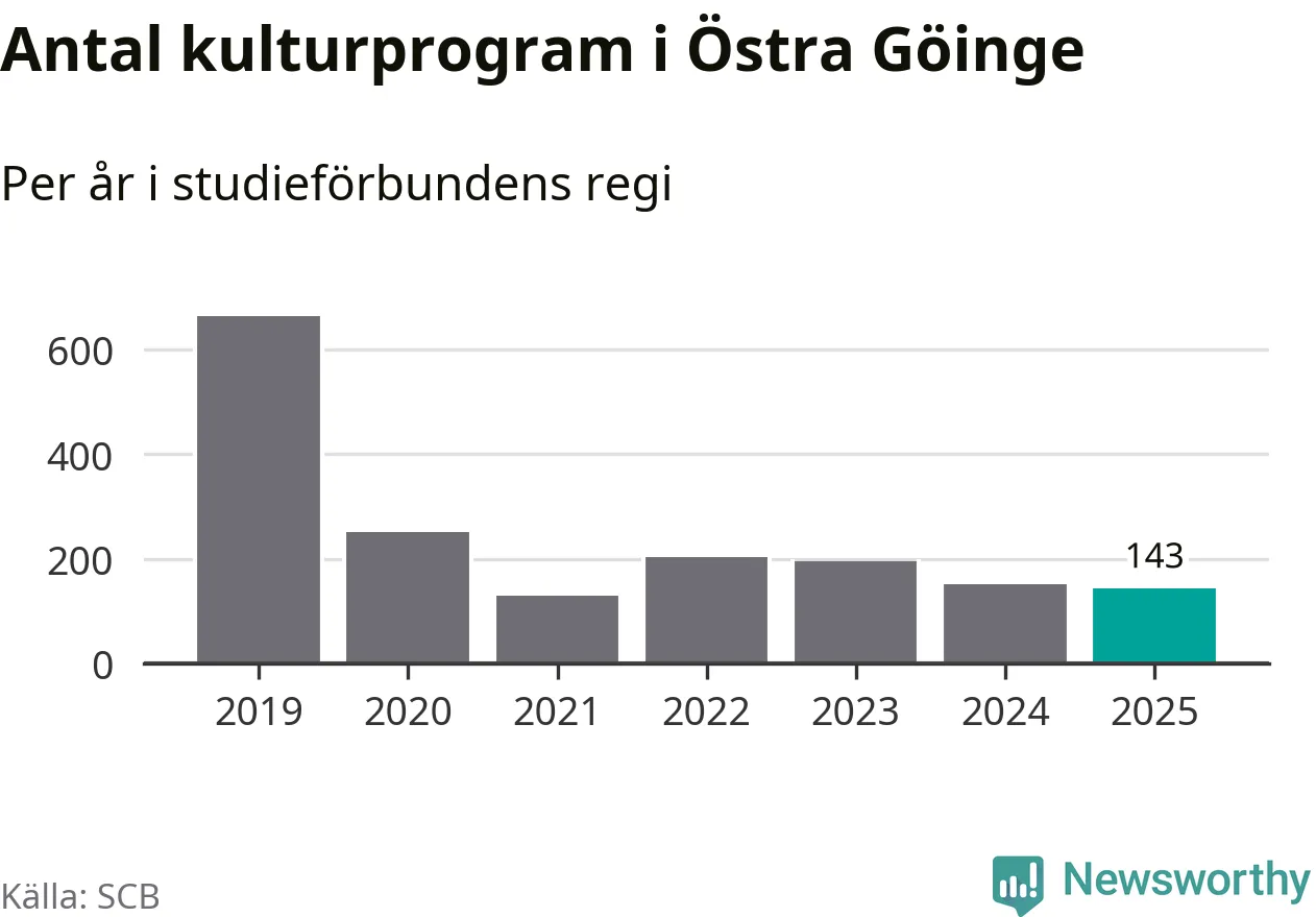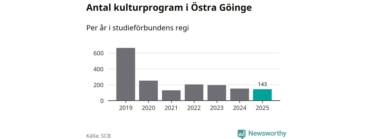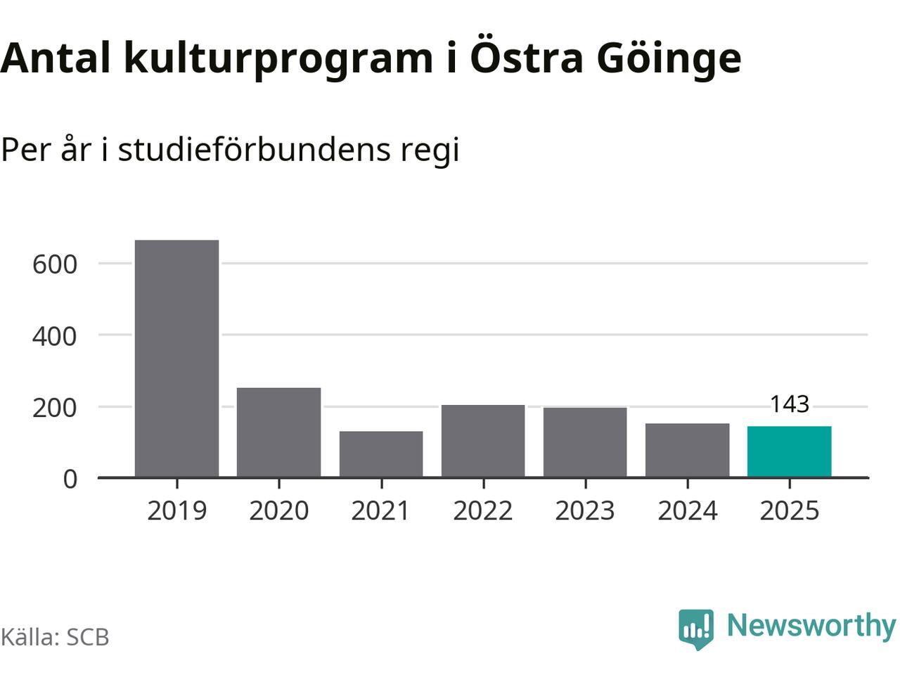 I Östra Göinge är minskningen ännu större: förra året hade studieförbunden omkring 3 800 studietimmar i kommunen, vilket är en halvering jämfört med året innan. Även antalet kulturprogram i studieförbundens regi minskade, från 151 till 143 stycken.