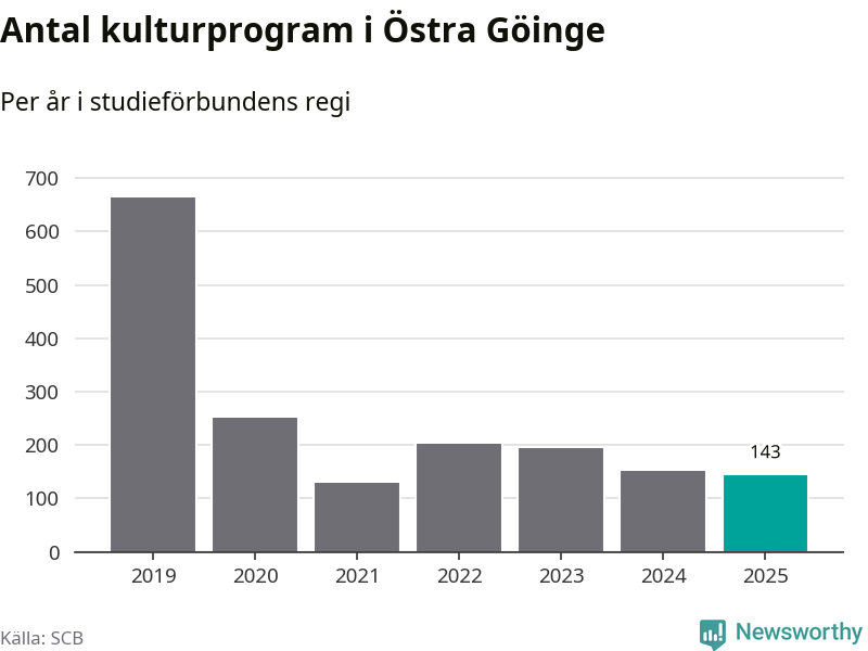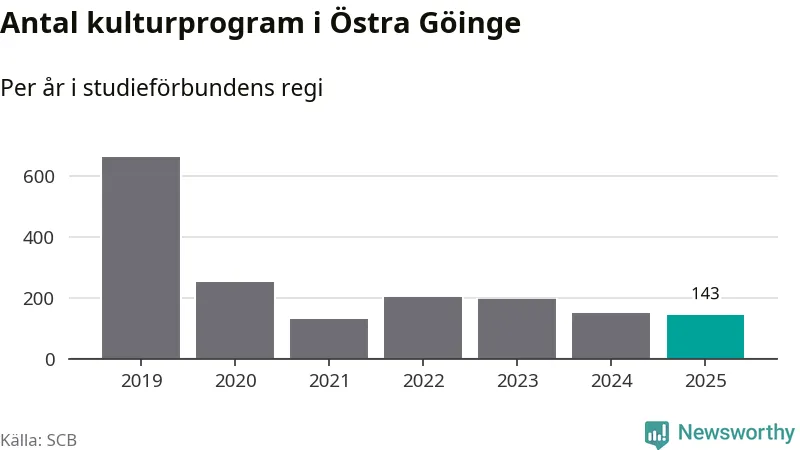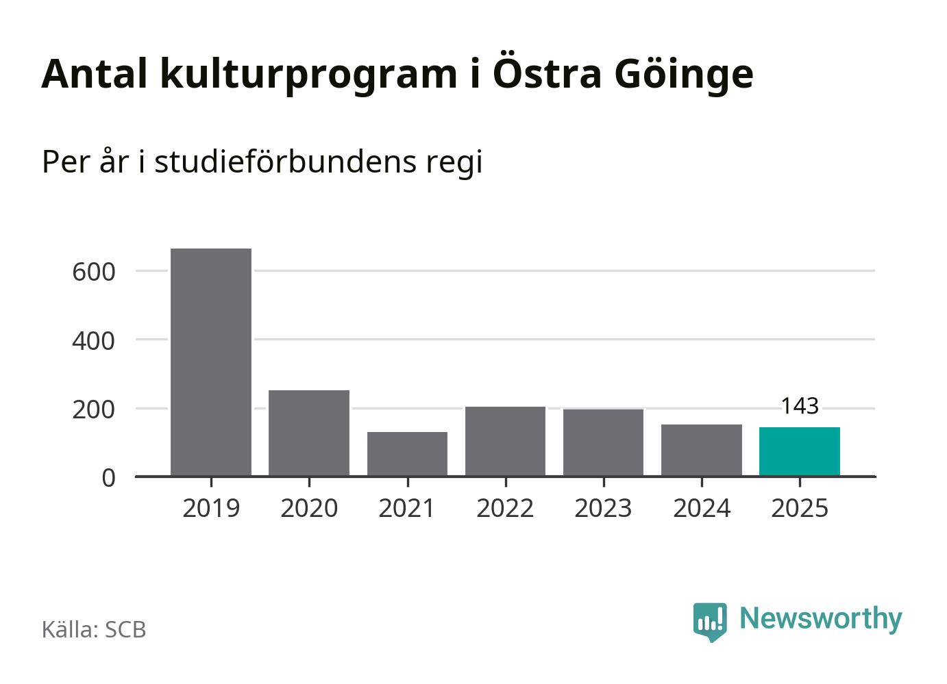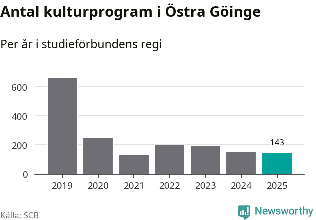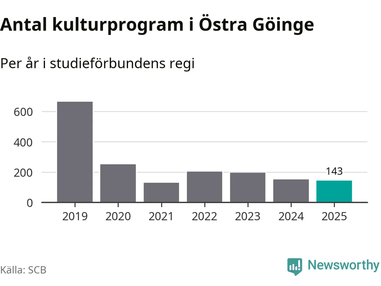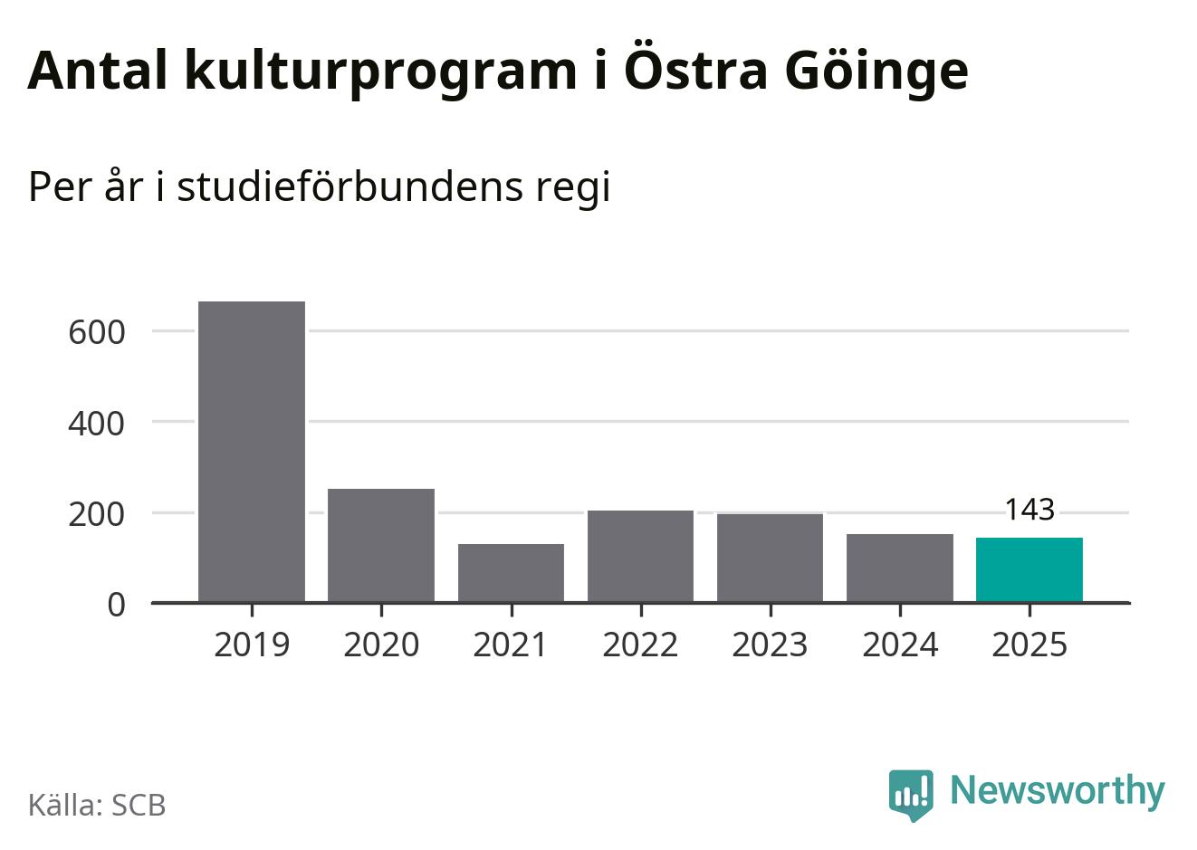 I Östra Göinge är minskningen ännu större: förra året hade studieförbunden omkring 3 800 studietimmar i kommunen, vilket är en halvering jämfört med året innan. Även antalet kulturprogram i studieförbundens regi minskade, från 151 till 143 stycken.