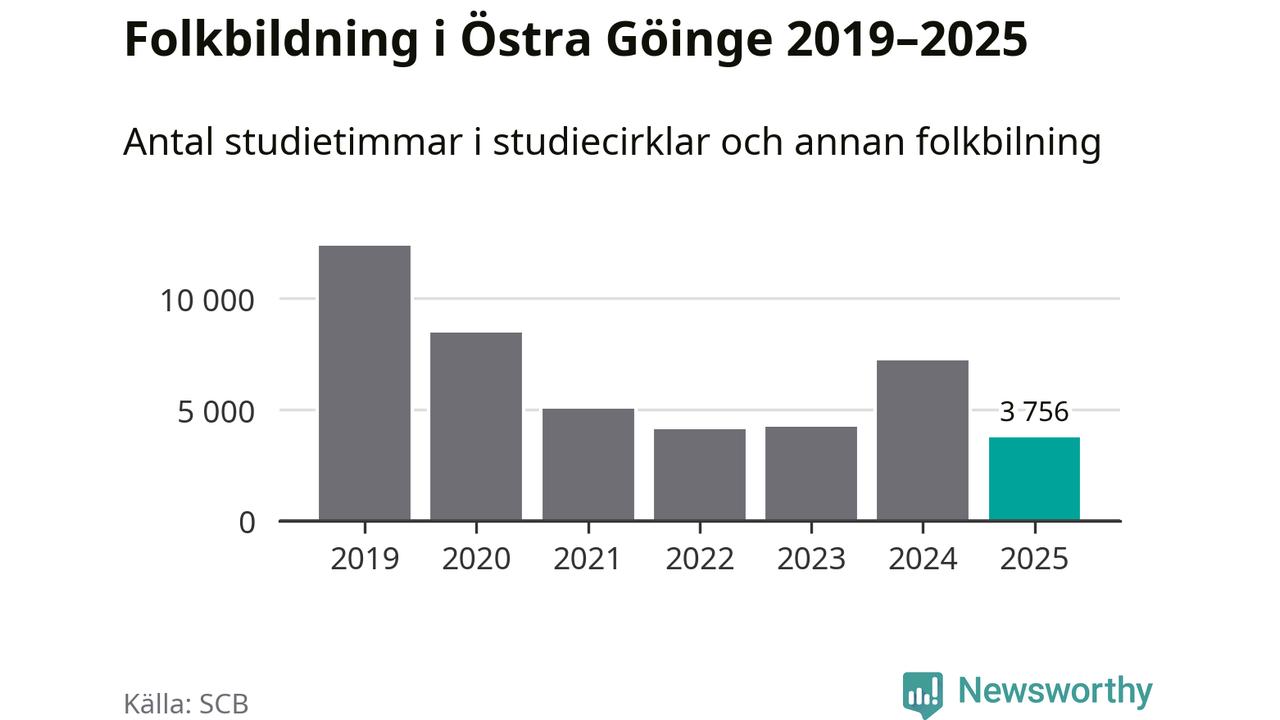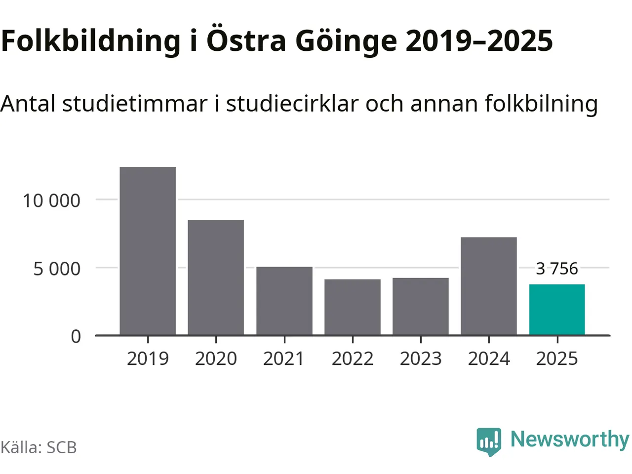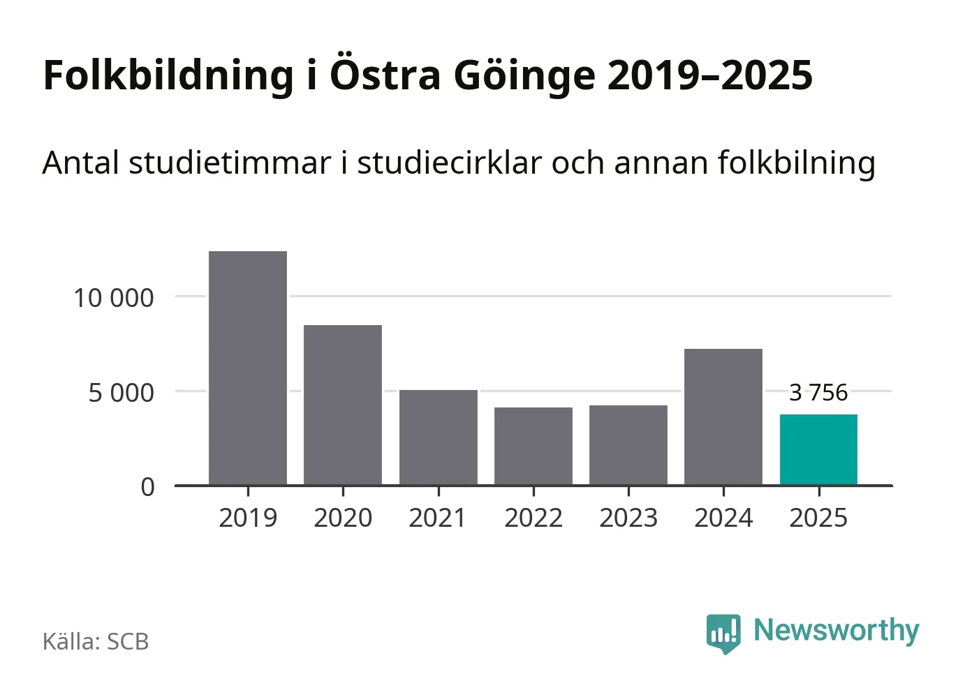 Studieförbunden drabbades hårt av pandemin. Även i Östra Göinge noterades det lägsta antalet studietimmar under 2021, som då var 59 procent färre än 2019 – vilket fortfarande är fler än 2025.