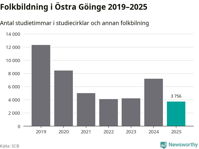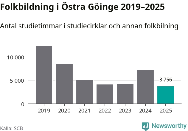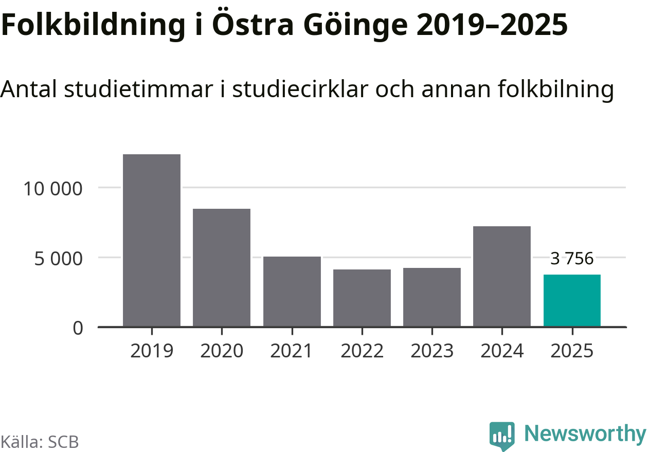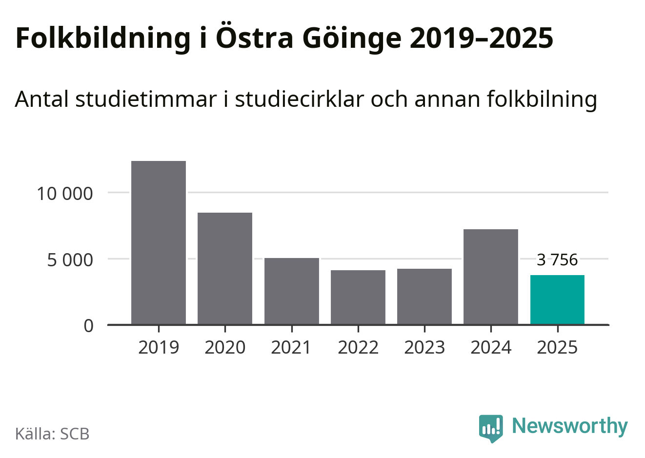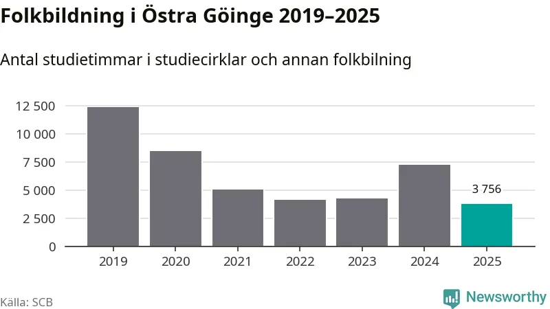 Studieförbunden drabbades hårt av pandemin. Även i Östra Göinge noterades det lägsta antalet studietimmar under 2021, som då var 59 procent färre än 2019 – vilket fortfarande är fler än 2025.
