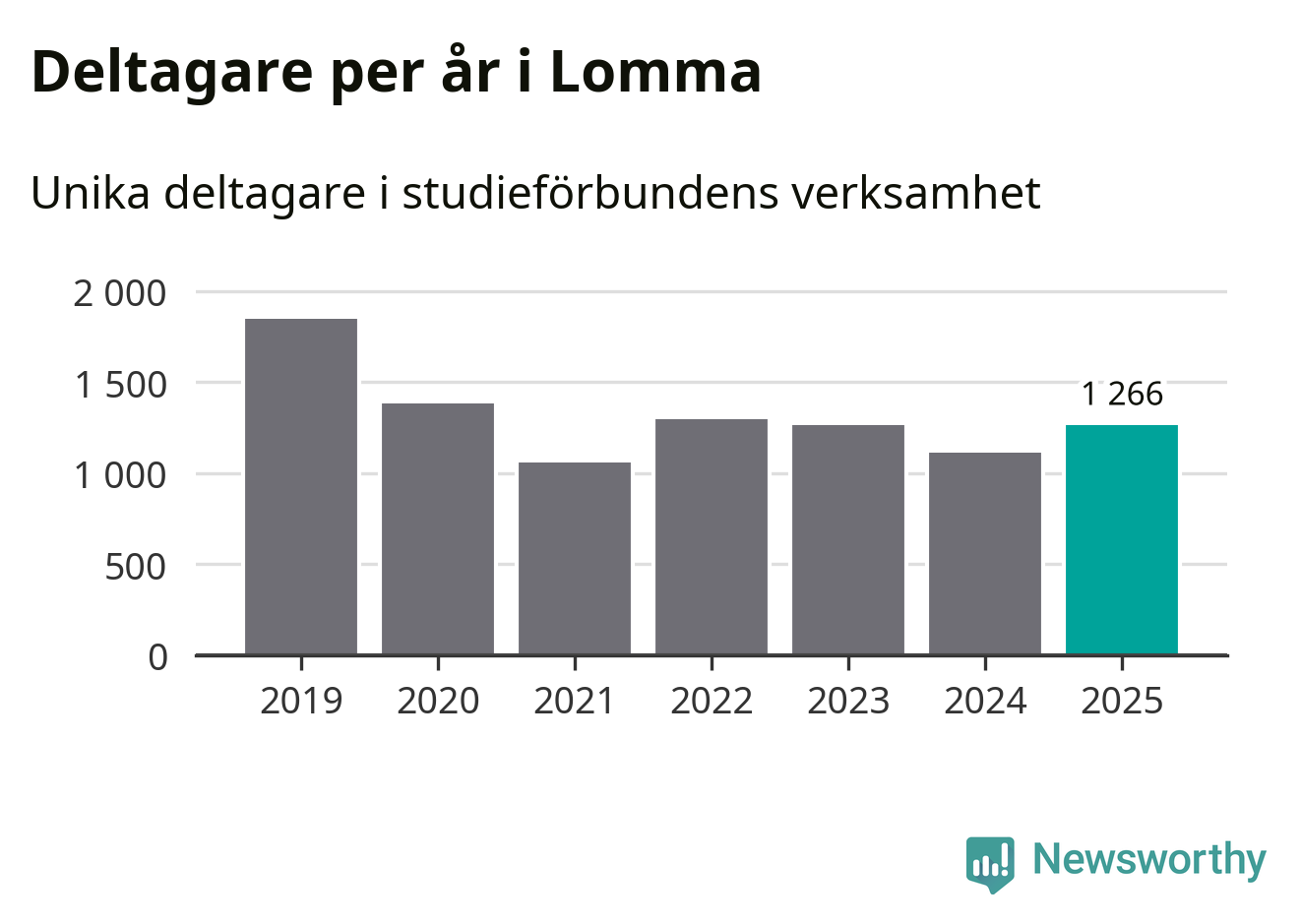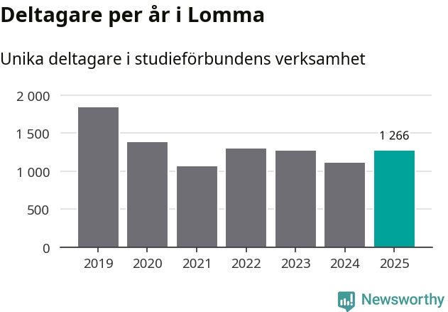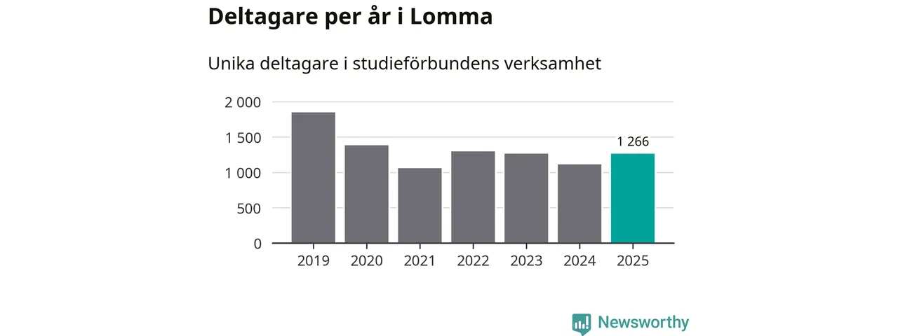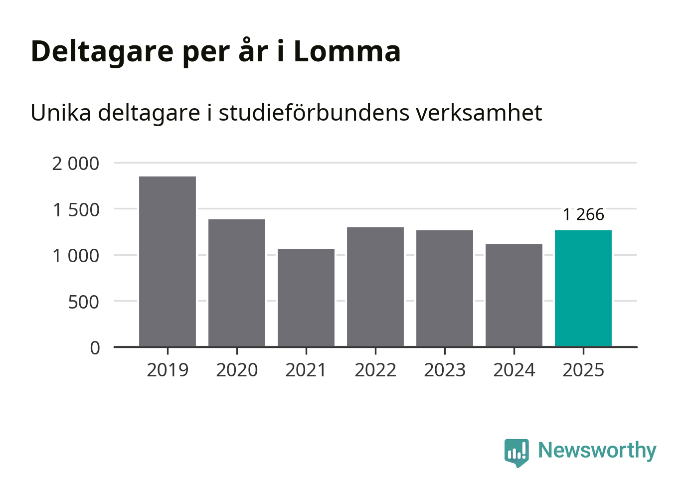 Även antalet unika deltagare ökade i Lomma i fjol: från 1 111 till 1 266 personer. Det innebär att fem procent av befolkningen i kommunen deltog i studieförbundens verksamhet under 2025, vilket är ungefär som rikssnittet.