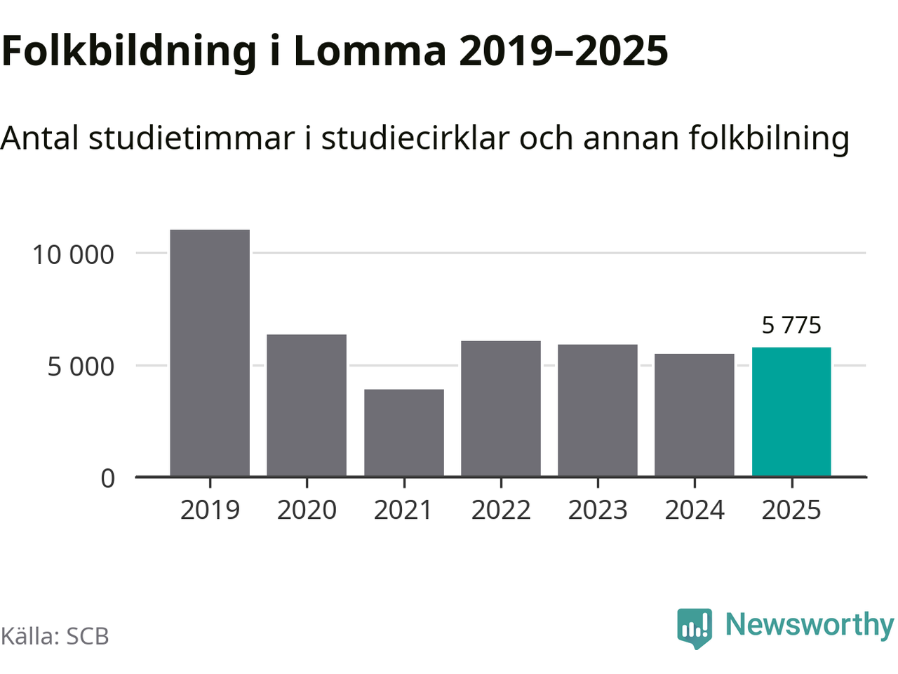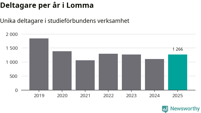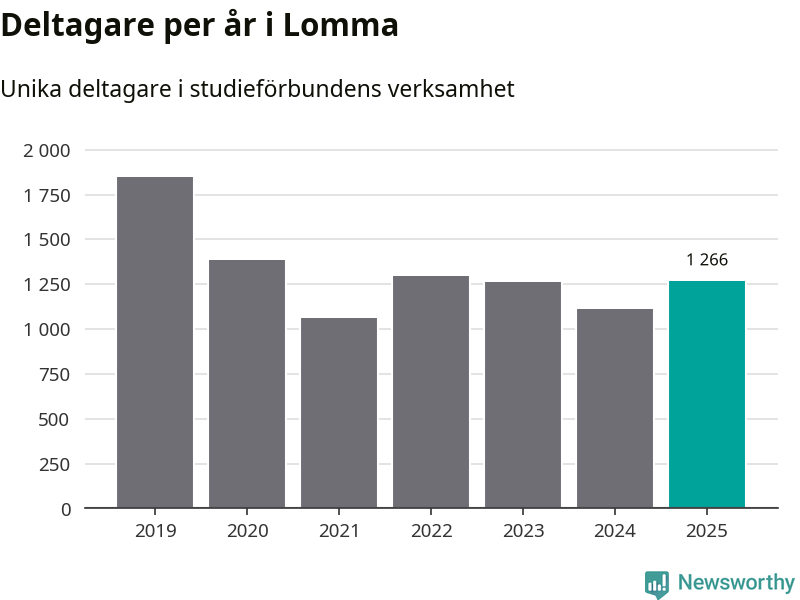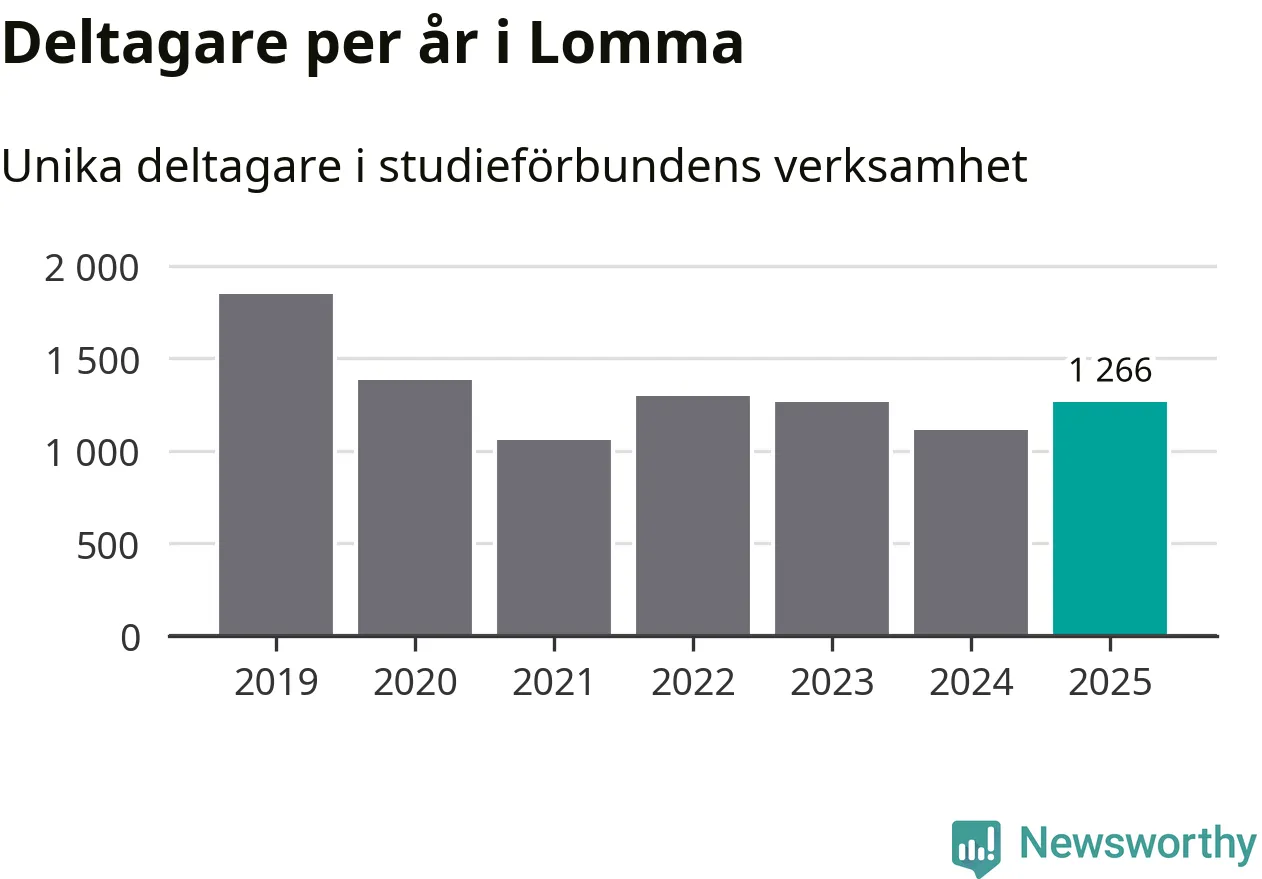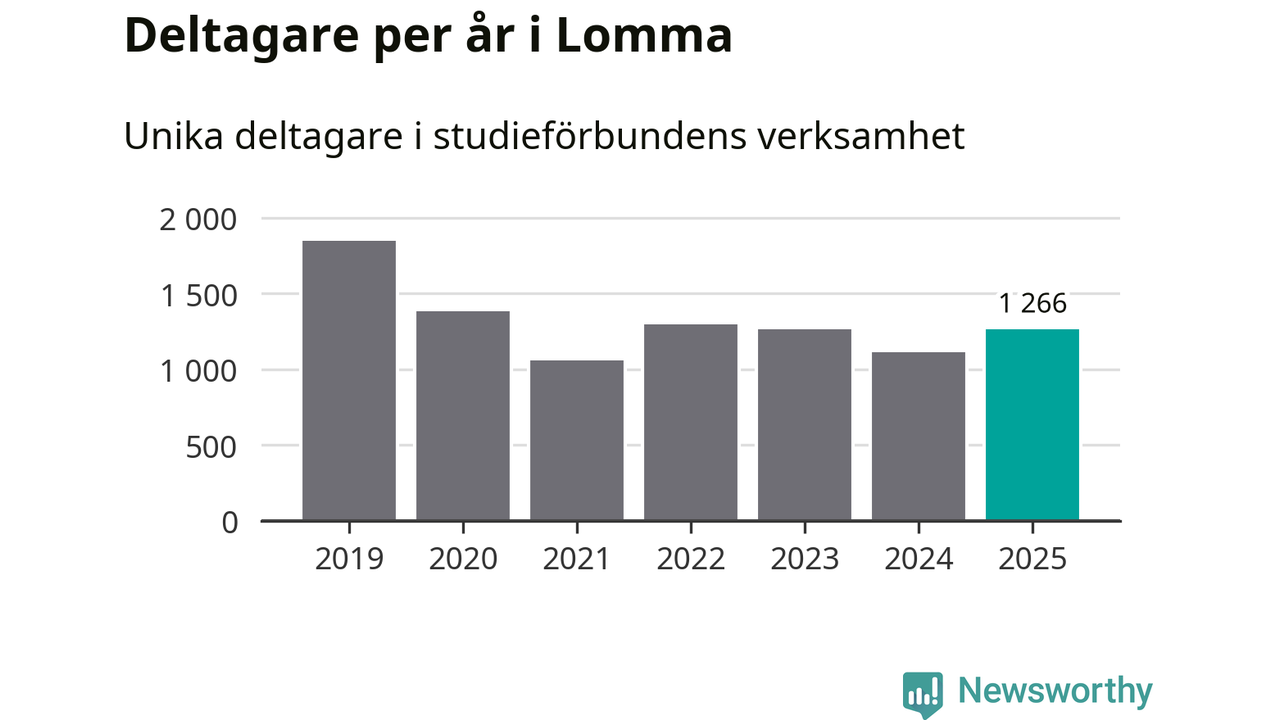 Även antalet unika deltagare ökade i Lomma i fjol: från 1 111 till 1 266 personer. Det innebär att fem procent av befolkningen i kommunen deltog i studieförbundens verksamhet under 2025, vilket är ungefär som rikssnittet.
