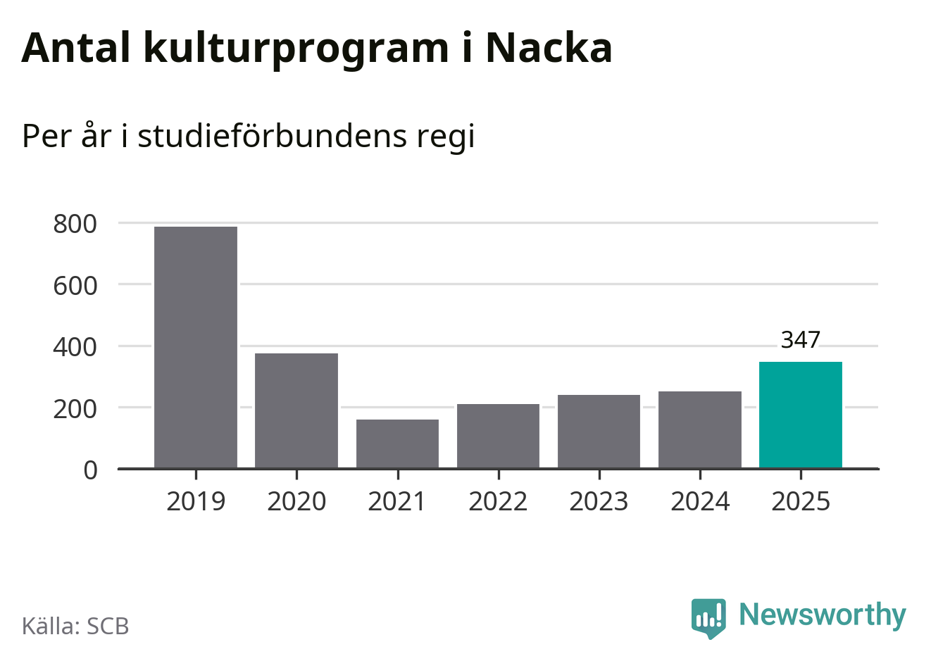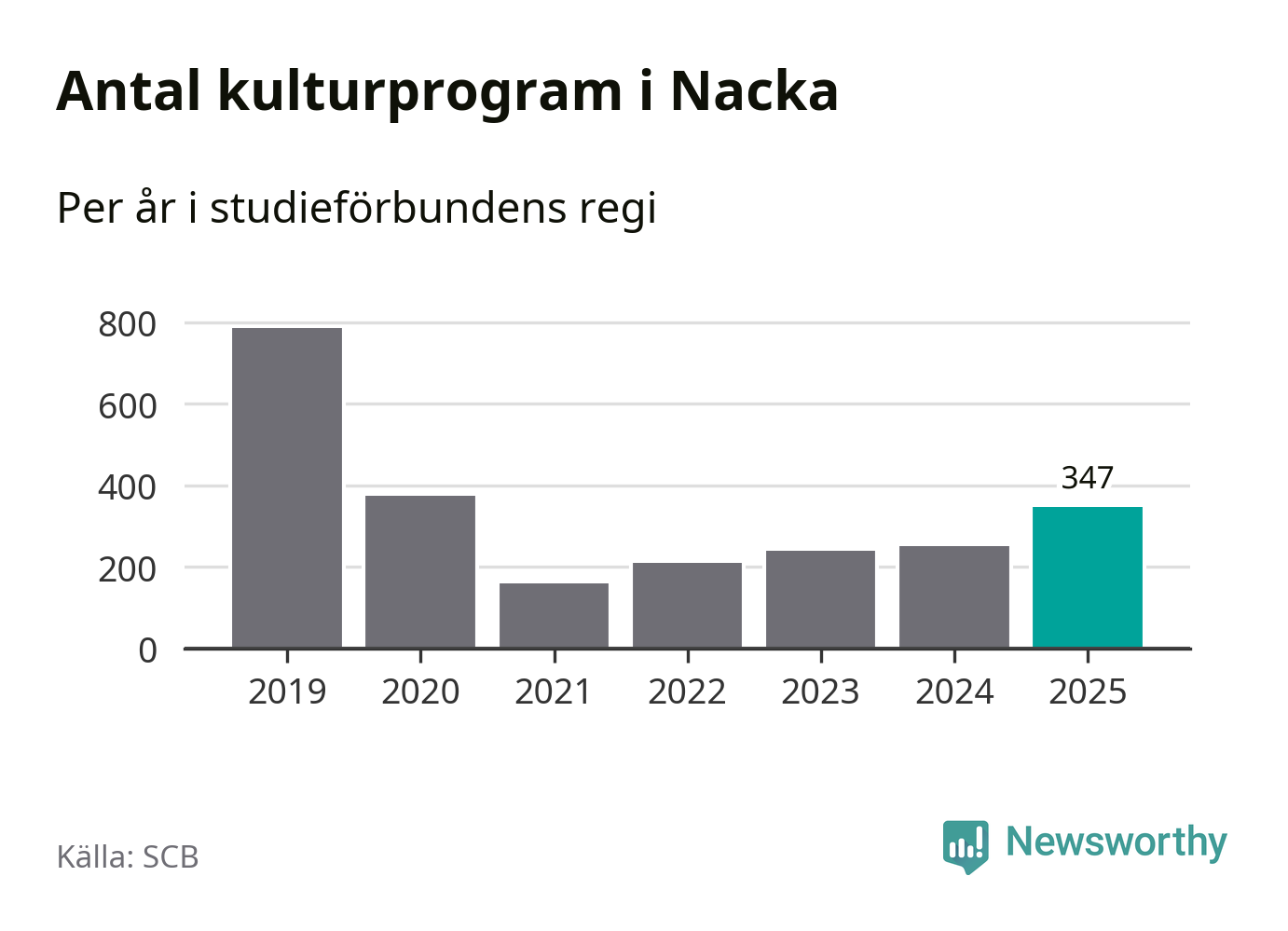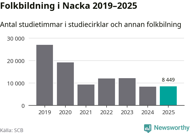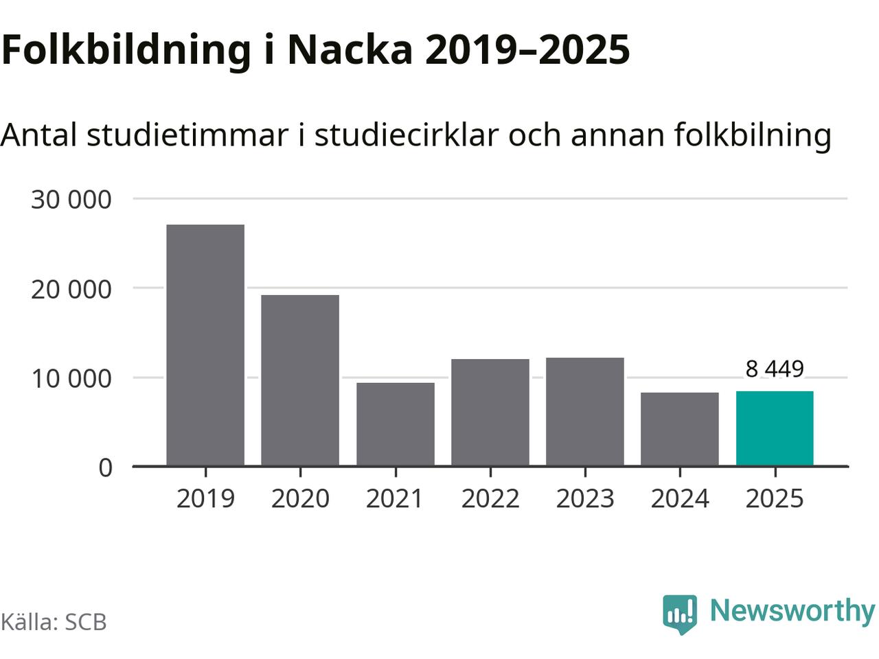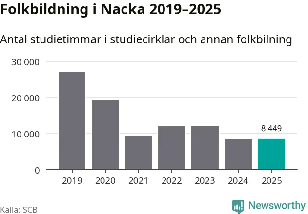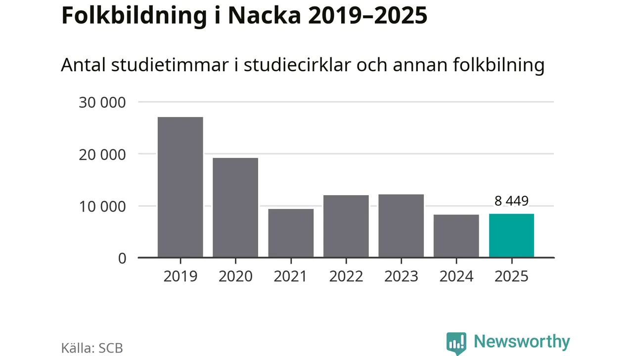 Studieförbunden drabbades hårt av pandemin. Även i Nacka noterades det lägsta antalet studietimmar under 2021, som då var 65 procent färre än 2019 – vilket fortfarande är fler än 2025.