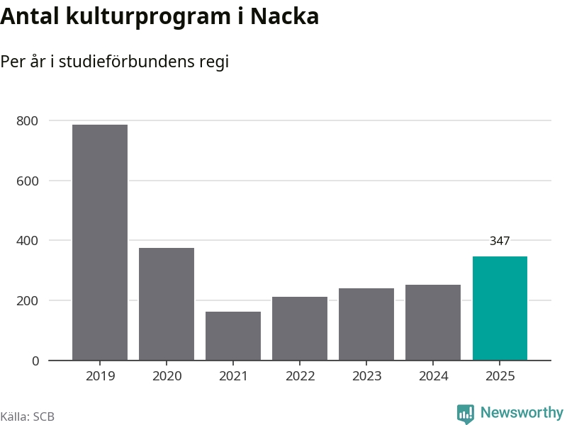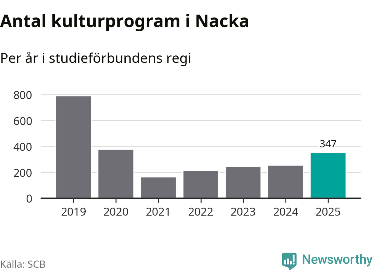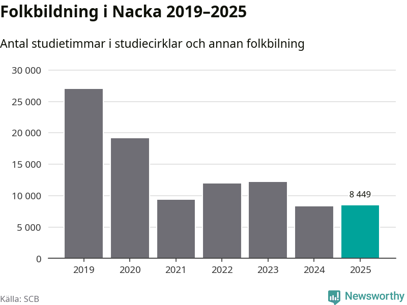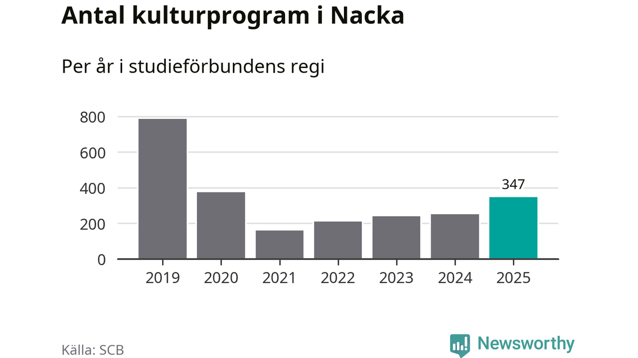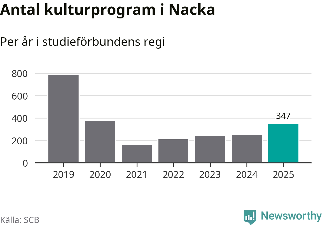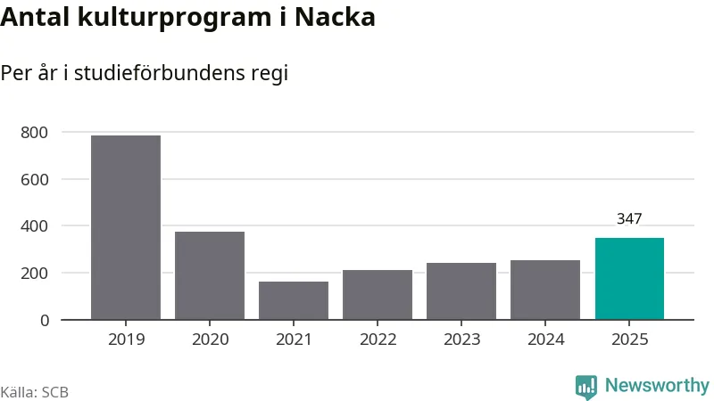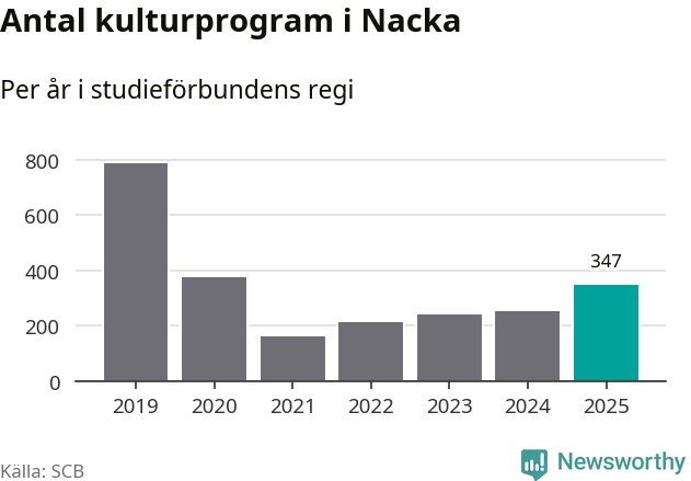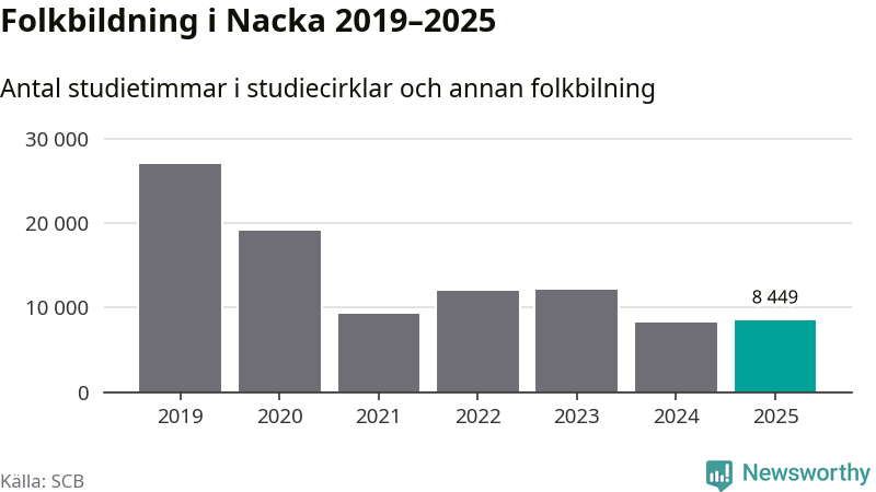 Studieförbunden drabbades hårt av pandemin. Även i Nacka noterades det lägsta antalet studietimmar under 2021, som då var 65 procent färre än 2019 – vilket fortfarande är fler än 2025.