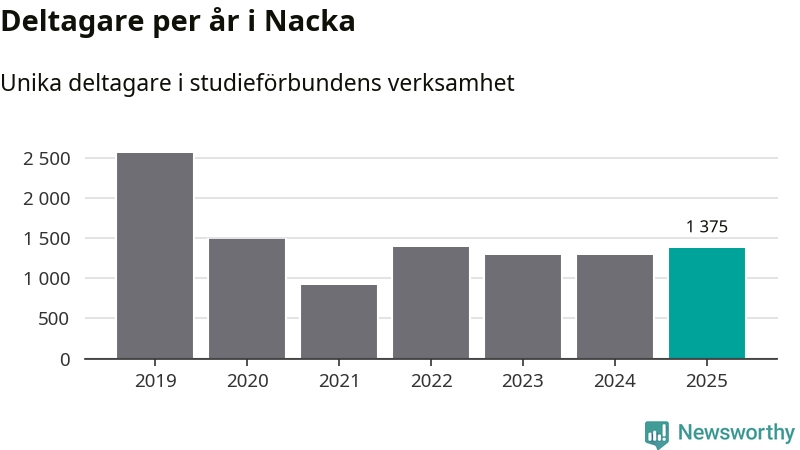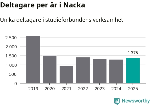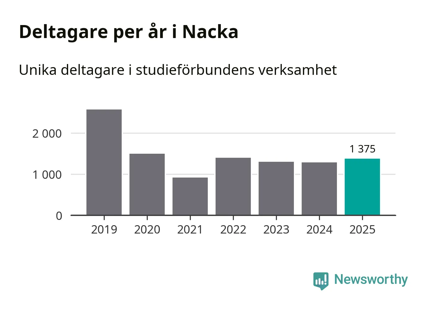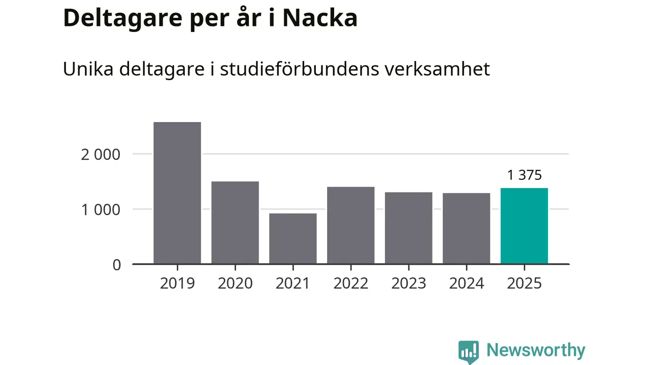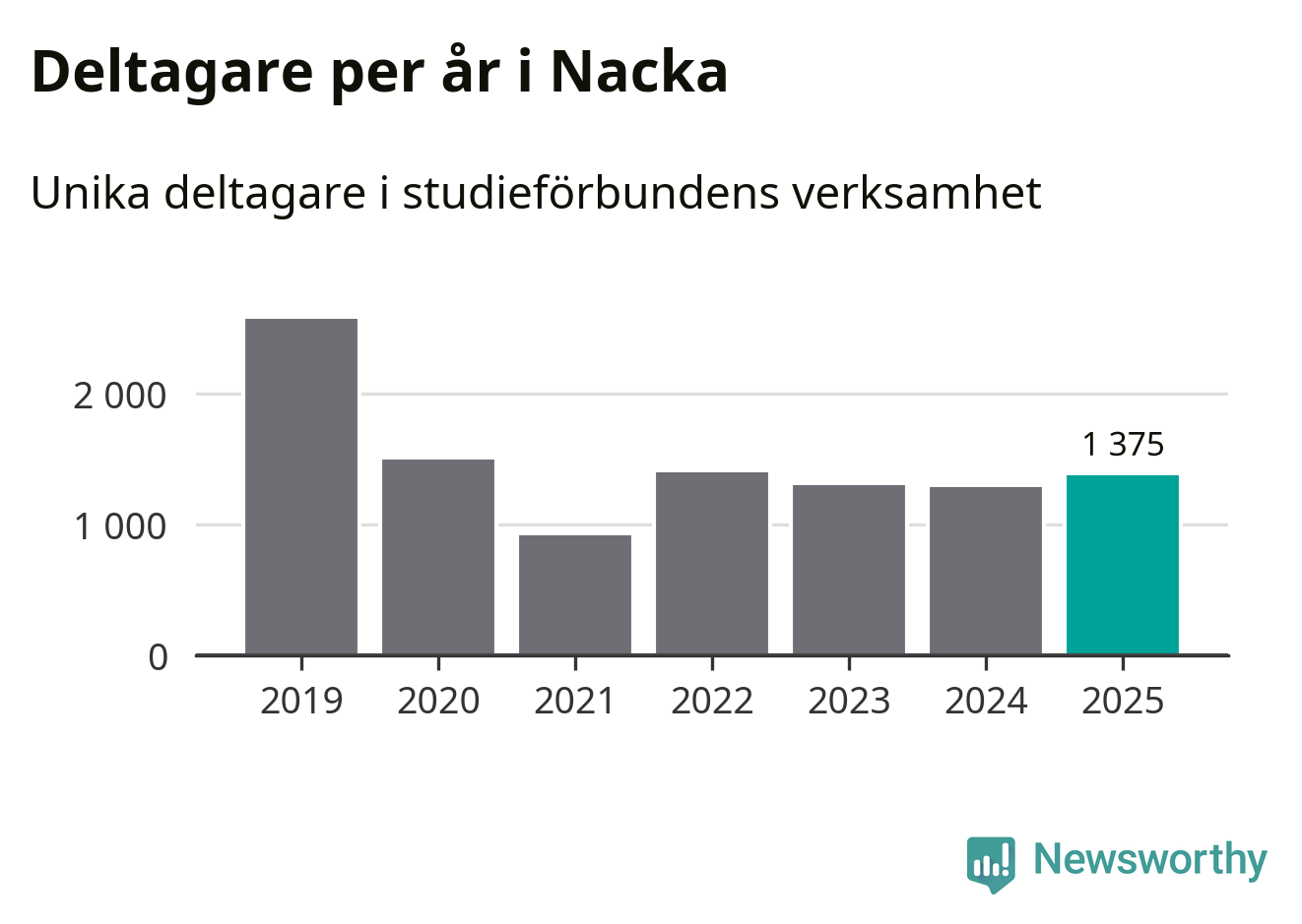 Även antalet unika deltagare ökade i Nacka i fjol: från 1 285 till 1 375 personer. Det innebär att en procent av befolkningen i kommunen deltog i studieförbundens verksamhet under 2025, vilket är lägre än rikssnittet.