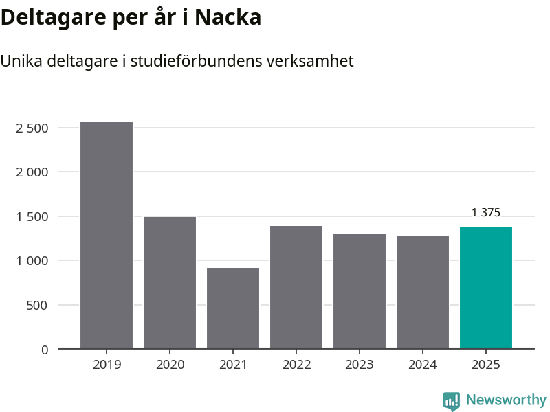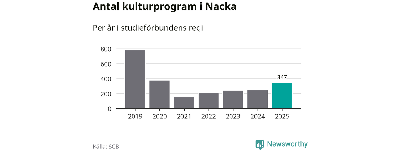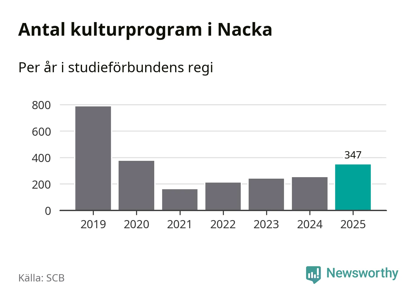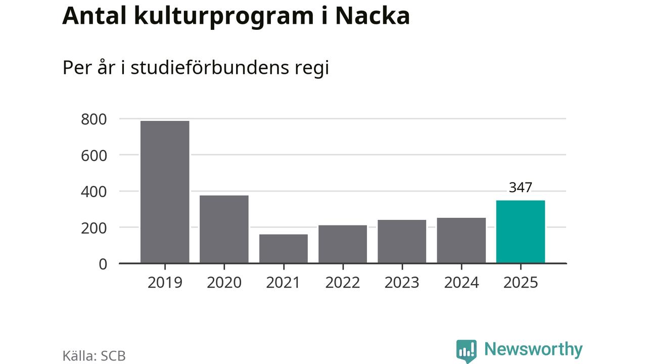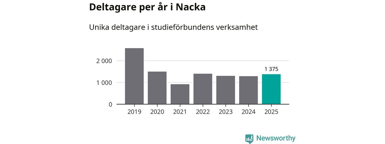 Även antalet unika deltagare ökade i Nacka i fjol: från 1 285 till 1 375 personer. Det innebär att en procent av befolkningen i kommunen deltog i studieförbundens verksamhet under 2025, vilket är lägre än rikssnittet.