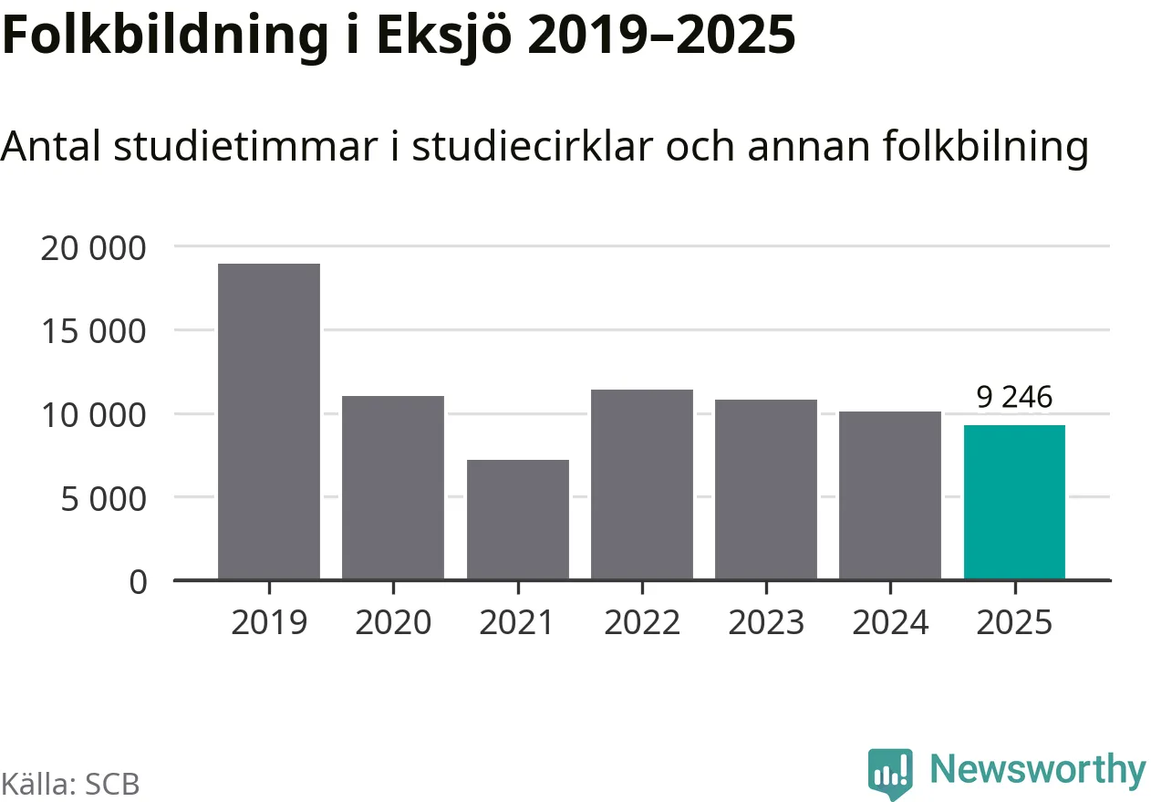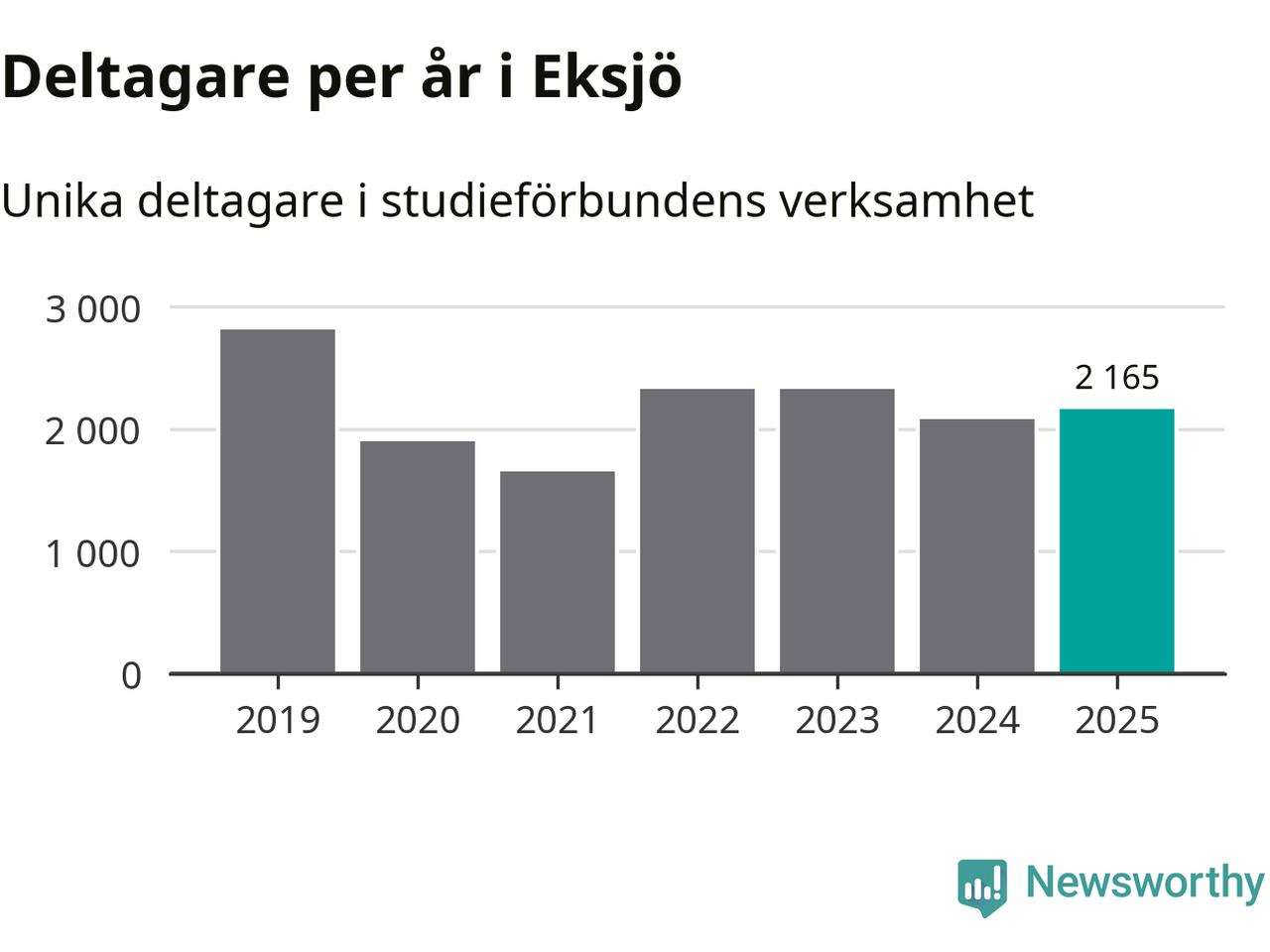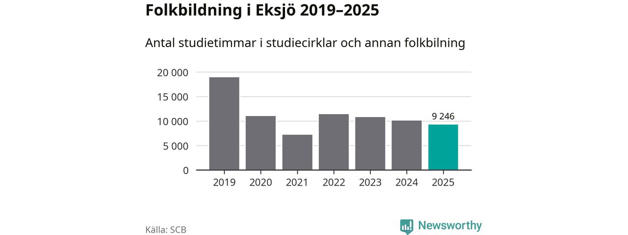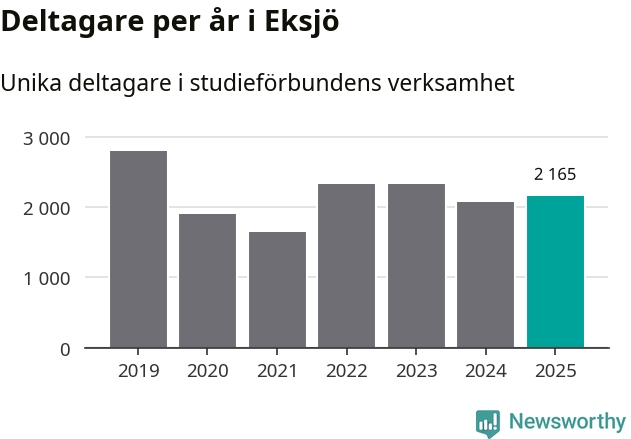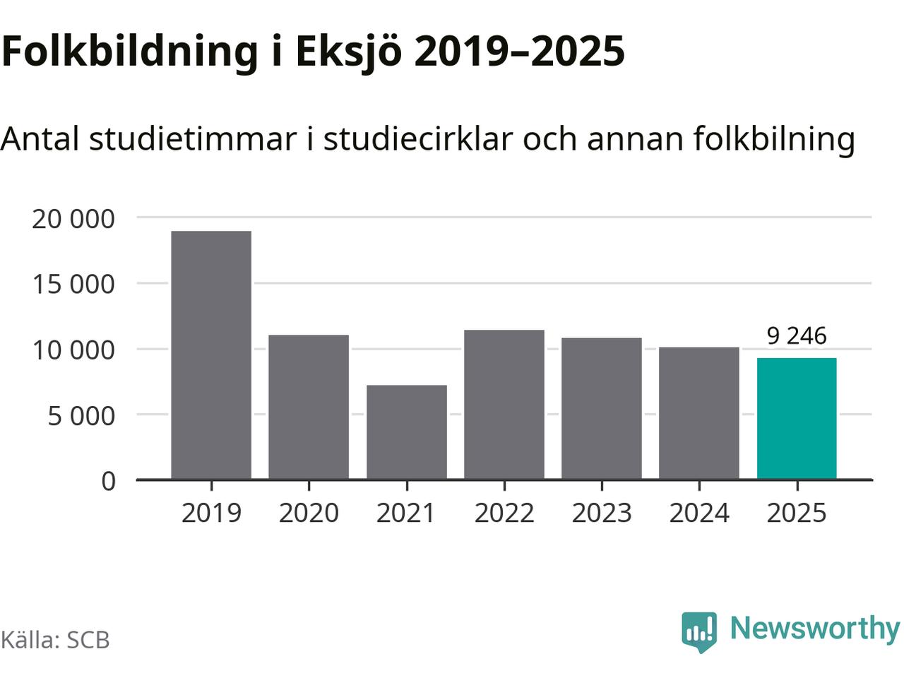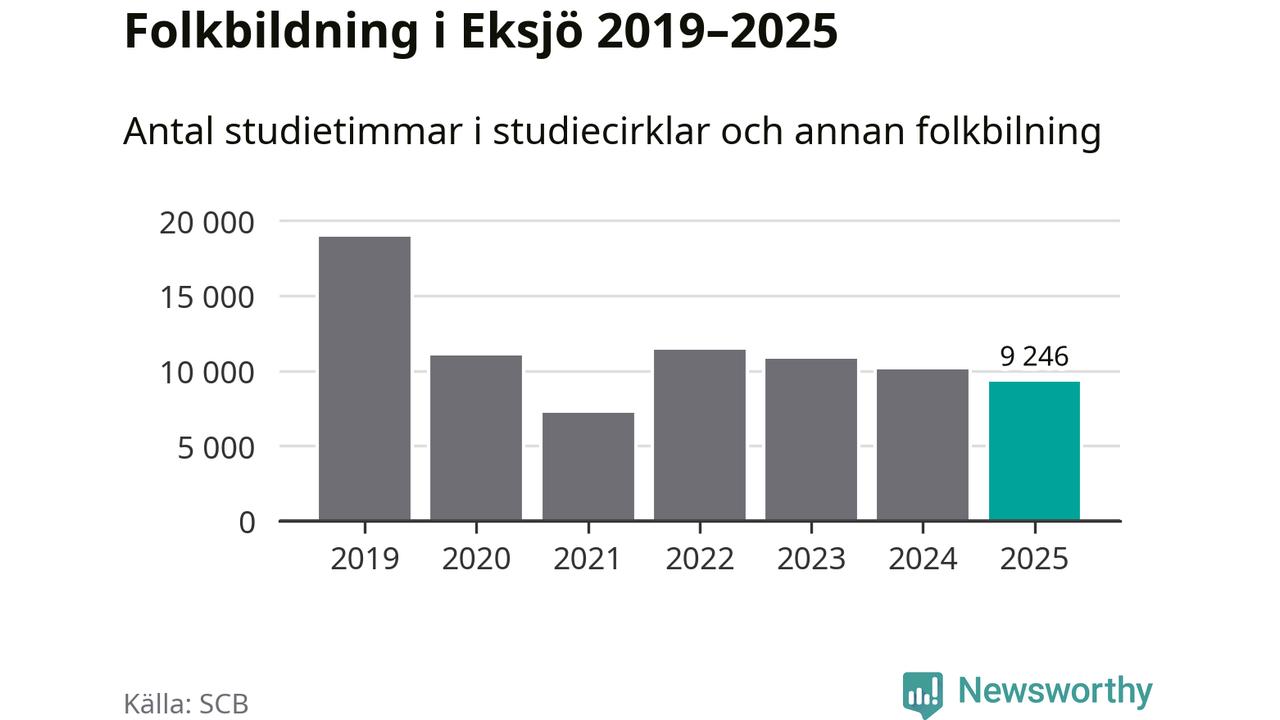 Studieförbunden drabbades hårt av pandemin. Även i Eksjö noterades det lägsta antalet studietimmar under 2021, som då var 62 procent färre än 2019. År 2024 var antalet studietimmar åter högre men de var fortfarande långt från förpandeminivåerna.