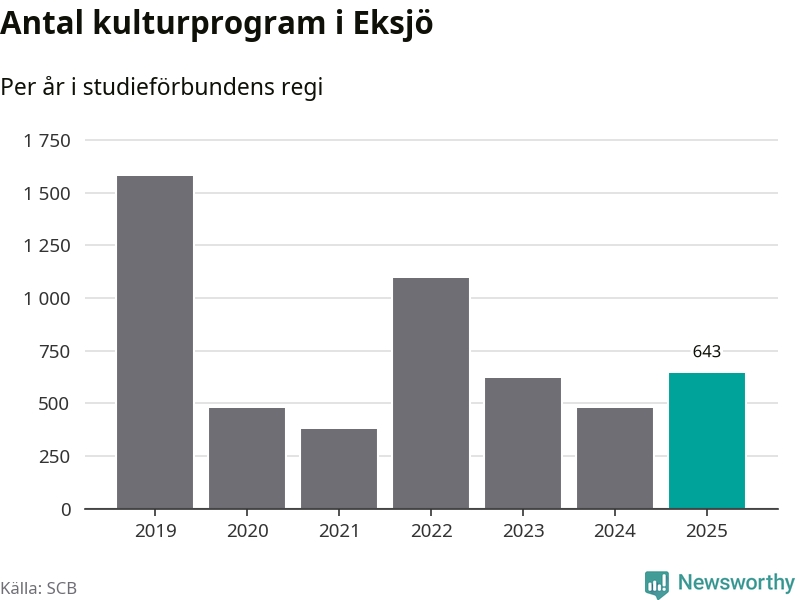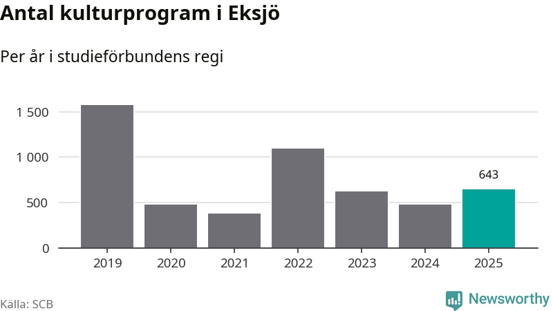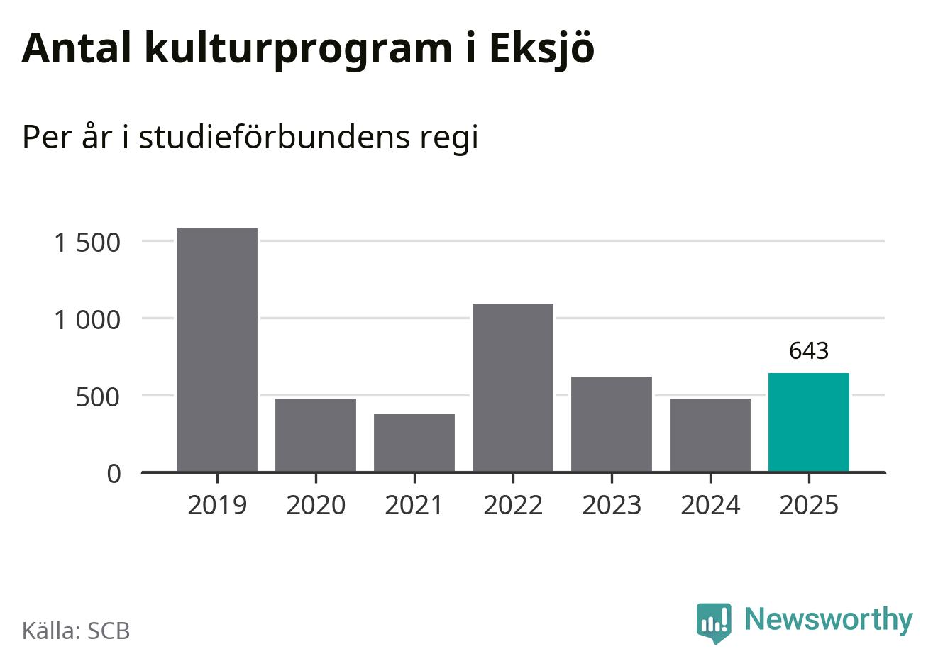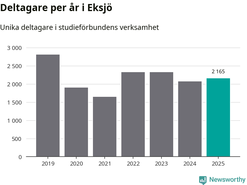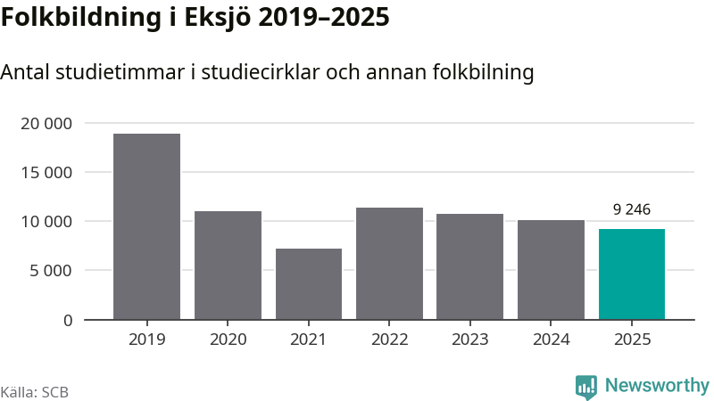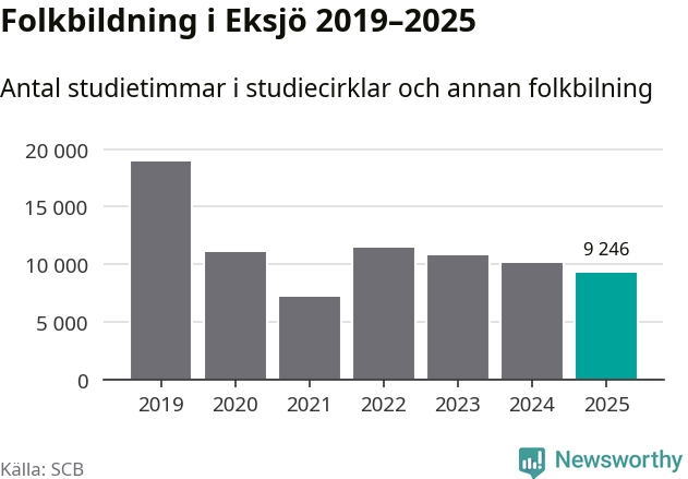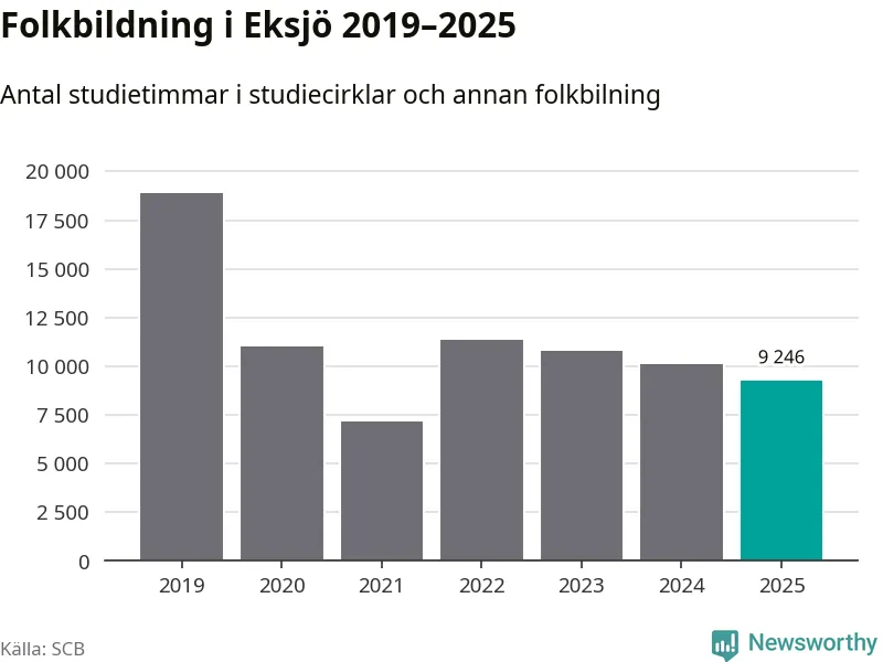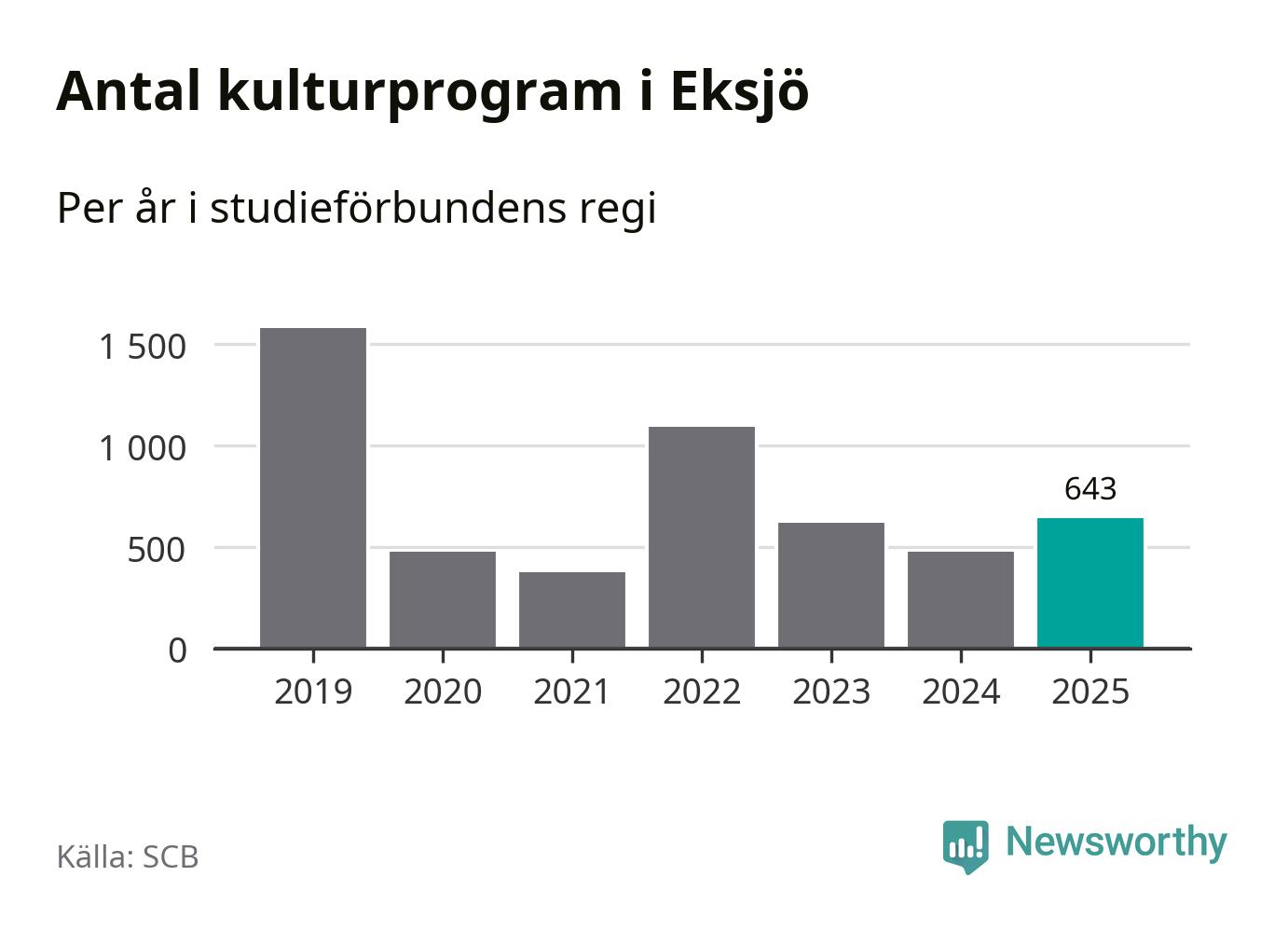 Studieförbunden drabbades hårt av pandemin. Även i Eksjö noterades det lägsta antalet studietimmar under 2021, som då var 62 procent färre än 2019. År 2024 var antalet studietimmar åter högre men de var fortfarande långt från förpandeminivåerna.