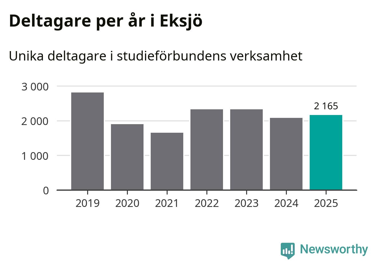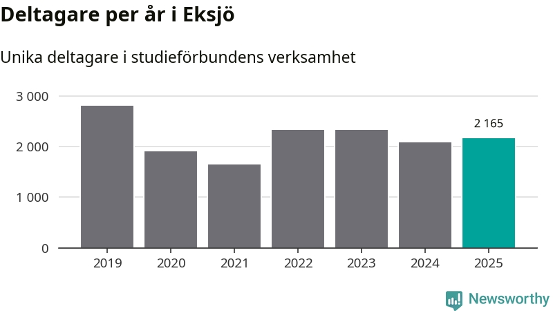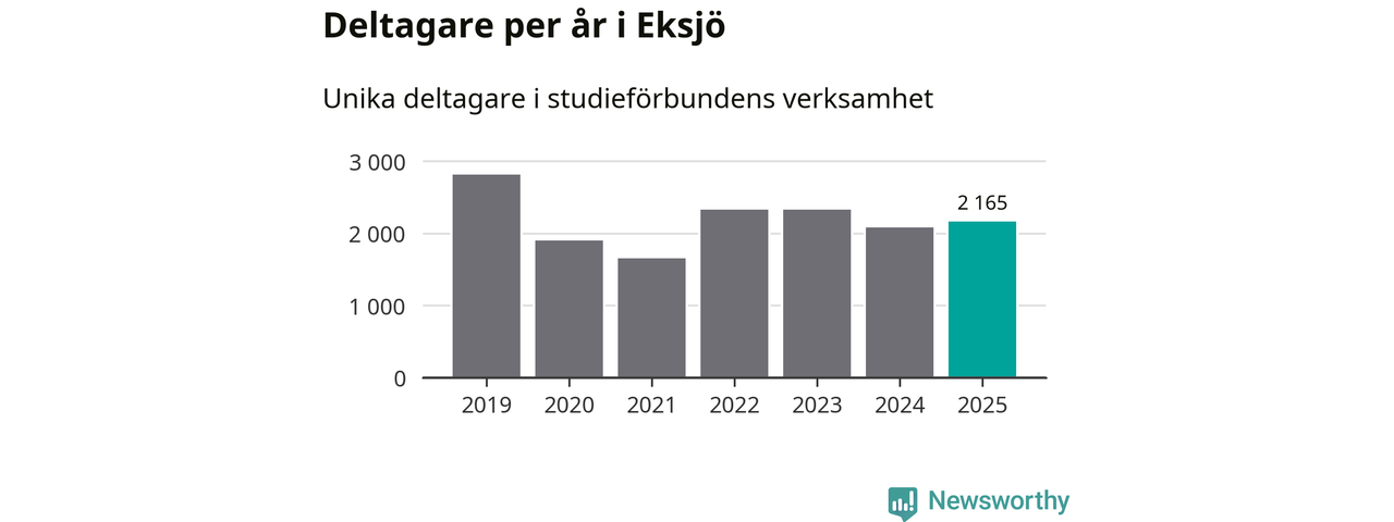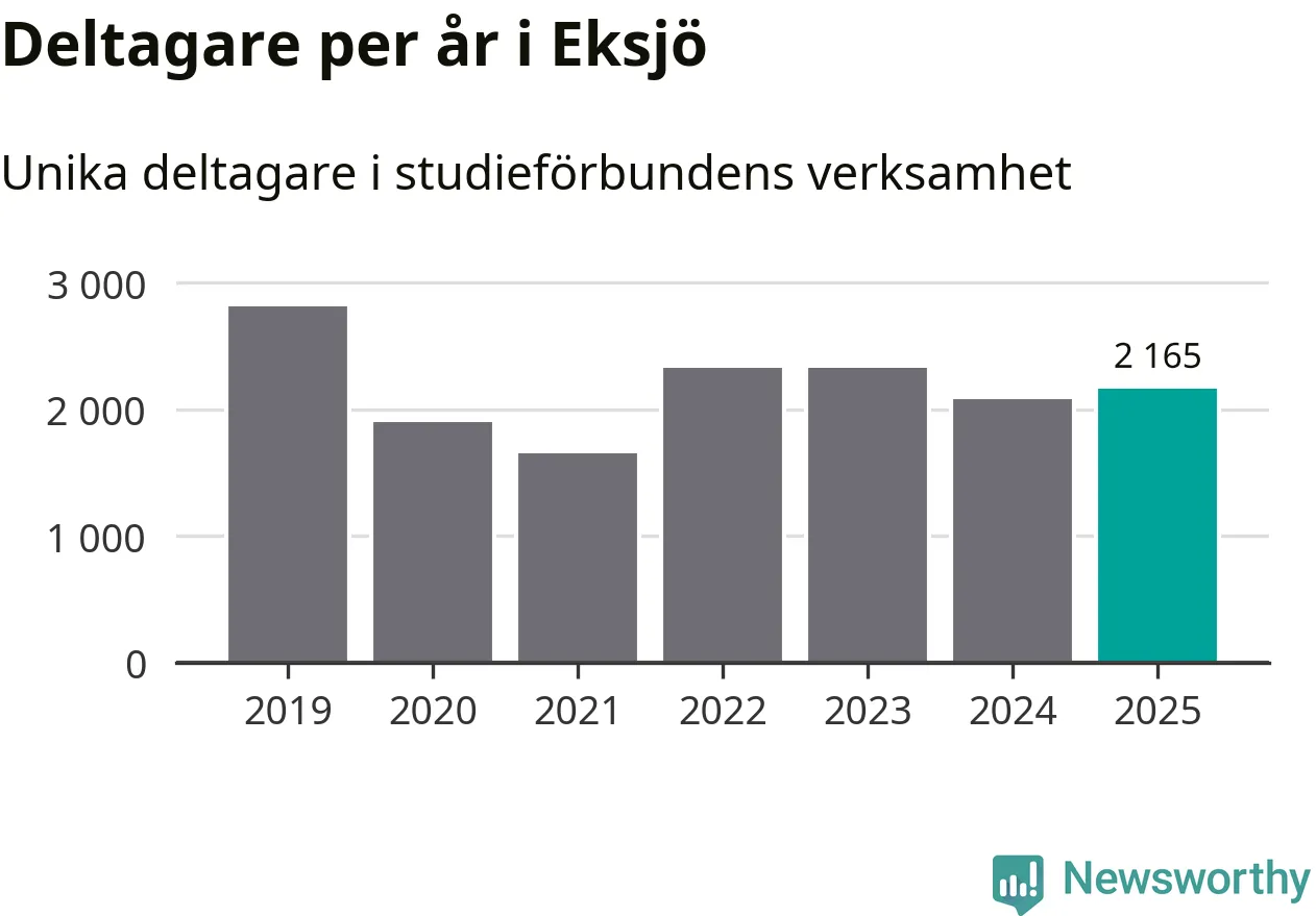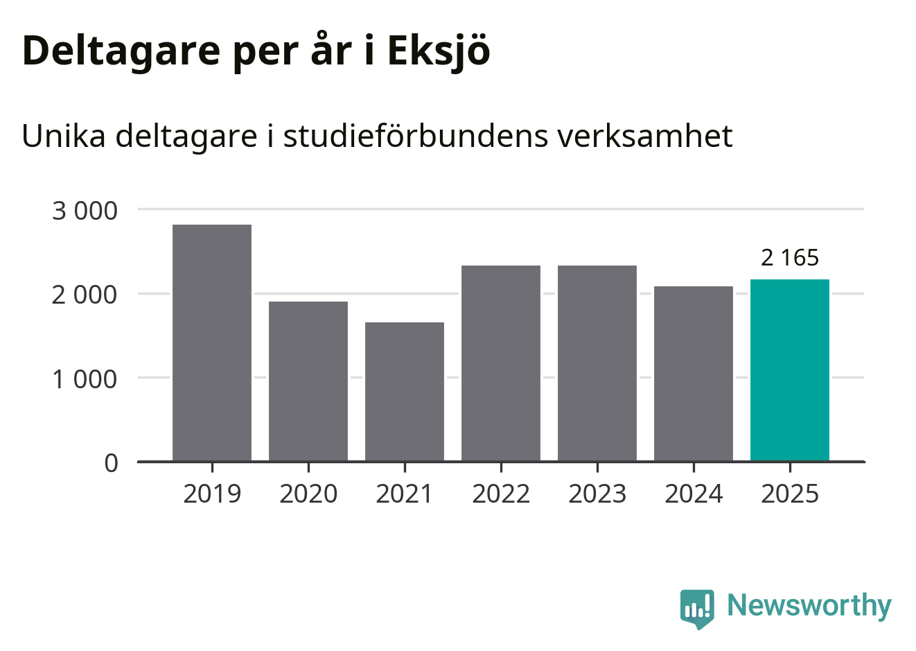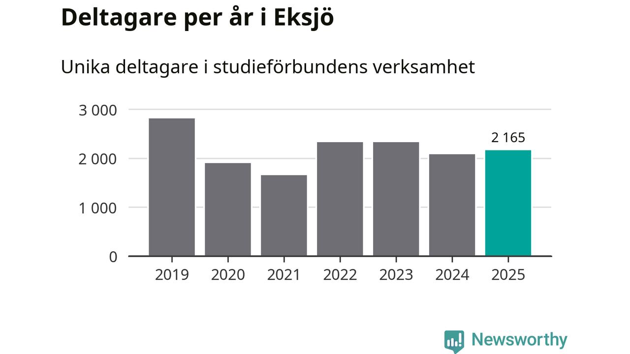 Antalet unika deltagare ökade i Eksjö i fjol: från 2 079 till 2 165 personer. Det innebär att tolv procent av befolkningen i kommunen deltog i studieförbundens verksamhet under 2025, vilket är högre än rikssnittet.