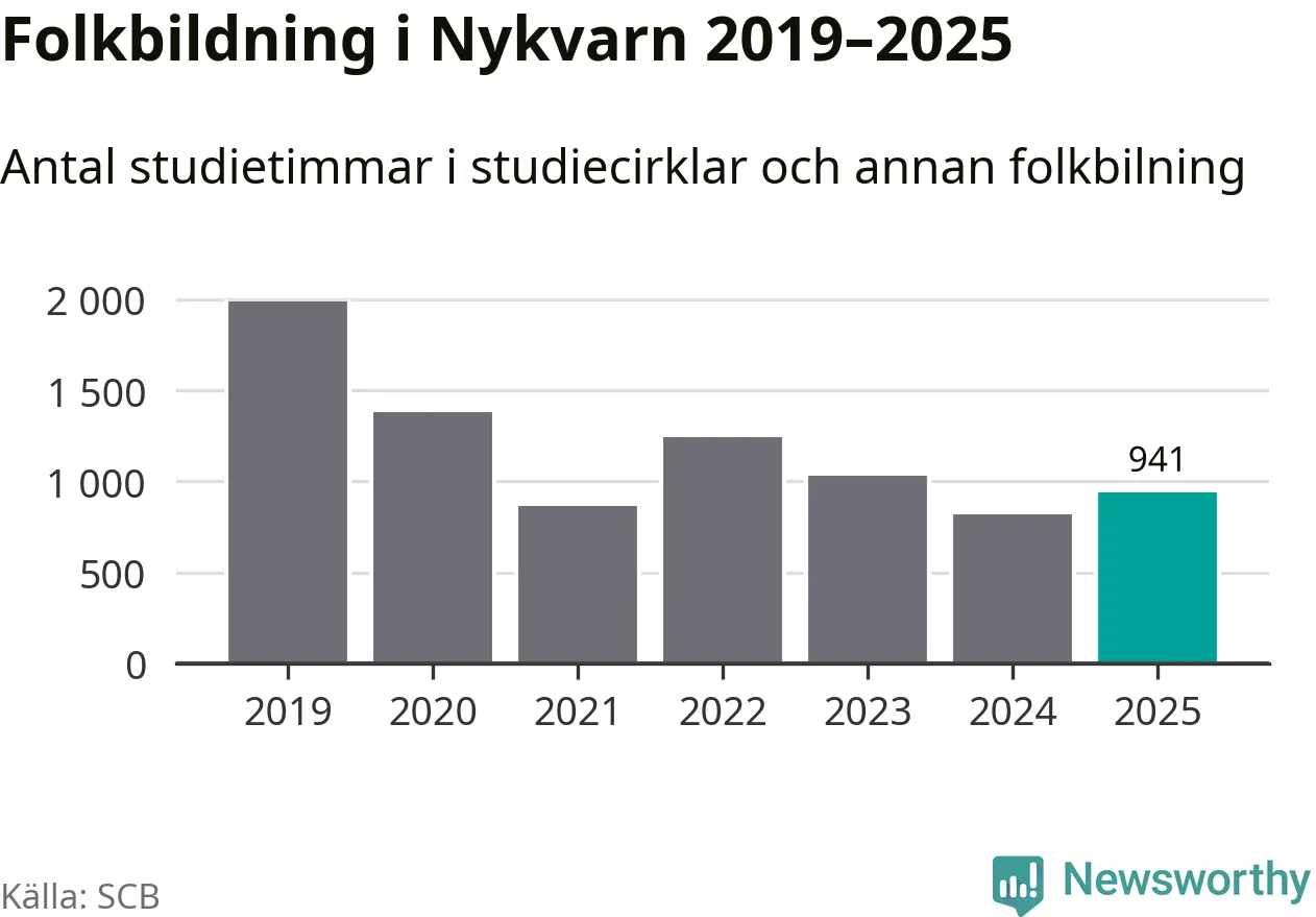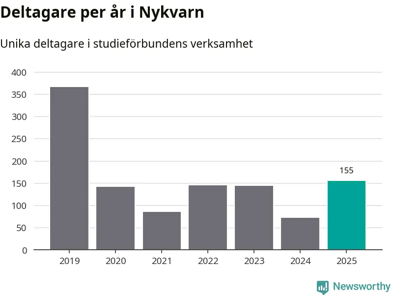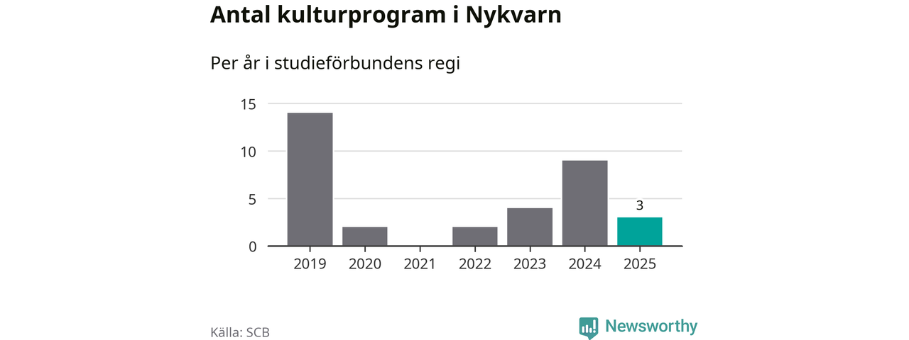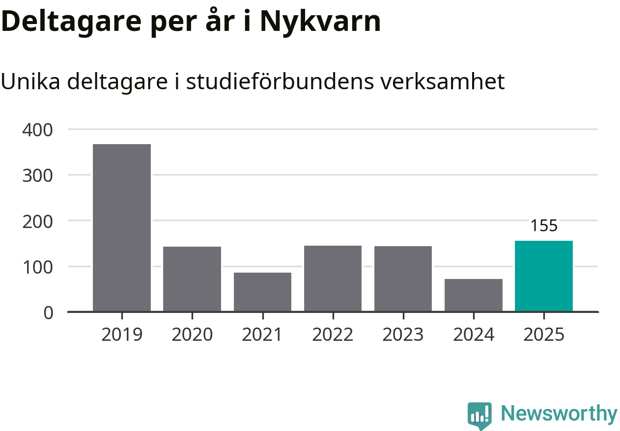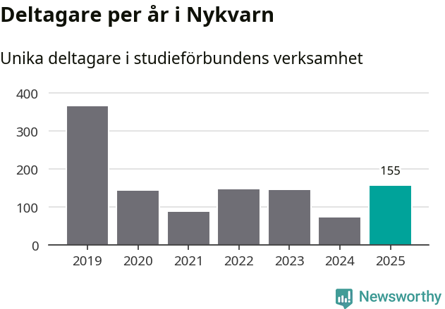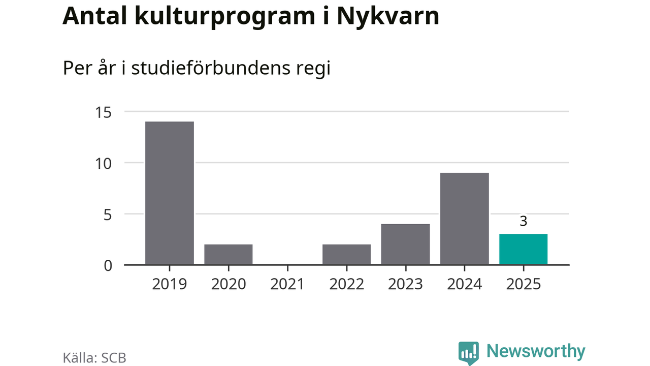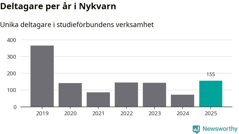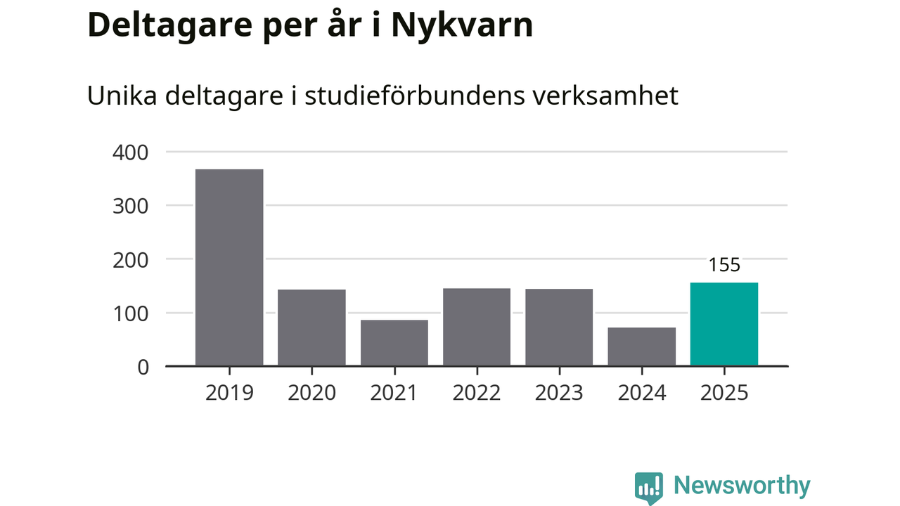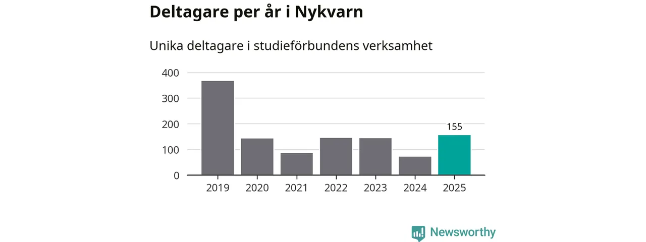 Även antalet unika deltagare ökade i Nykvarn i fjol: från 72 till 155 personer. Det innebär att en procent av befolkningen i kommunen deltog i studieförbundens verksamhet under 2025, vilket är lägre än rikssnittet.