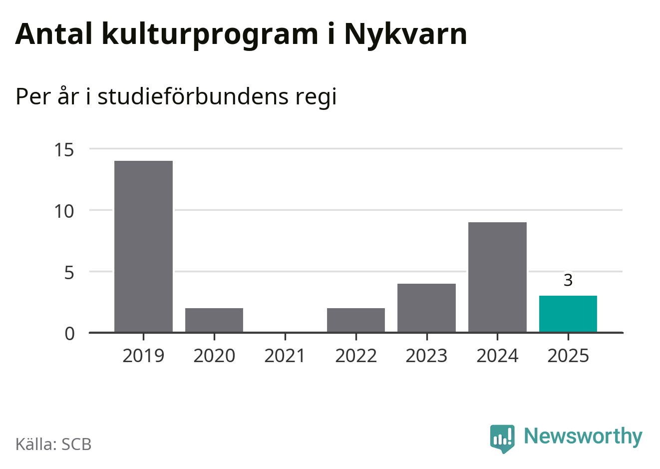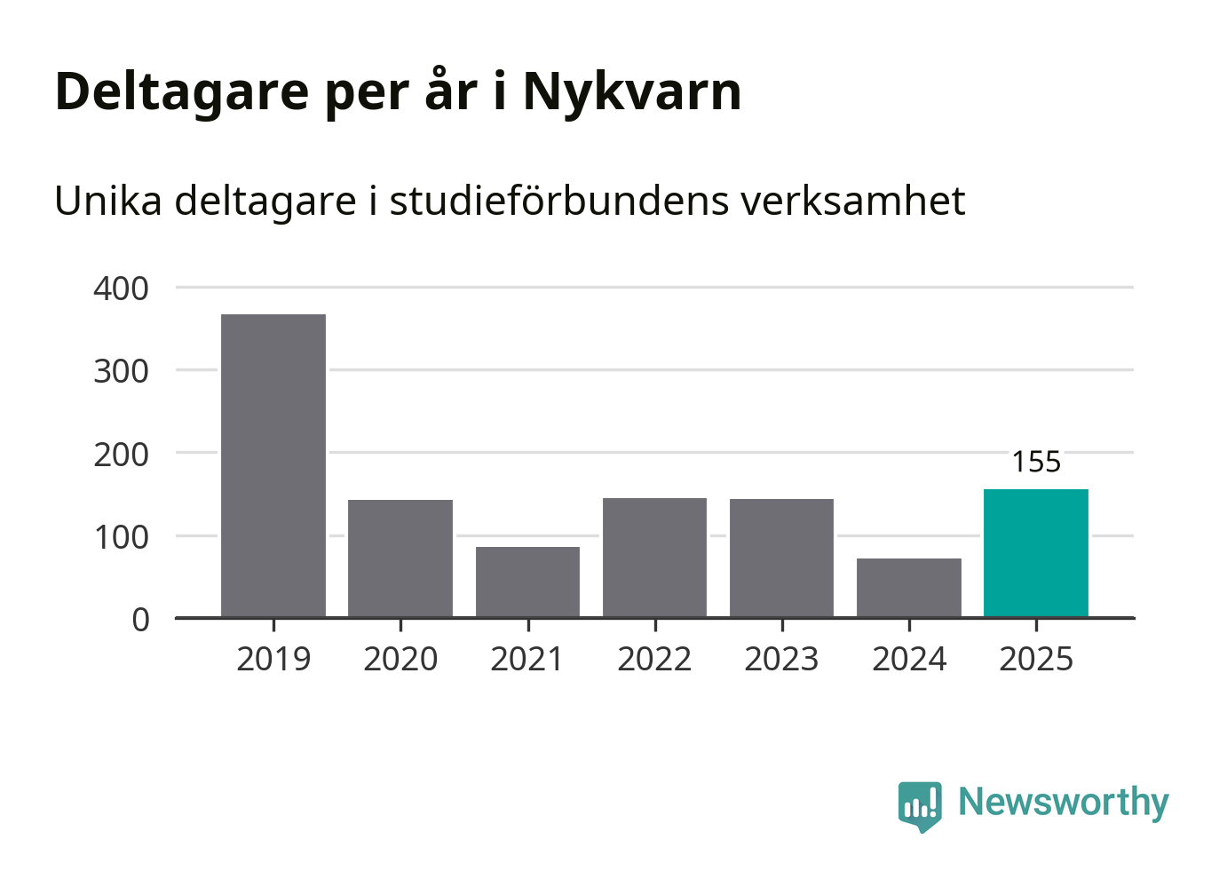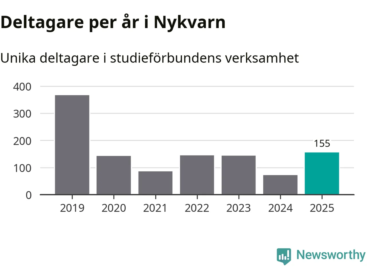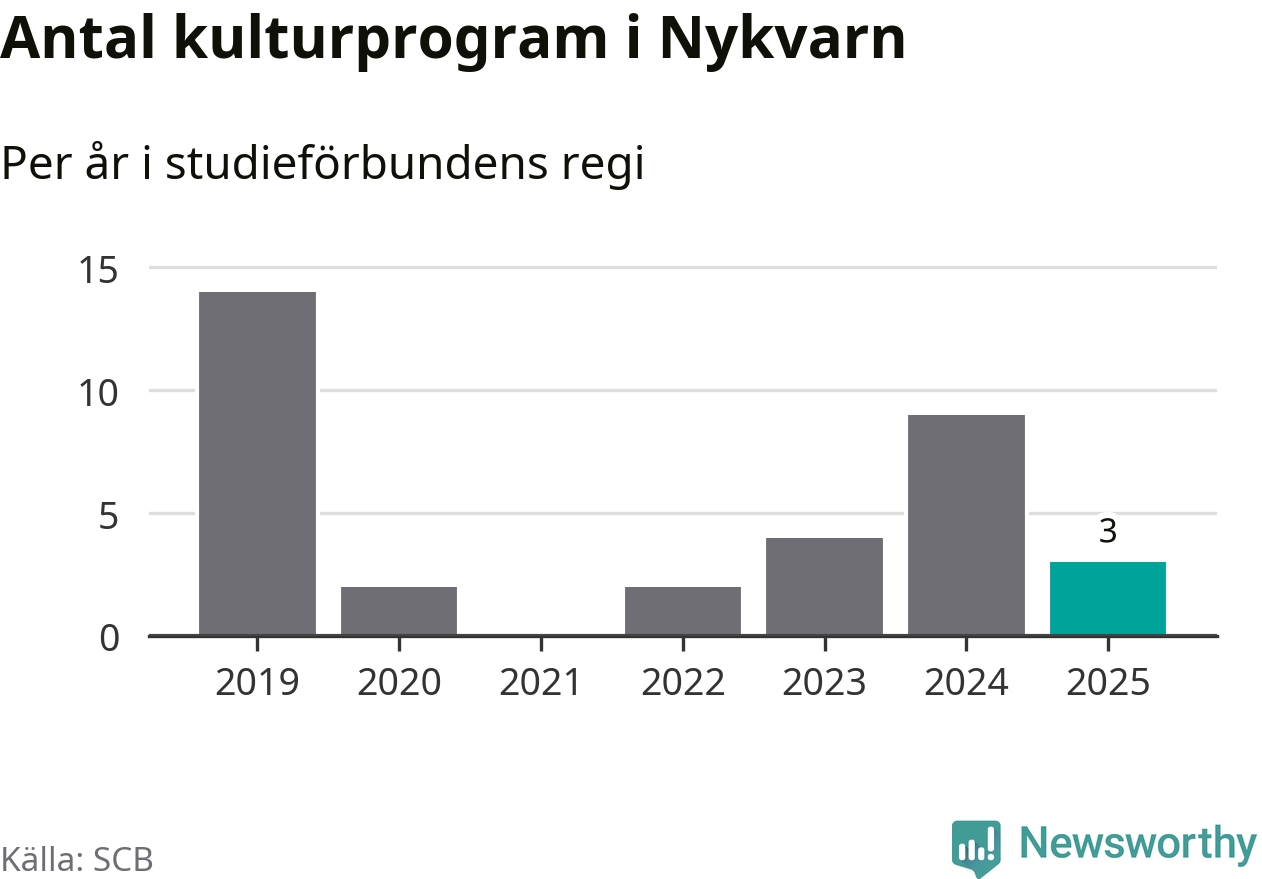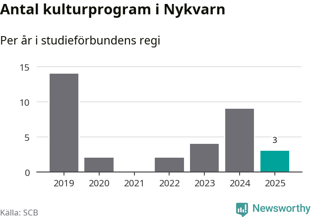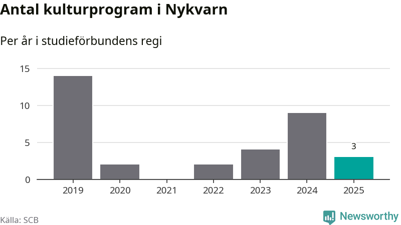 Även antalet unika deltagare ökade i Nykvarn i fjol: från 72 till 155 personer. Det innebär att en procent av befolkningen i kommunen deltog i studieförbundens verksamhet under 2025, vilket är lägre än rikssnittet.