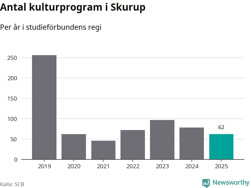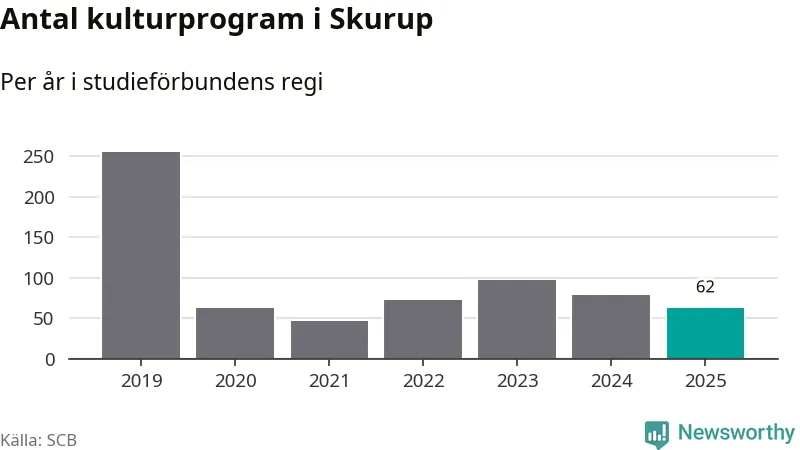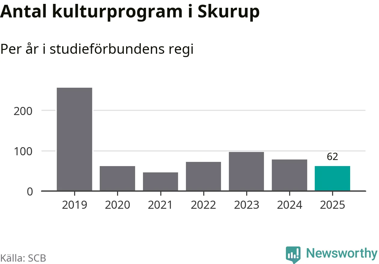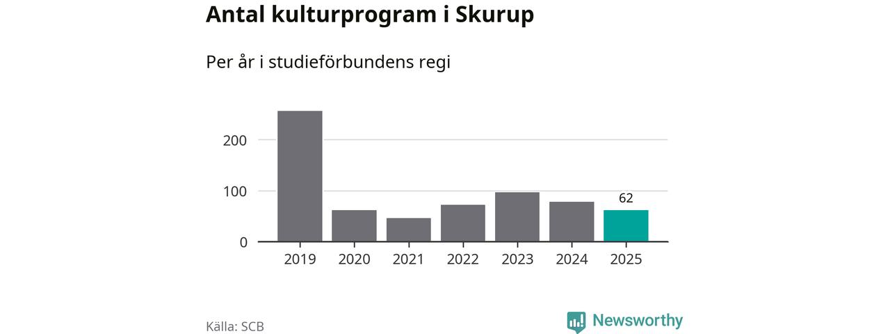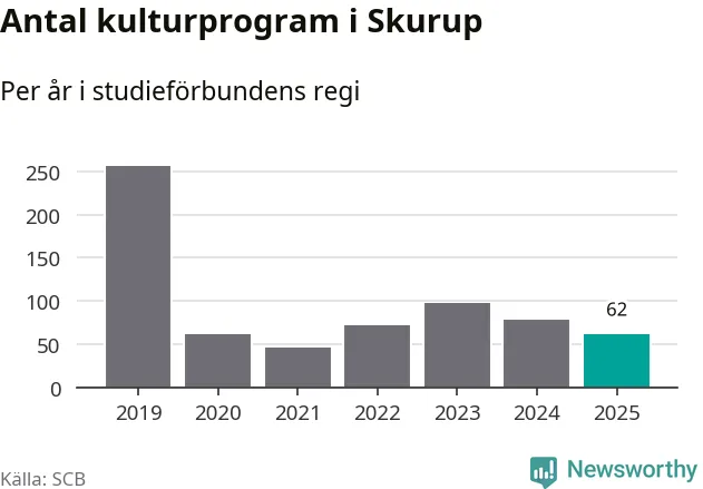 I Skurup är minskningen ännu större: förra året hade studieförbunden omkring 7 700 studietimmar i kommunen, vilket är en minskning med 16 procent jämfört med året innan. Även antalet kulturprogram i studieförbundens regi minskade, från 78 till 62 stycken.