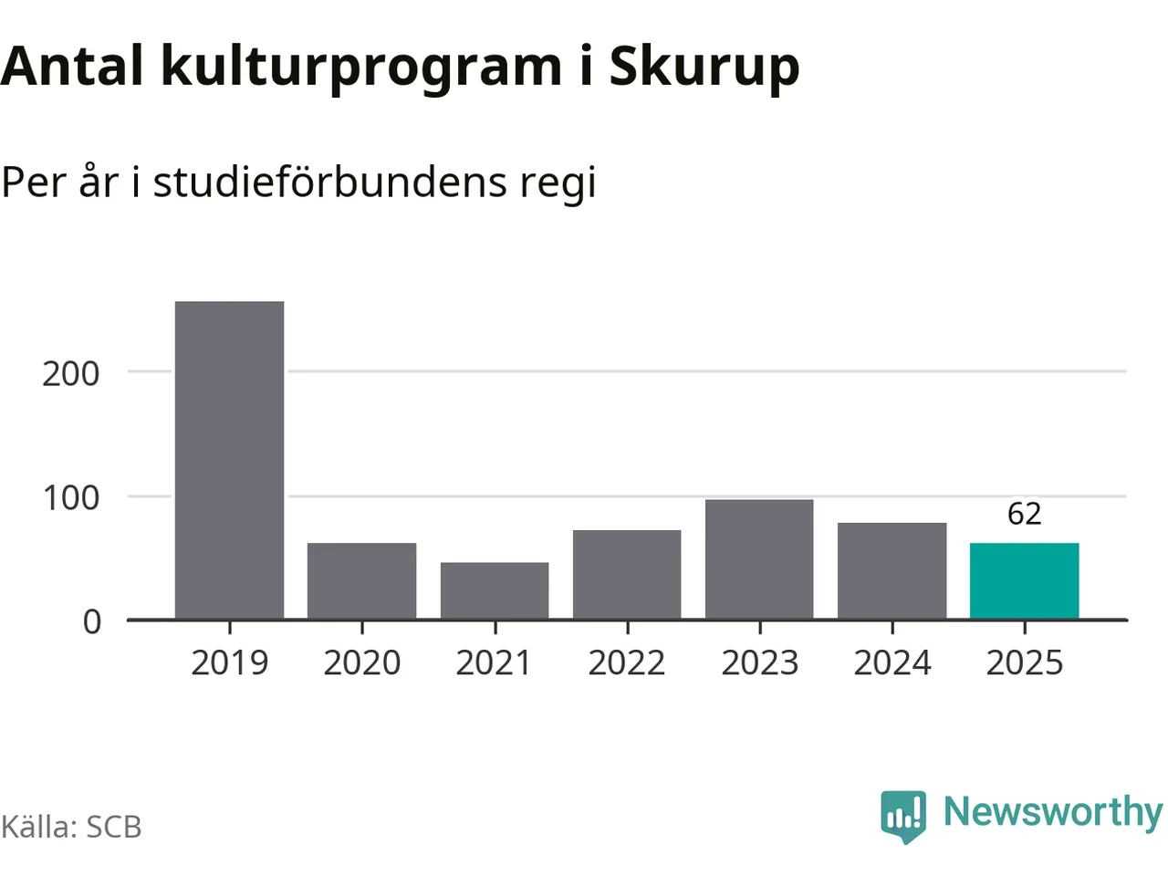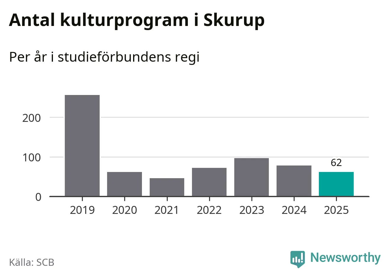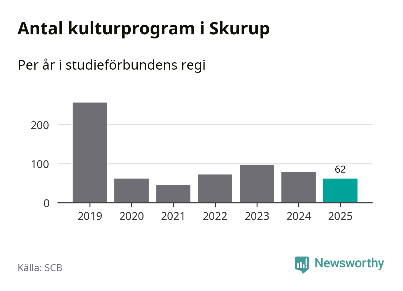 I Skurup är minskningen ännu större: förra året hade studieförbunden omkring 7 700 studietimmar i kommunen, vilket är en minskning med 16 procent jämfört med året innan. Även antalet kulturprogram i studieförbundens regi minskade, från 78 till 62 stycken.