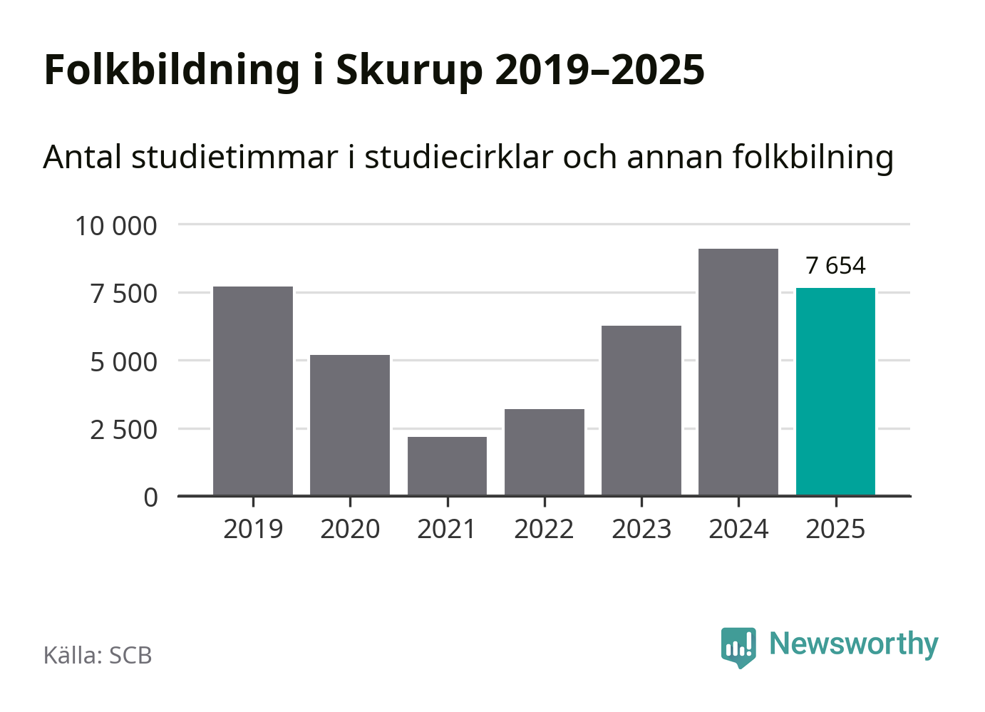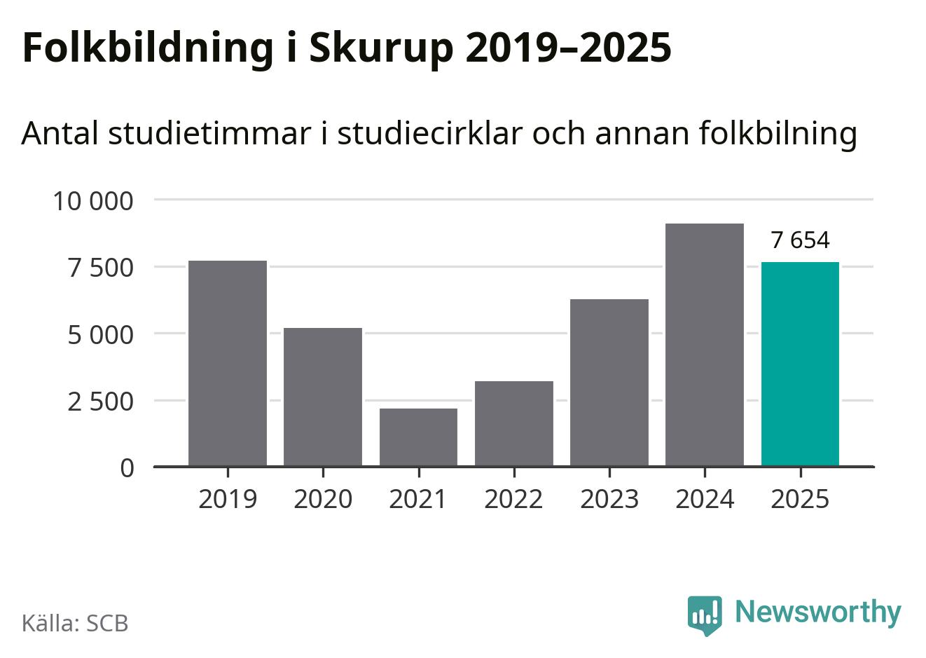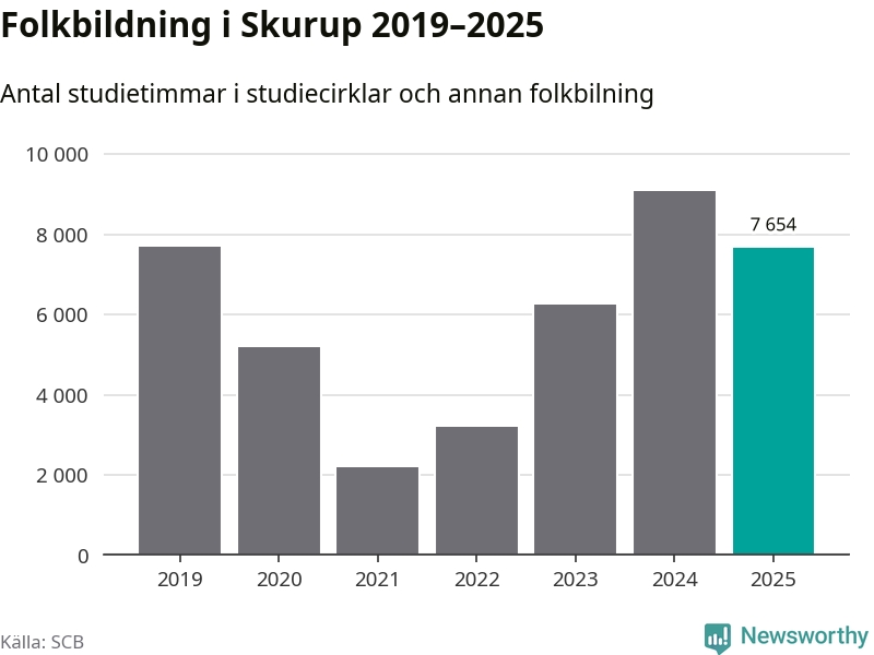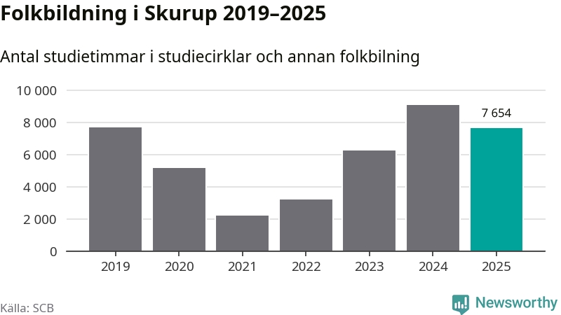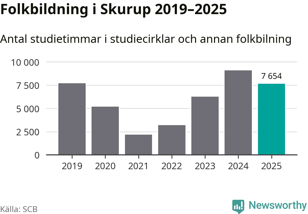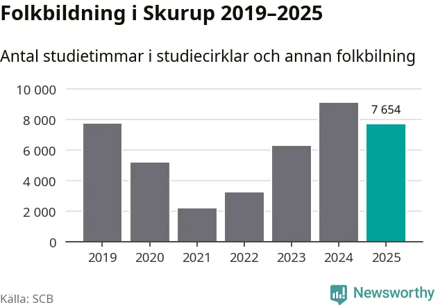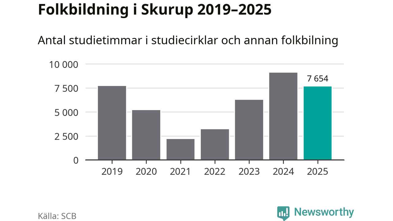Studieförbunden drabbades hårt av pandemin. Även i Skurup noterades det lägsta antalet studietimmar under 2021, som då var 72 procent färre än 2019. År 2024 var antalet studietimmar åter högre – till och med högre än innan pandemin.