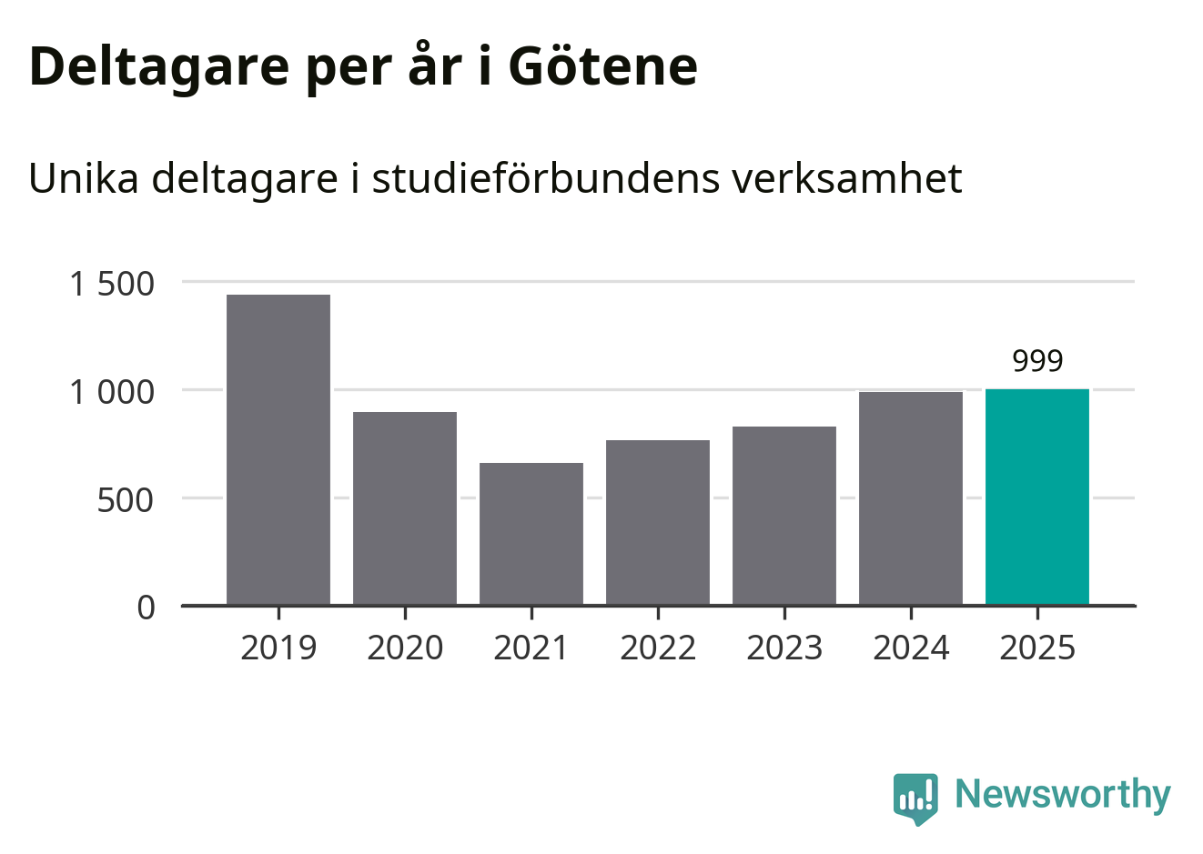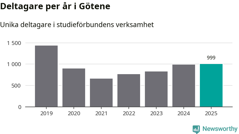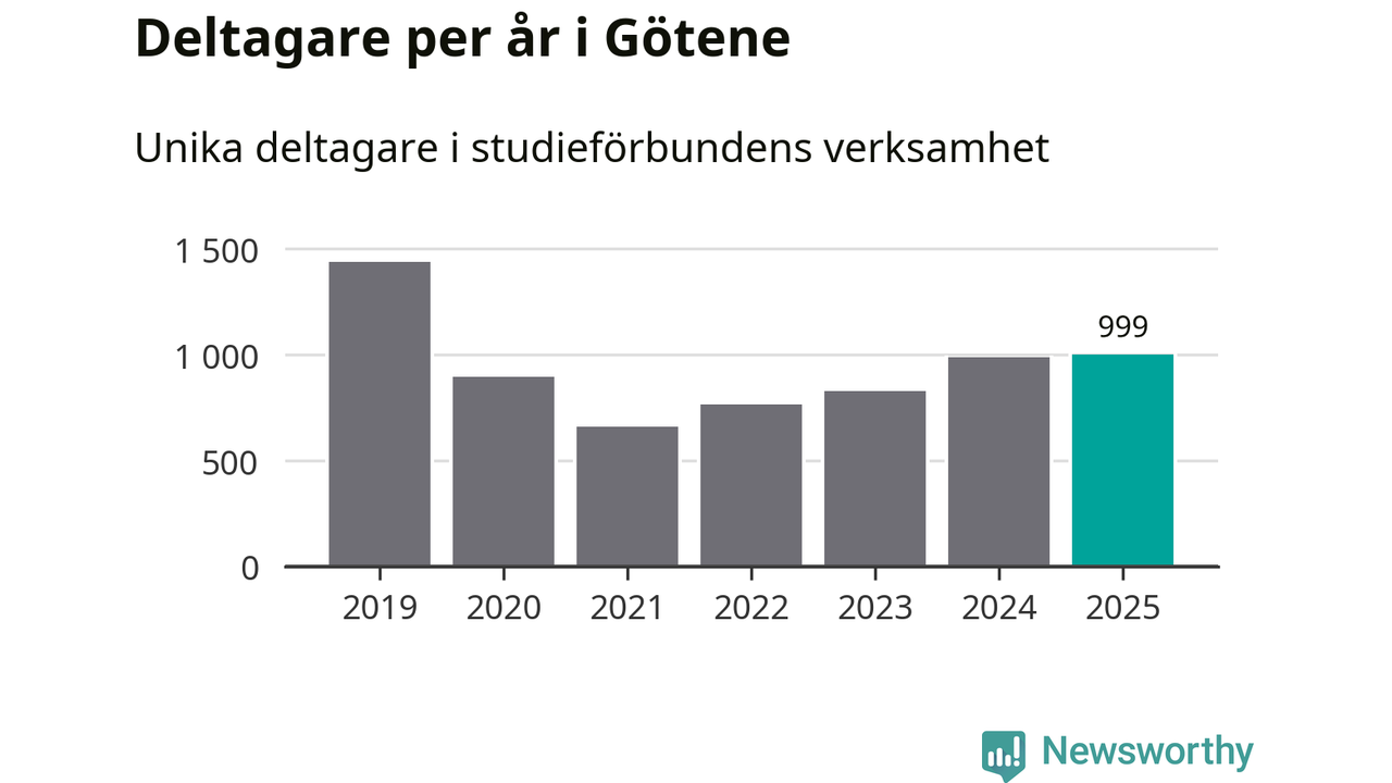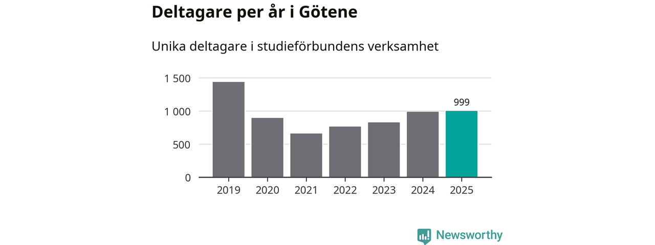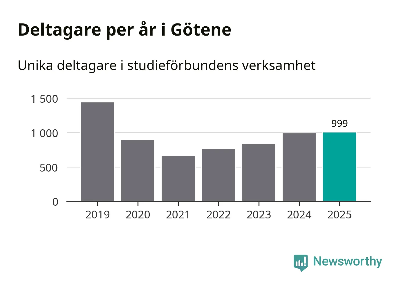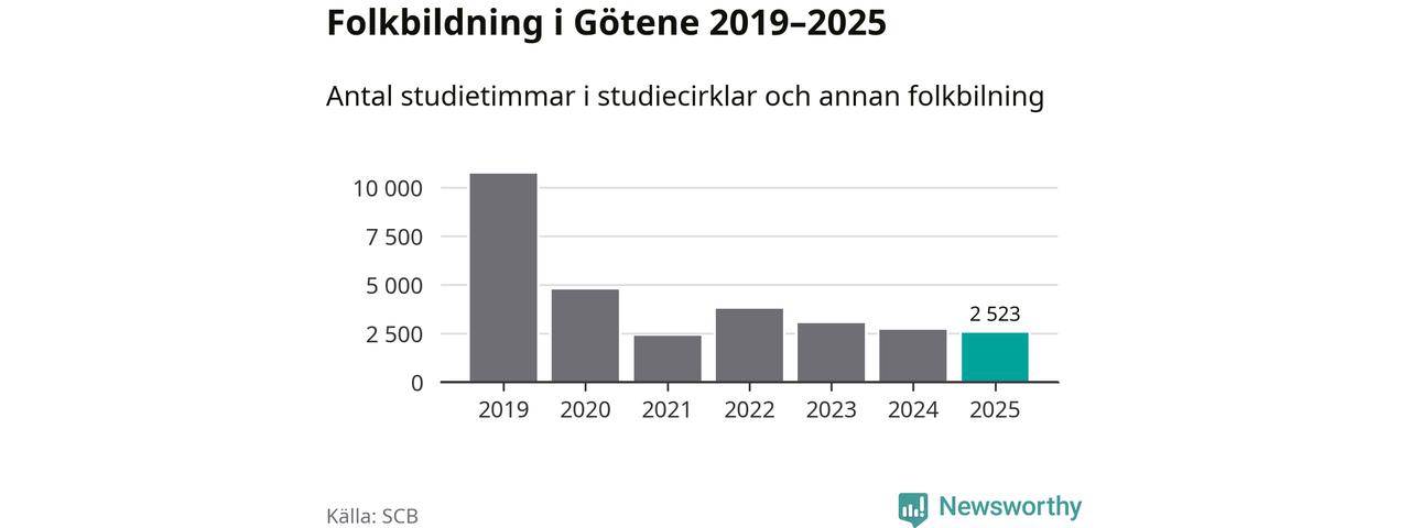 Omkring 1 000 Götene­bor deltog i någon form av folkbildning under 2025, vilket är ungefär lika många som året innan. Det innebär att åtta procent av befolkningen i kommunen deltog i studieförbundens verksamhet under 2025, vilket är ungefär som rikssnittet.