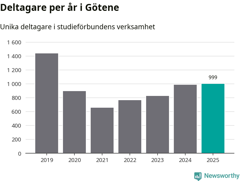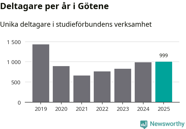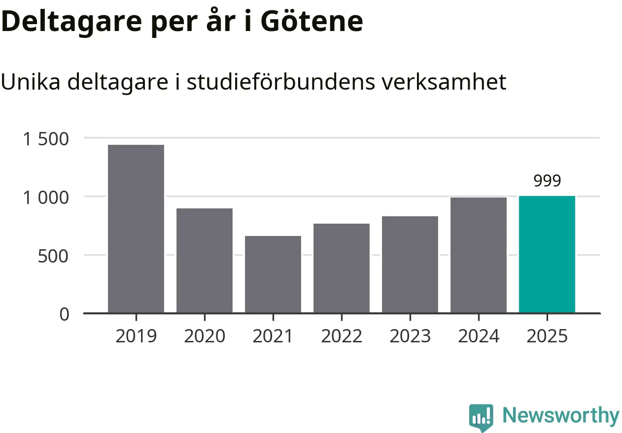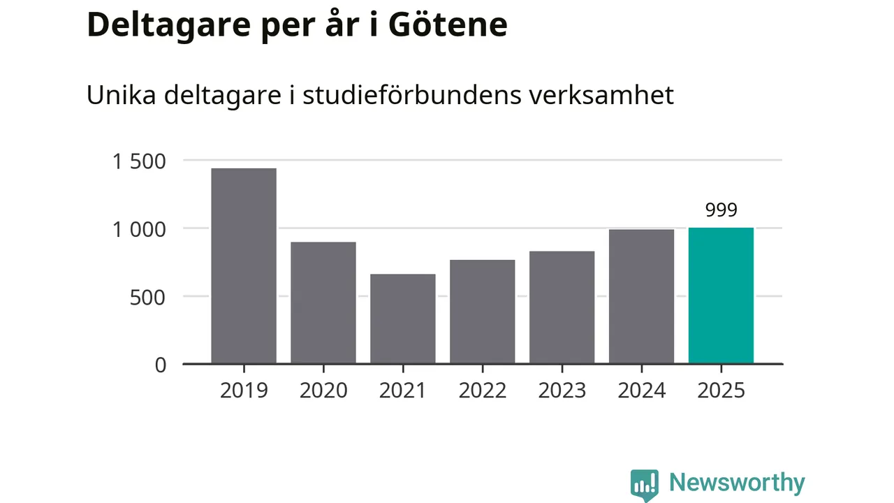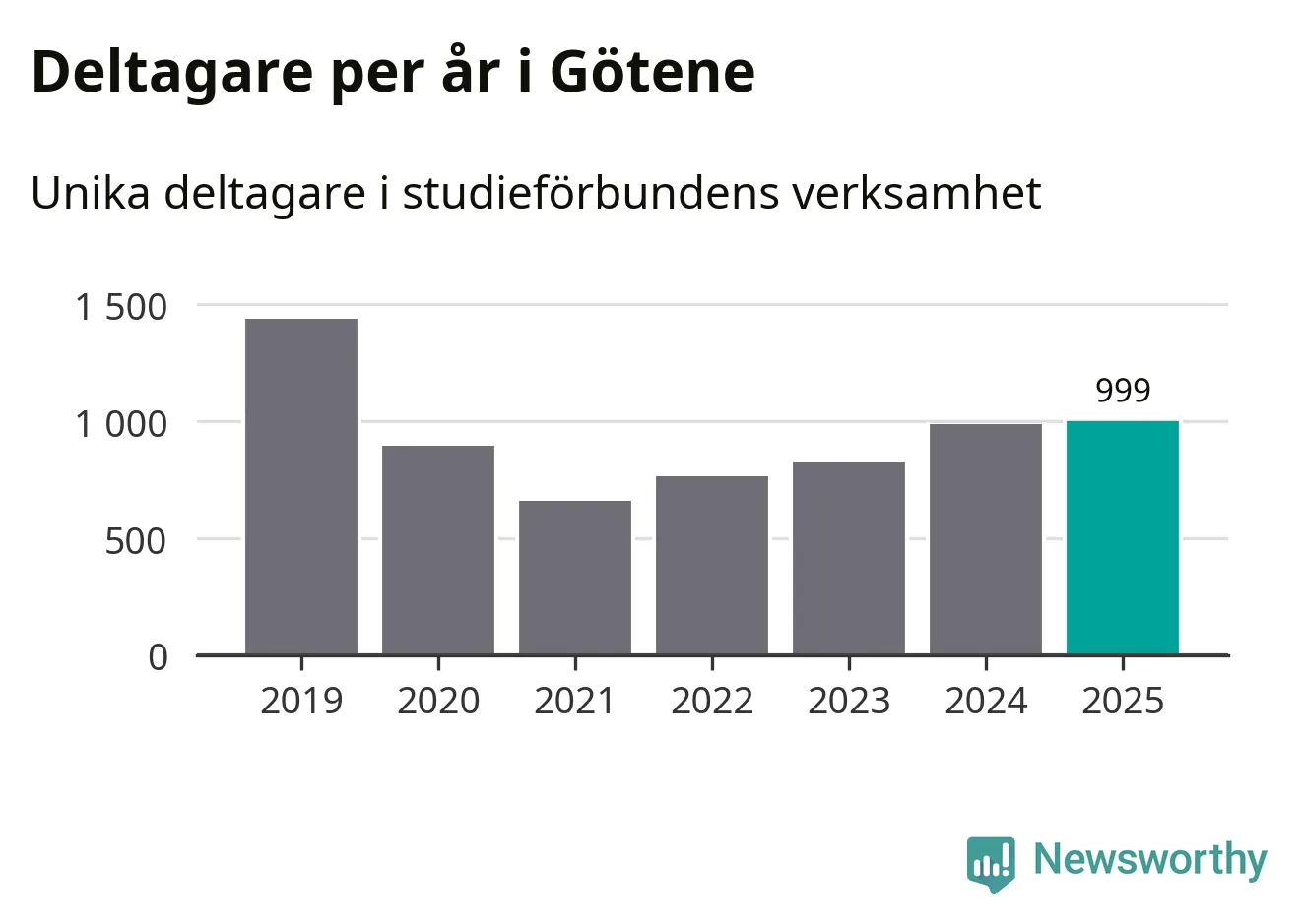 Omkring 1 000 Götene­bor deltog i någon form av folkbildning under 2025, vilket är ungefär lika många som året innan. Det innebär att åtta procent av befolkningen i kommunen deltog i studieförbundens verksamhet under 2025, vilket är ungefär som rikssnittet.