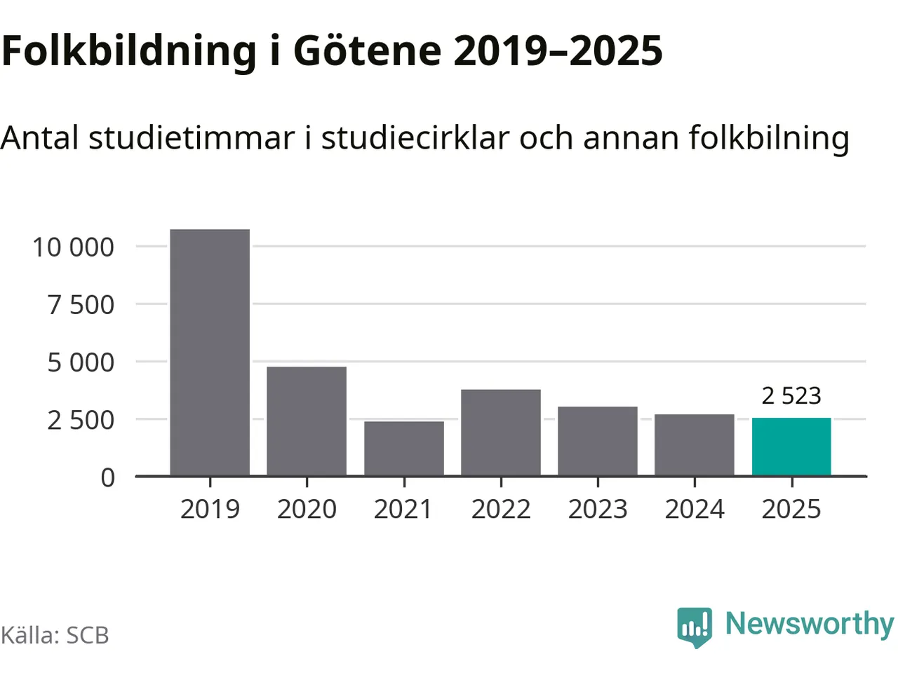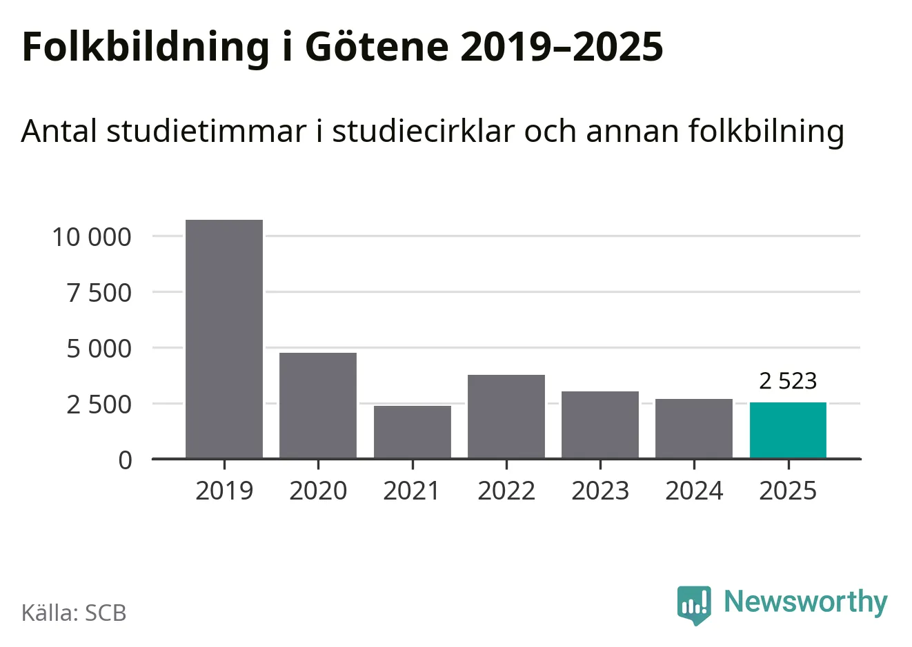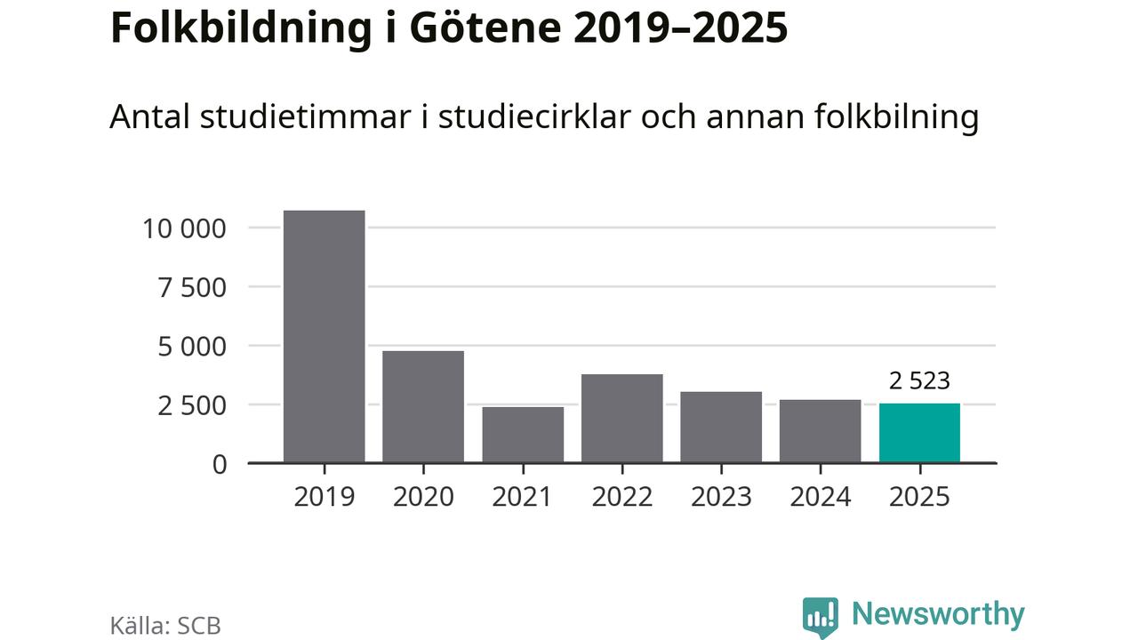 Studieförbunden drabbades hårt av pandemin. Även i Götene noterades det lägsta antalet studietimmar under 2021, som då var 78 procent färre än 2019. År 2024 var antalet studietimmar åter högre men de var fortfarande långt från förpandeminivåerna.