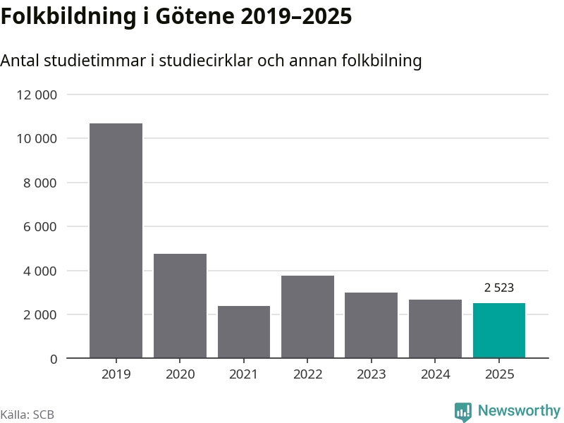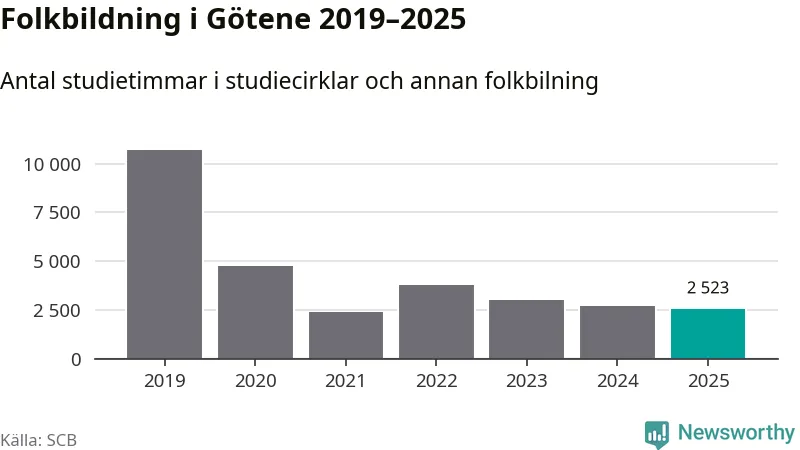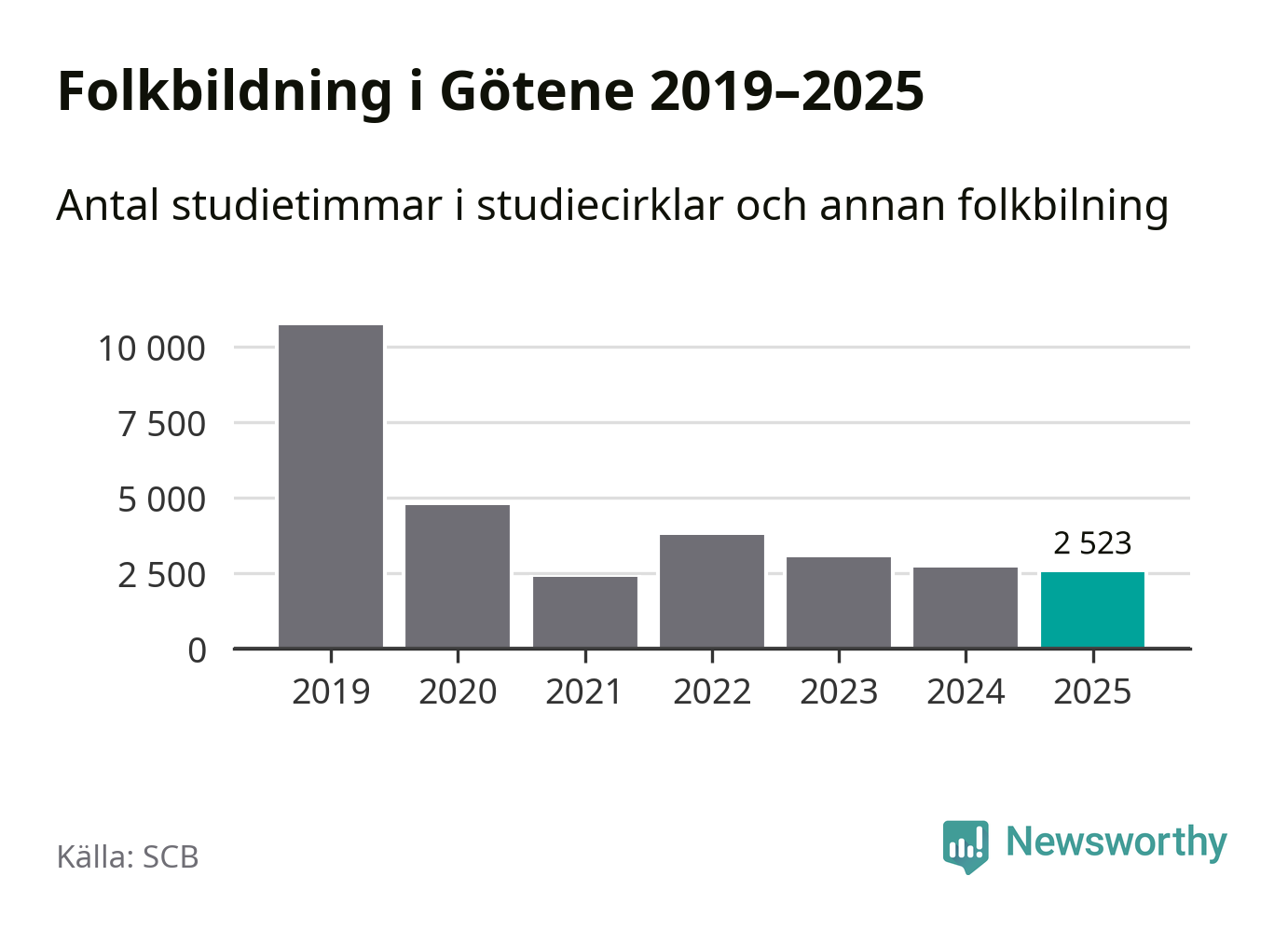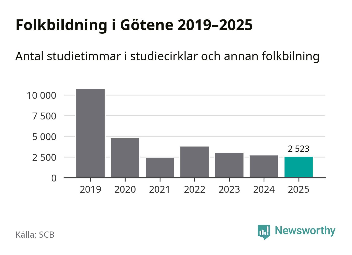 Studieförbunden drabbades hårt av pandemin. Även i Götene noterades det lägsta antalet studietimmar under 2021, som då var 78 procent färre än 2019. År 2024 var antalet studietimmar åter högre men de var fortfarande långt från förpandeminivåerna.