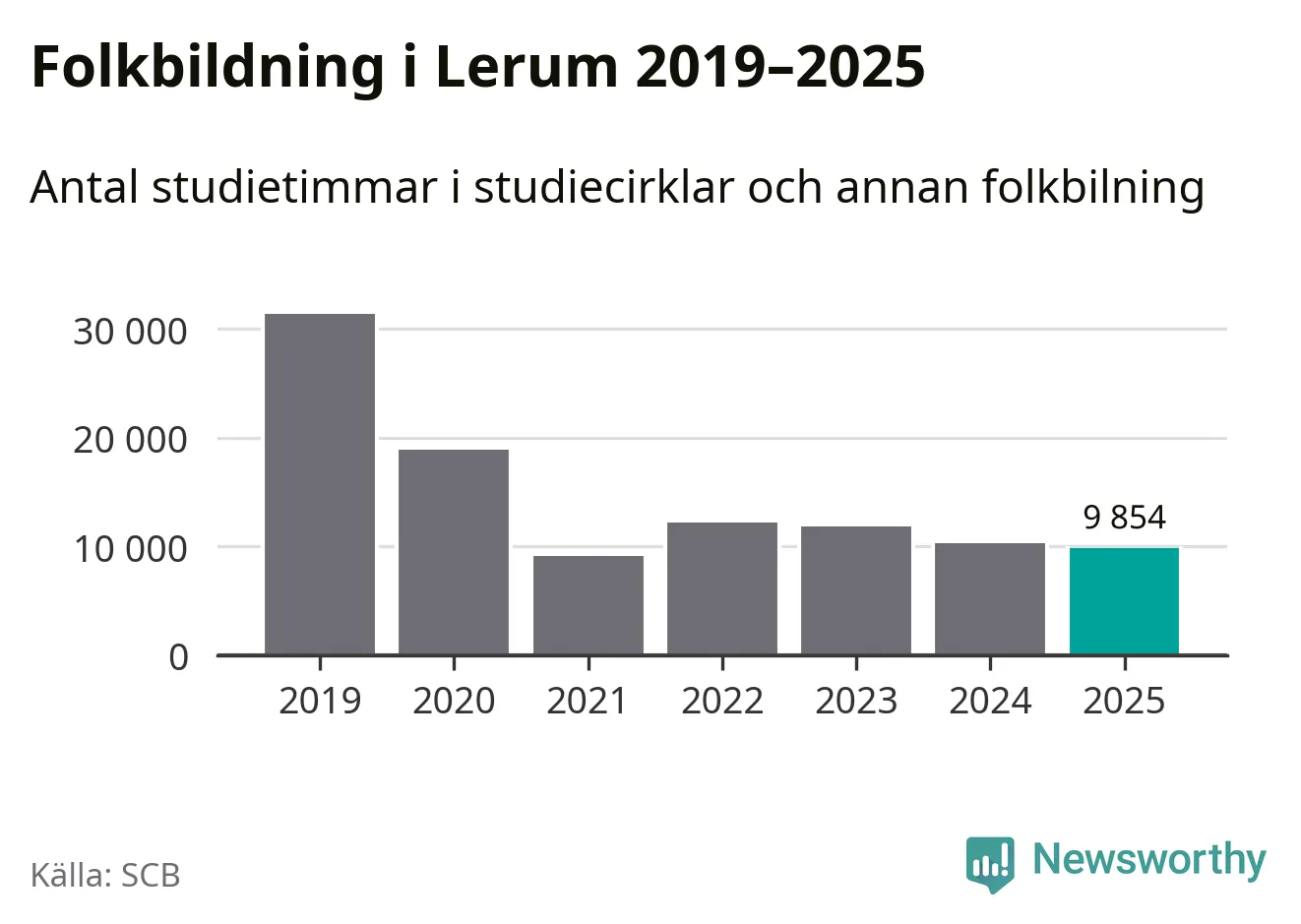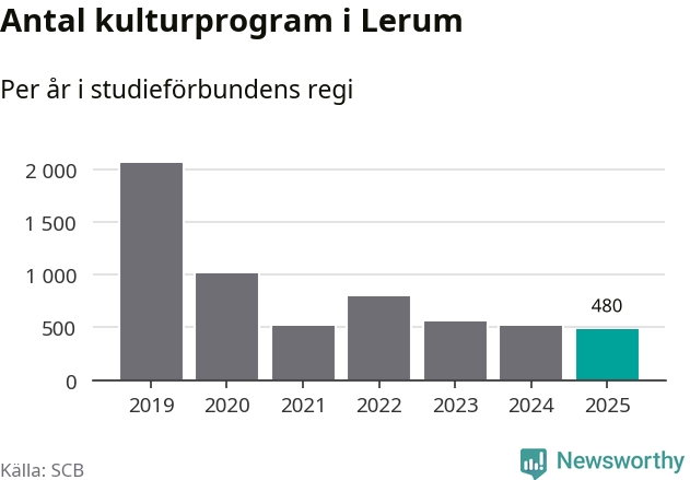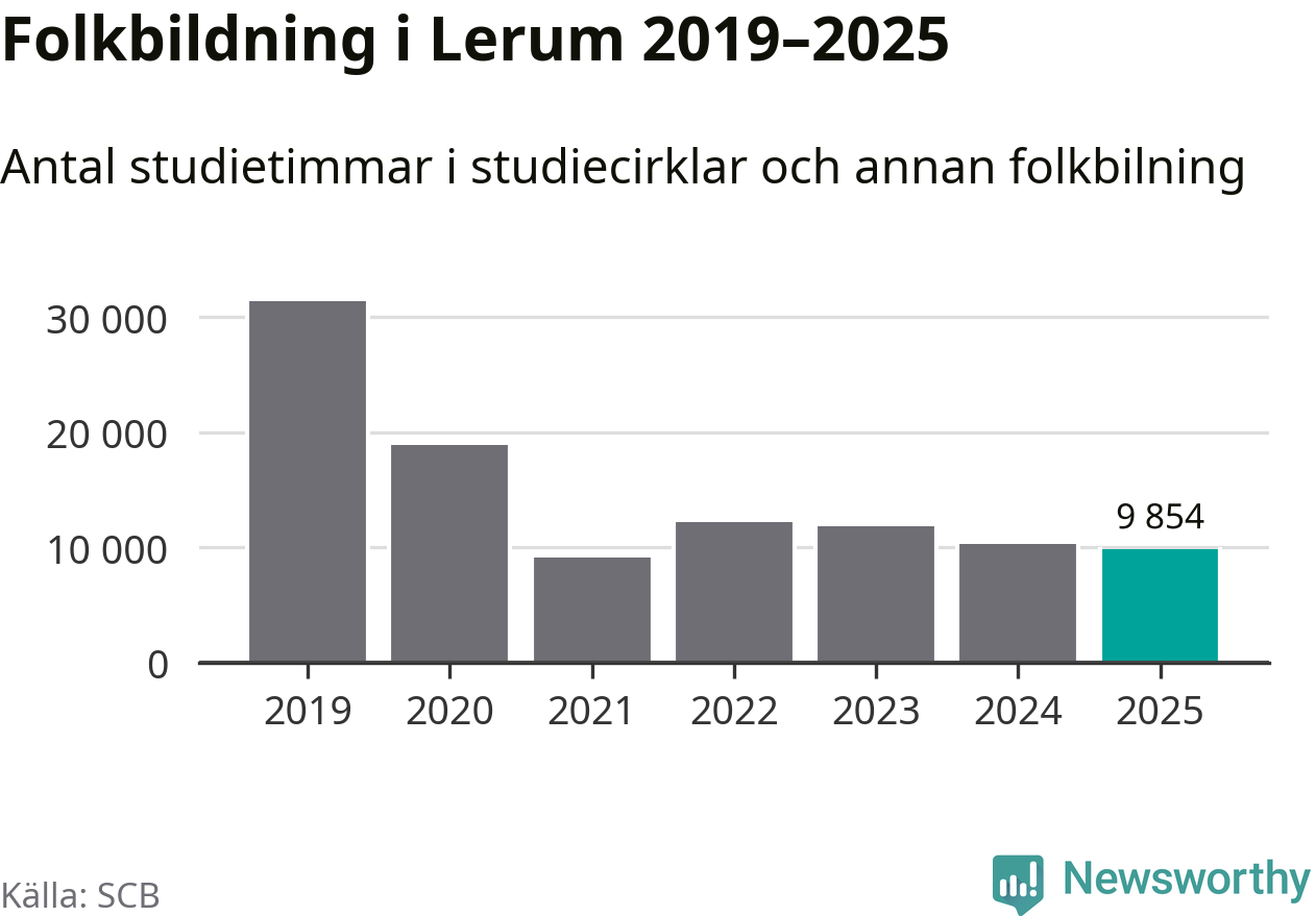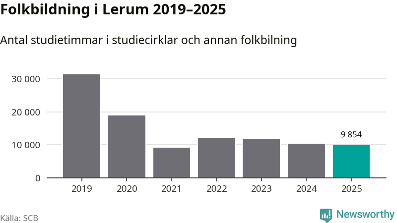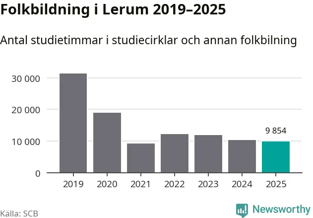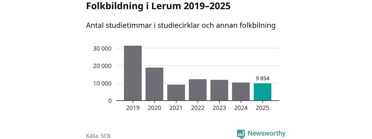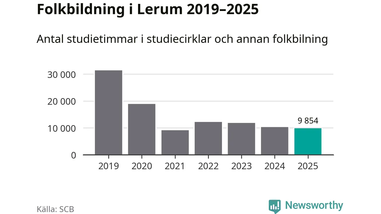 Studieförbunden drabbades hårt av pandemin. Även i Lerum noterades det lägsta antalet studietimmar under 2021, som då var 71 procent färre än 2019. År 2024 var antalet studietimmar åter högre men de var fortfarande långt från förpandeminivåerna.