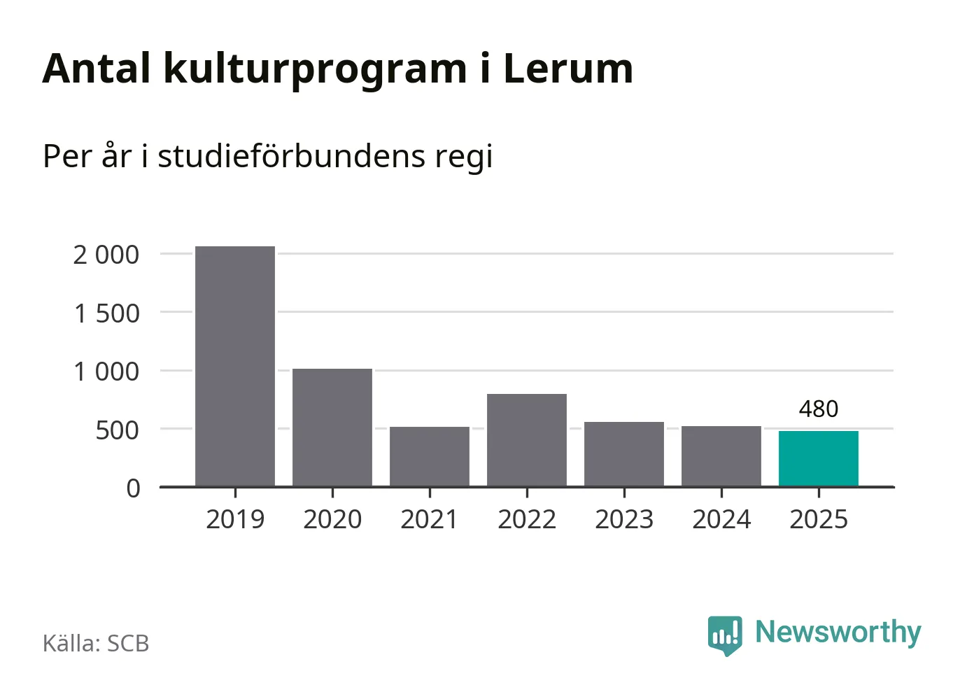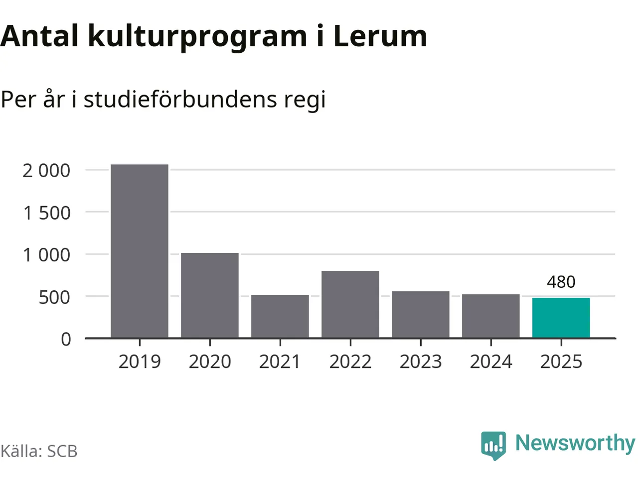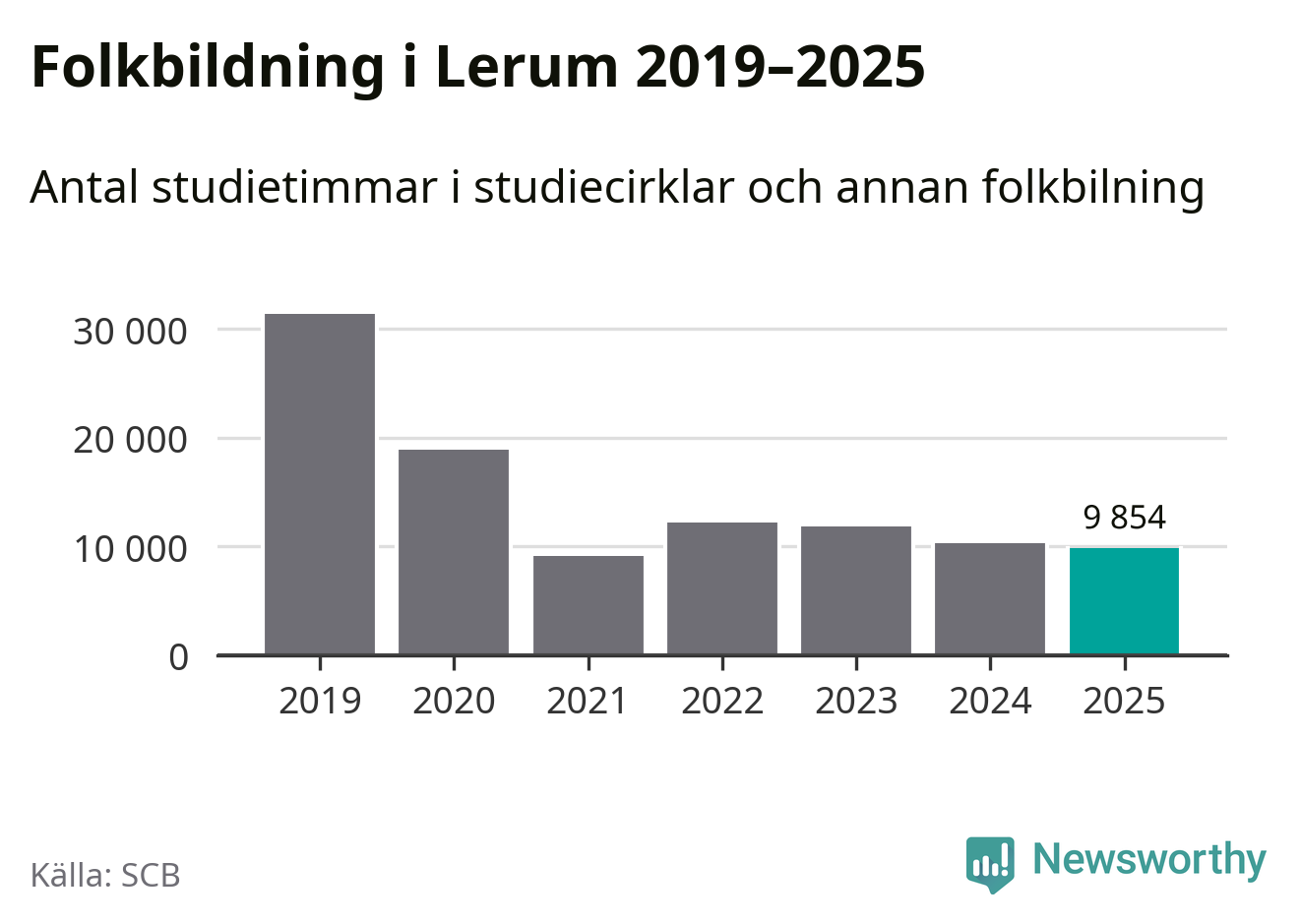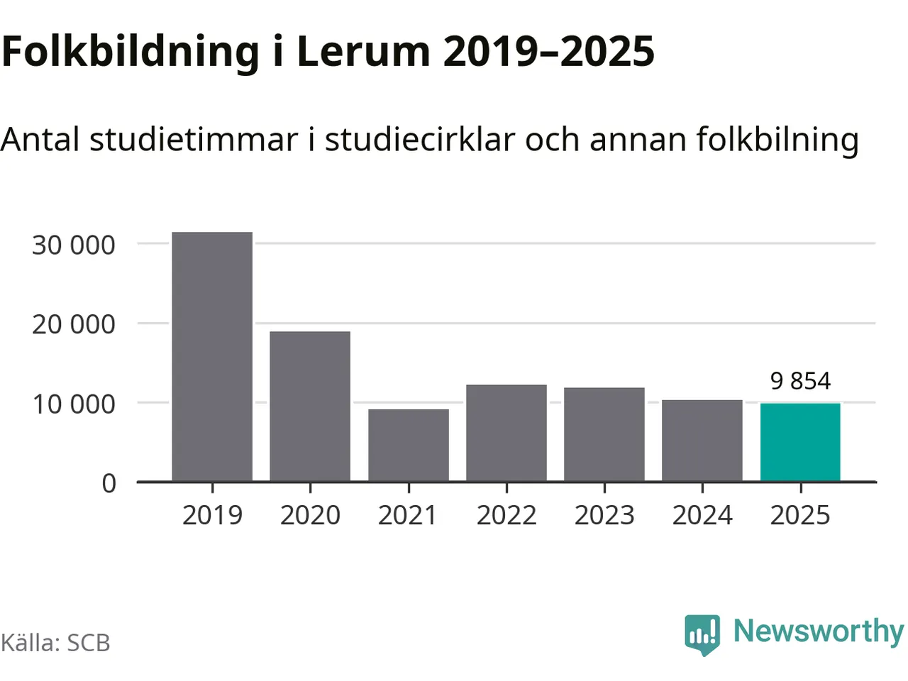Studieförbunden drabbades hårt av pandemin. Även i Lerum noterades det lägsta antalet studietimmar under 2021, som då var 71 procent färre än 2019. År 2024 var antalet studietimmar åter högre men de var fortfarande långt från förpandeminivåerna.