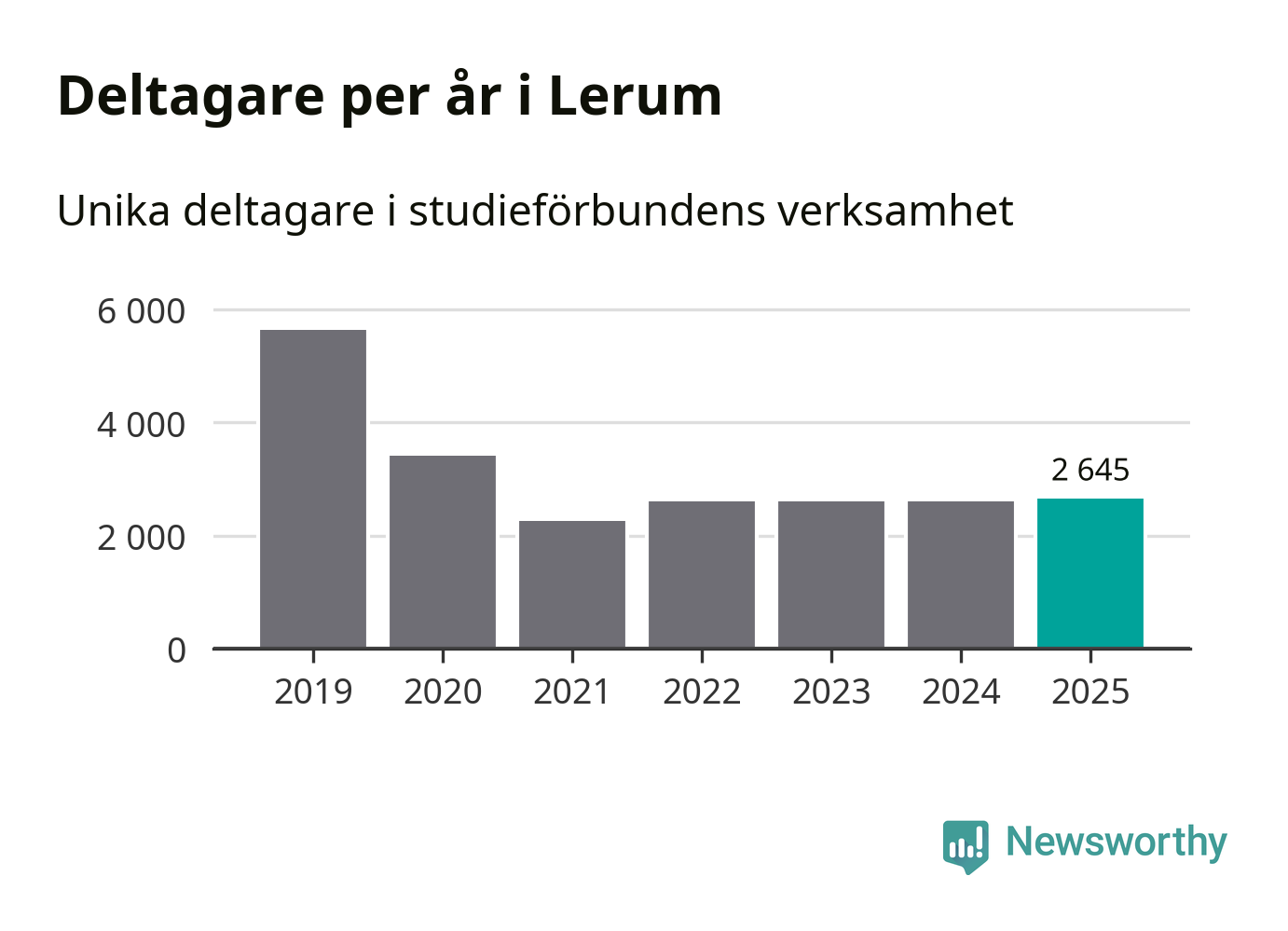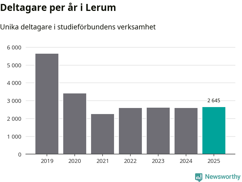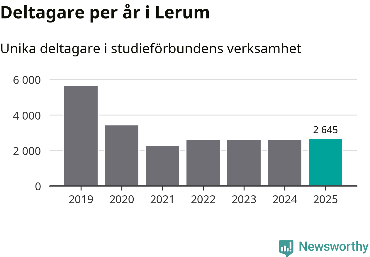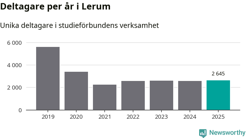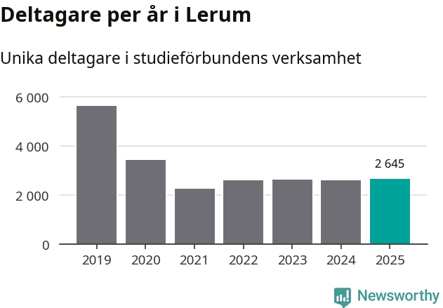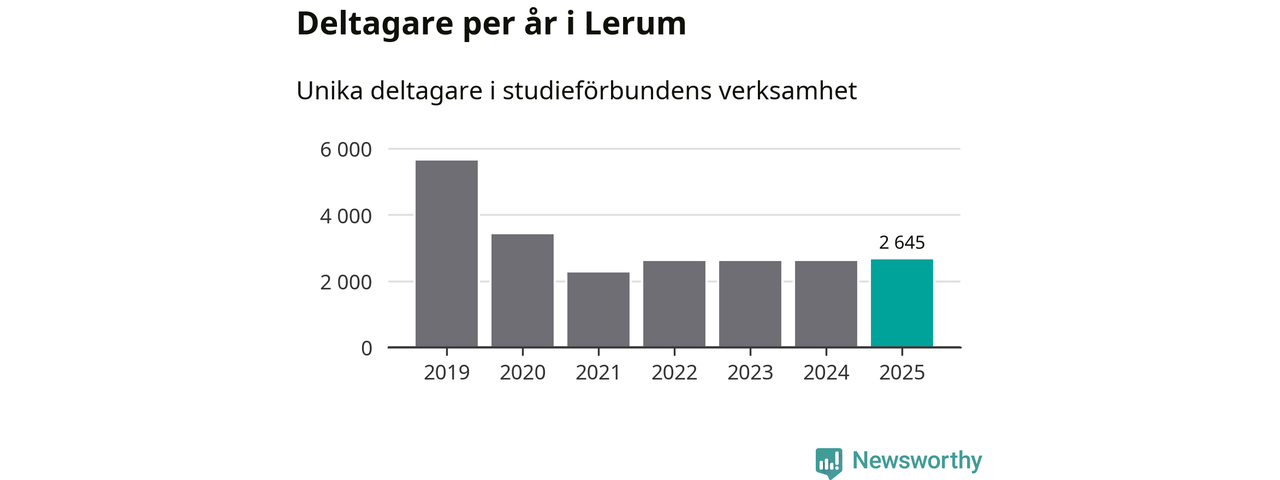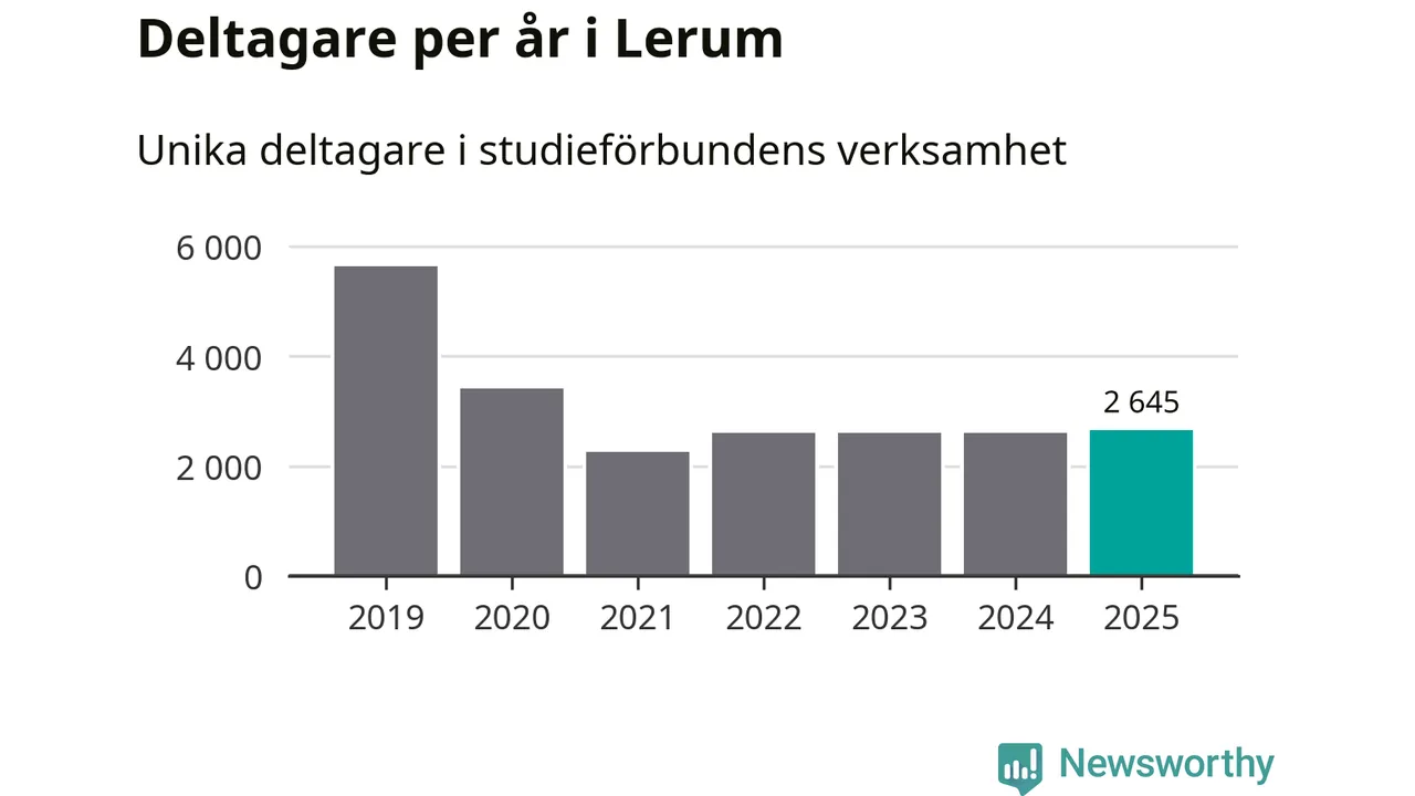 Drygt 2 600 Lerumsbor deltog i någon form av folkbildning under 2025, vilket är ungefär lika många som året innan. Det innebär att sex procent av befolkningen i kommunen deltog i studieförbundens verksamhet under 2025, vilket är ungefär som rikssnittet.