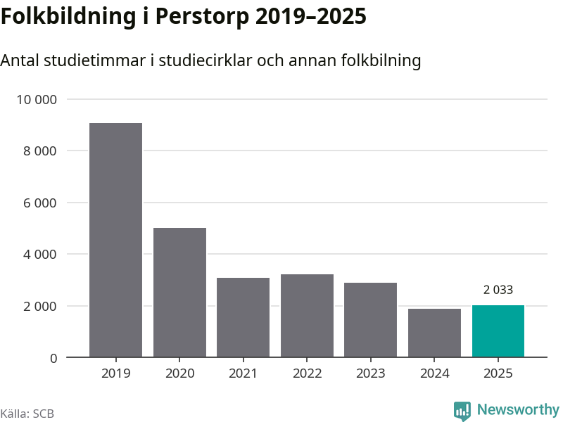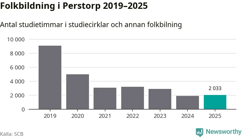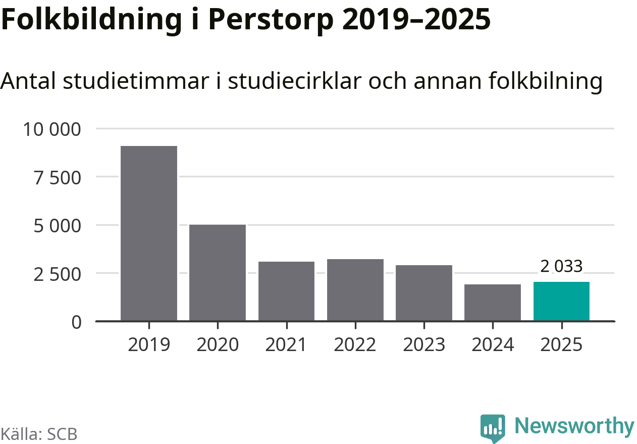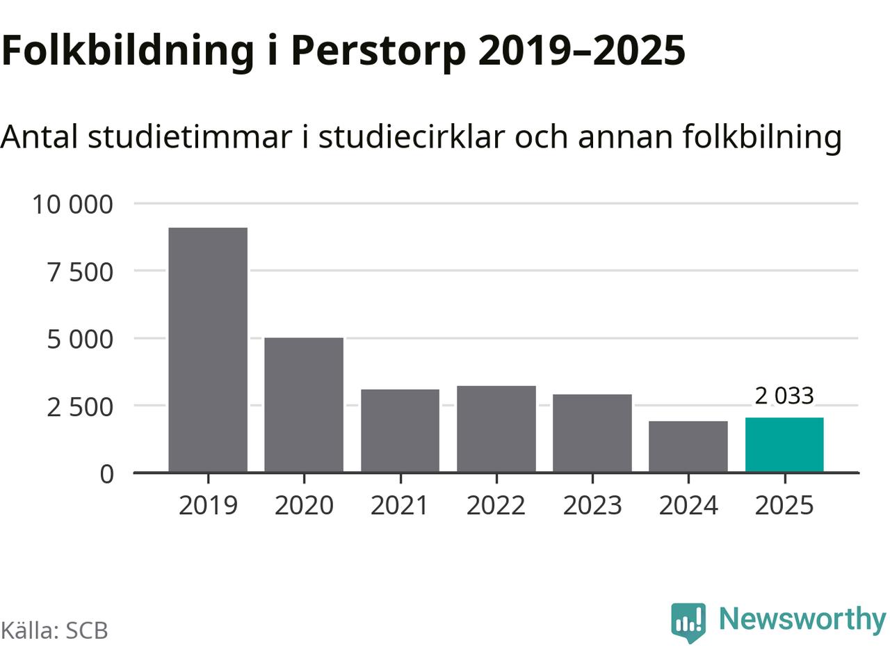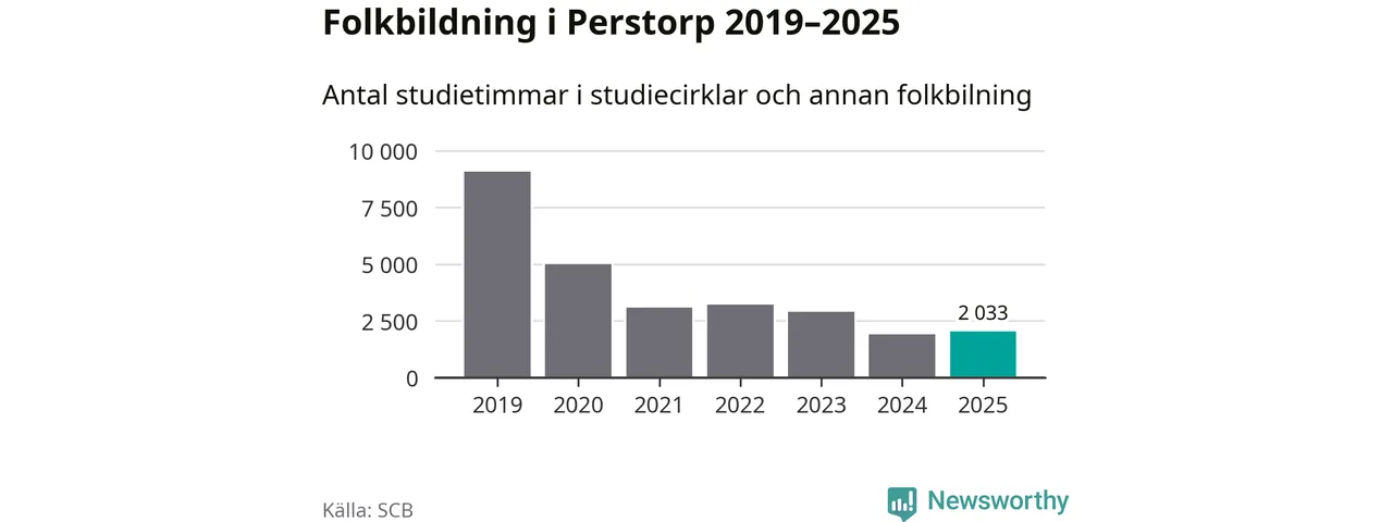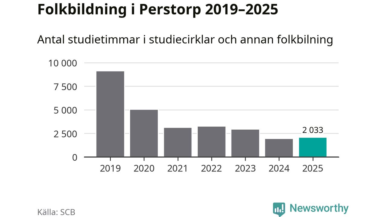 Studieförbunden drabbades hårt av pandemin. Även i Perstorp noterades det lägsta antalet studietimmar under 2021, som då var 66 procent färre än 2019 – vilket fortfarande är fler än 2025.