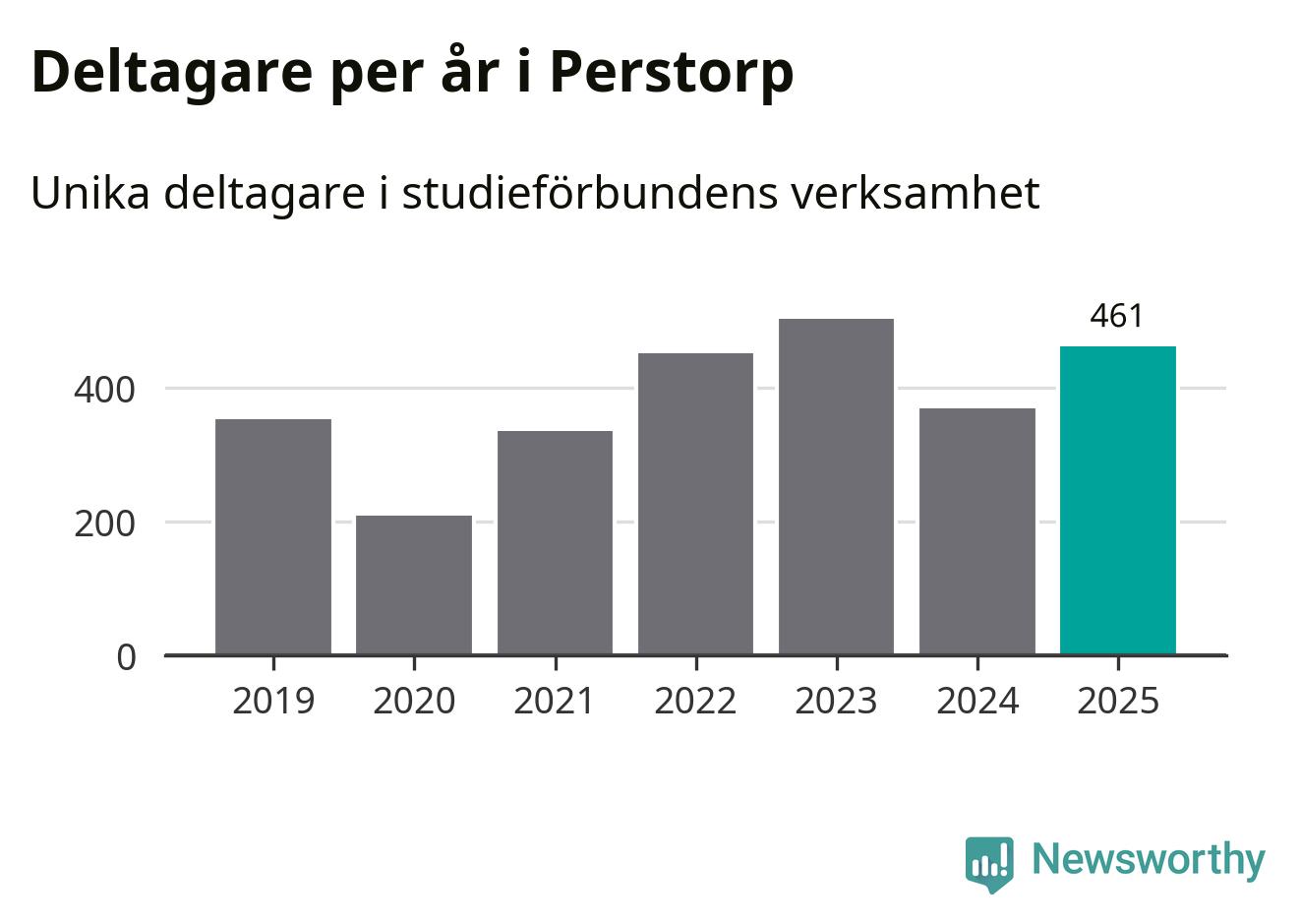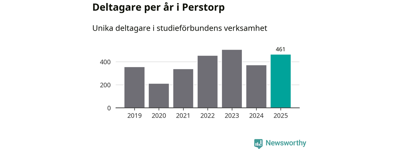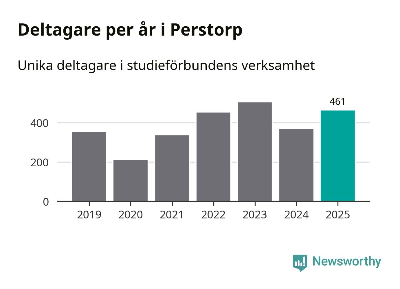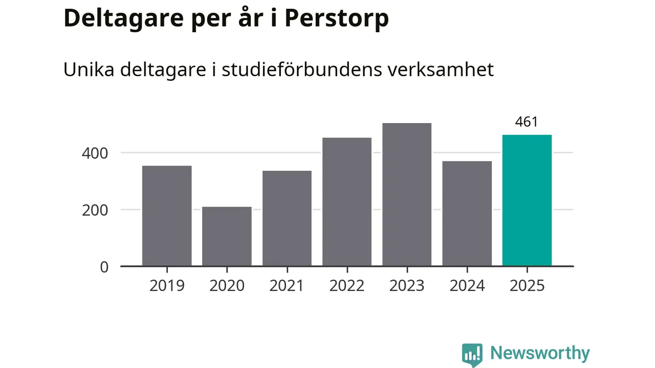 Även antalet unika deltagare ökade i Perstorp i fjol: från 368 till 461 personer. Det innebär att sex procent av befolkningen i kommunen deltog i studieförbundens verksamhet under 2025, vilket är ungefär som rikssnittet.