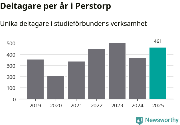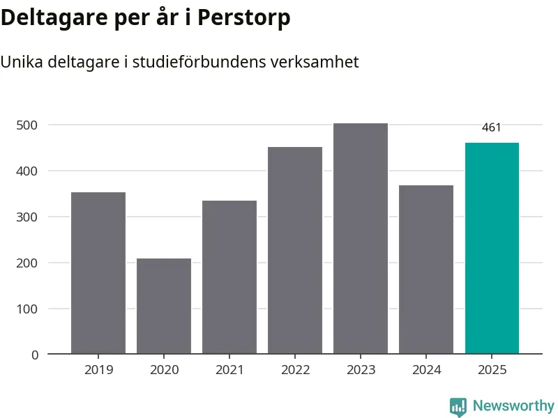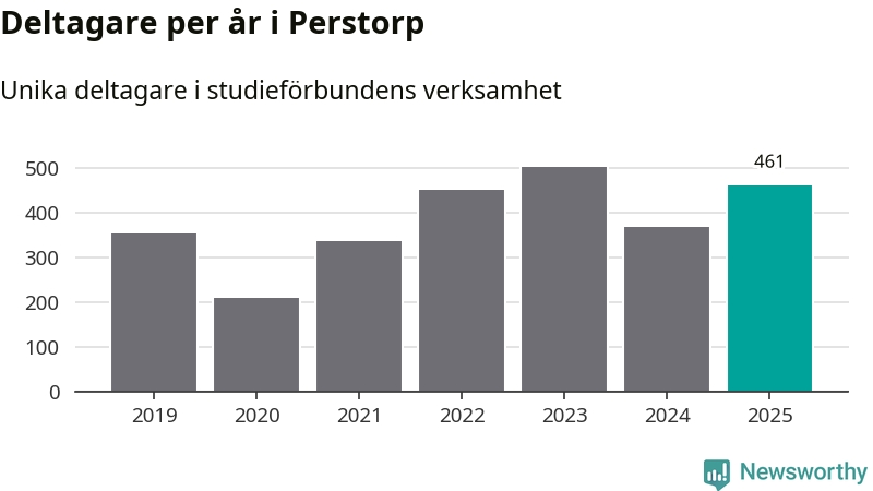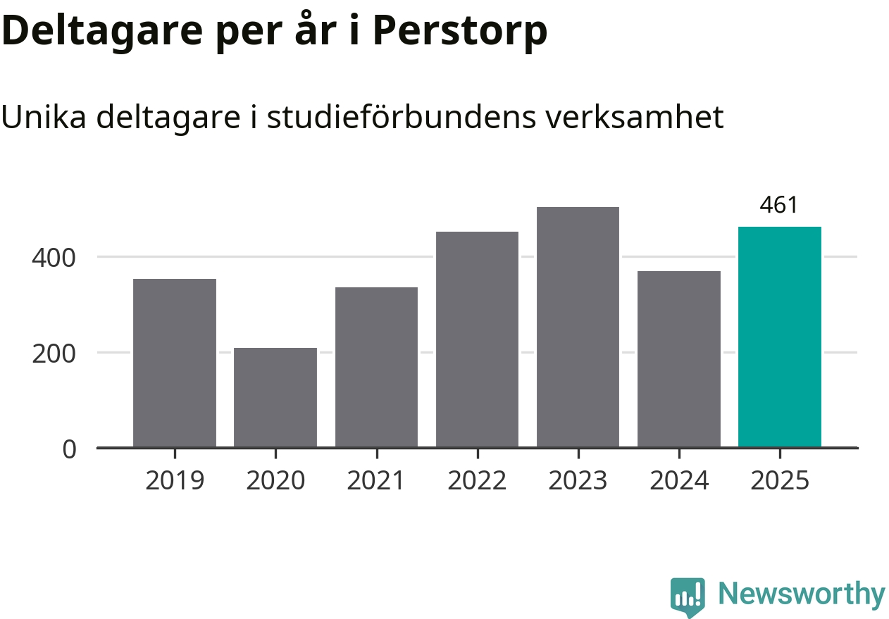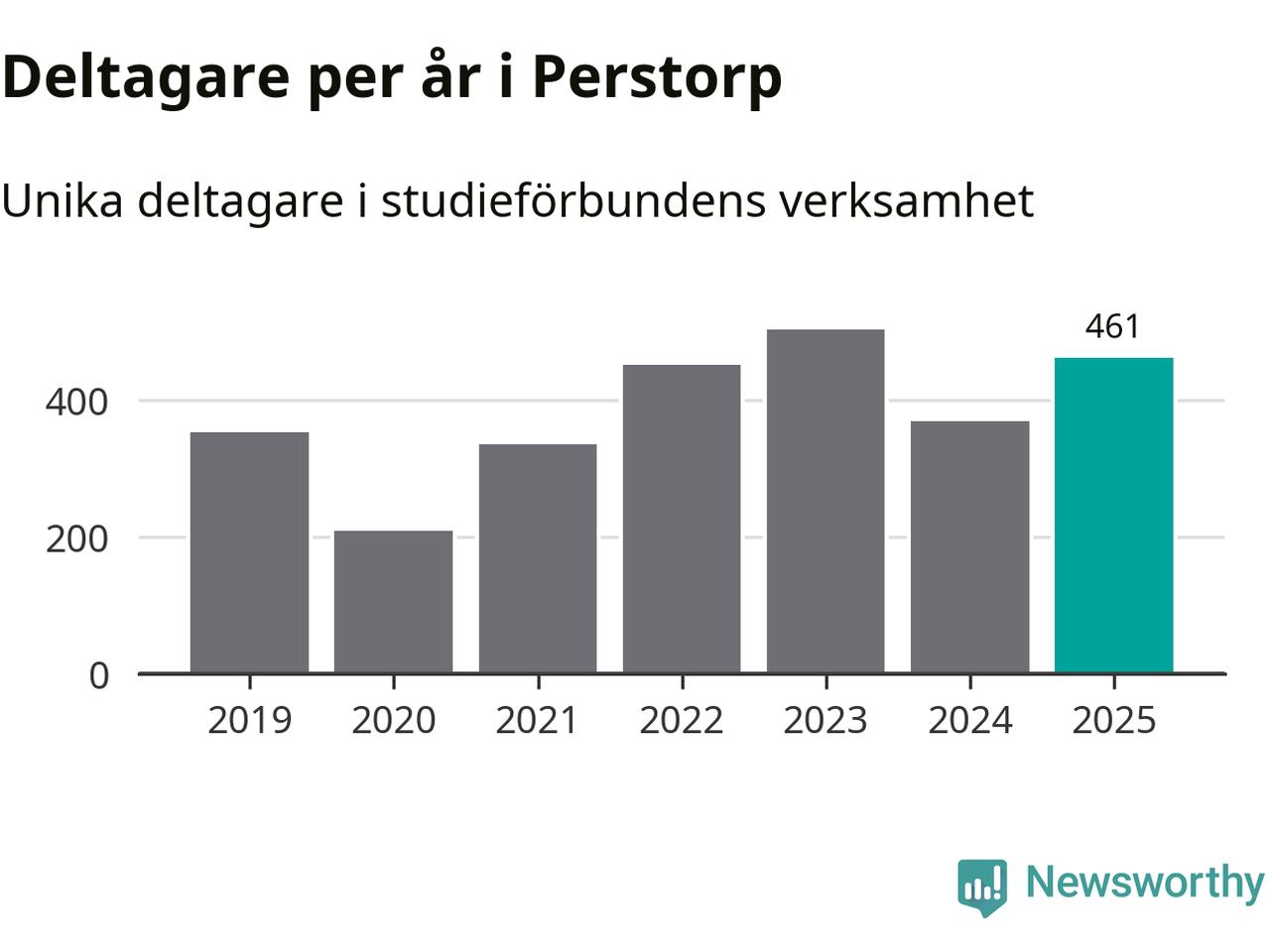 Även antalet unika deltagare ökade i Perstorp i fjol: från 368 till 461 personer. Det innebär att sex procent av befolkningen i kommunen deltog i studieförbundens verksamhet under 2025, vilket är ungefär som rikssnittet.