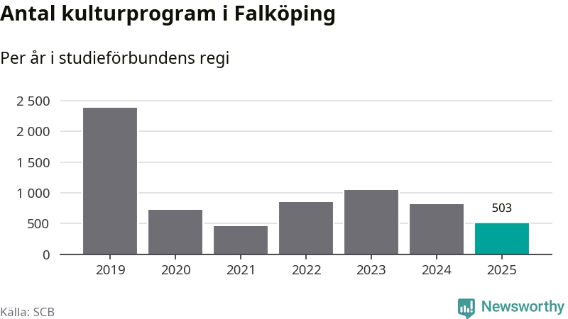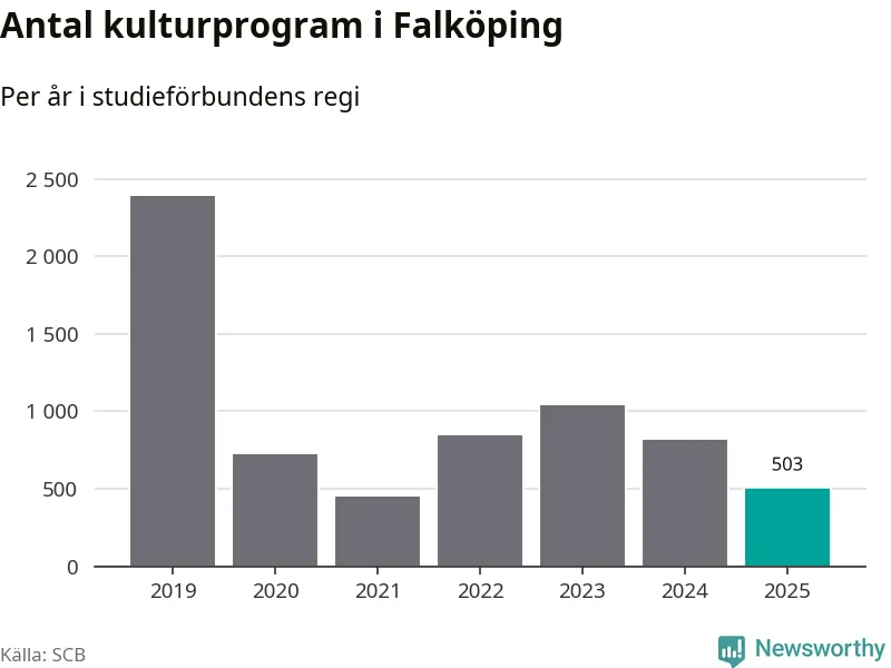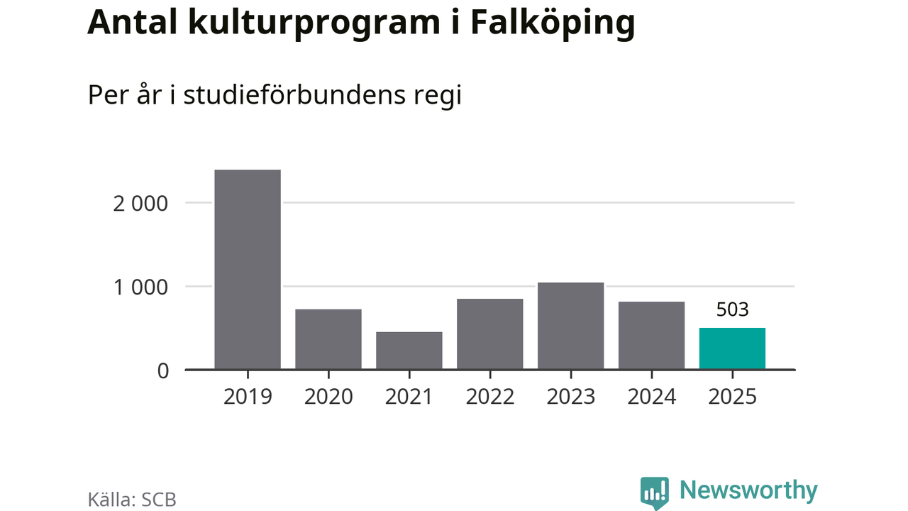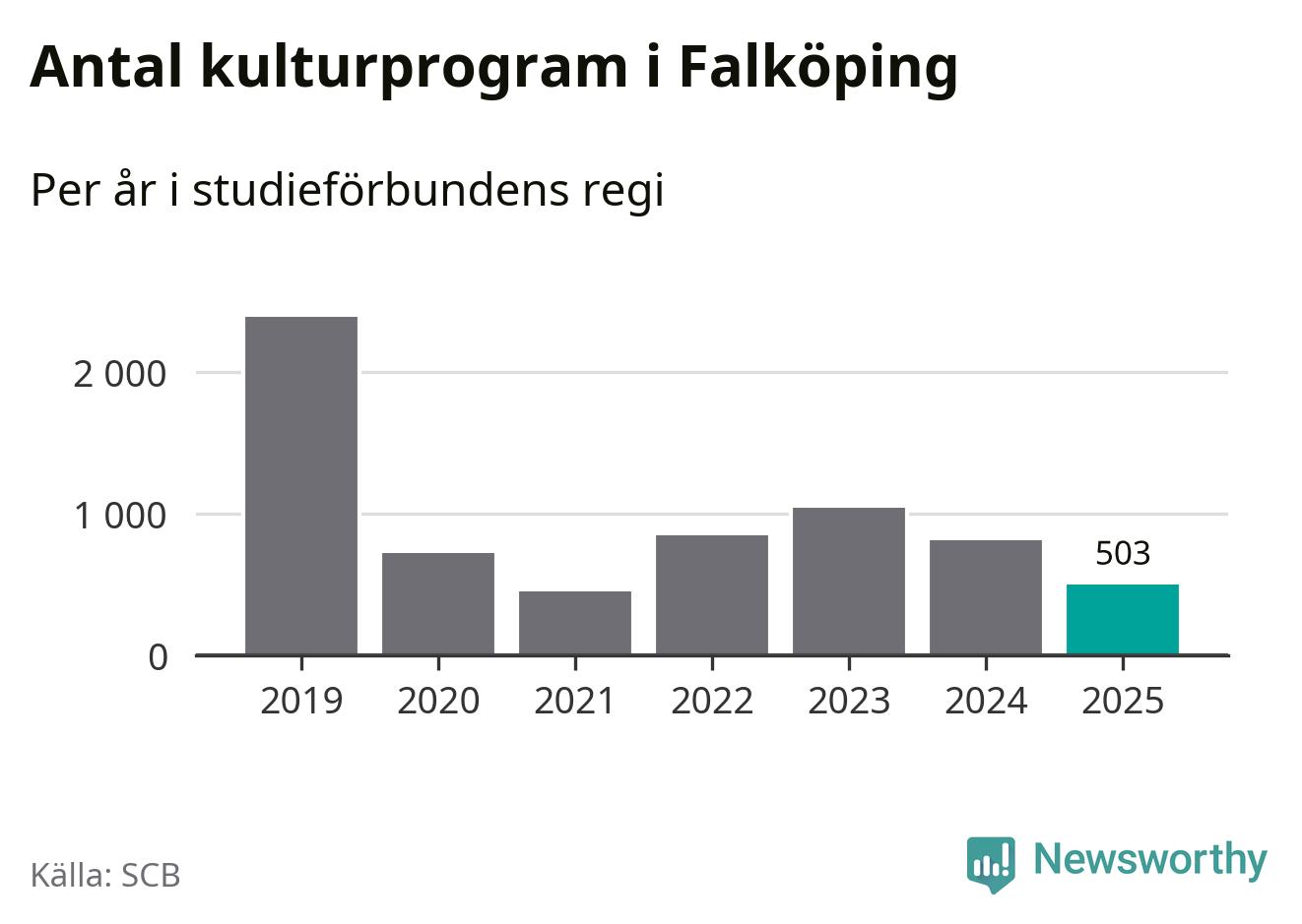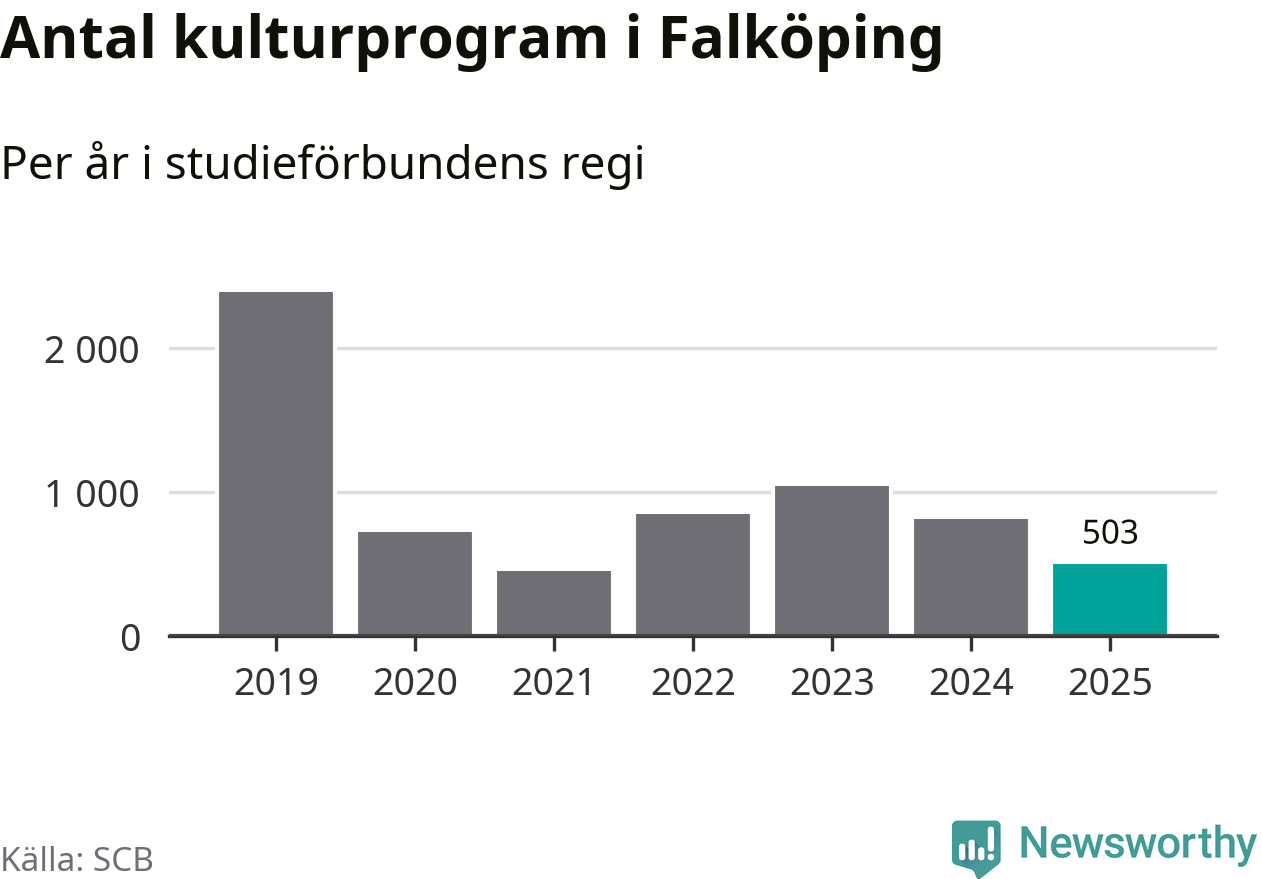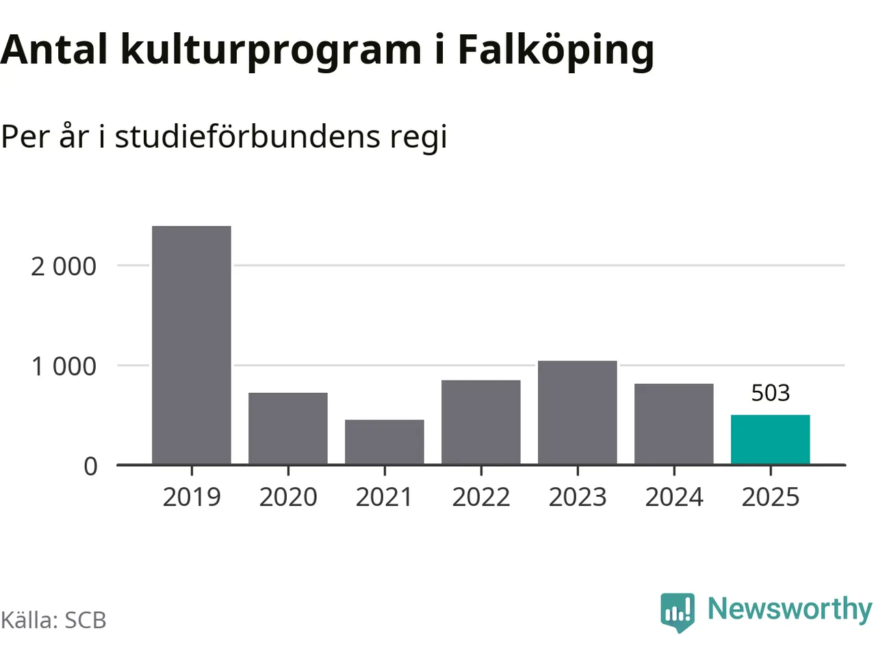 Åtta av de studieförbund som 2025 fick bidrag från Folkbildningsrådet har haft någon form av verksamhet – antingen studiecirkel, annan folkbildning eller kulturprogram – i Falköping under de två senaste åren. Under 2025 ökade fem förbund antalet studietimmar i kommunen jämfört med året innan, medan de tre andra förbunden i kommunen noterade färre timmar.