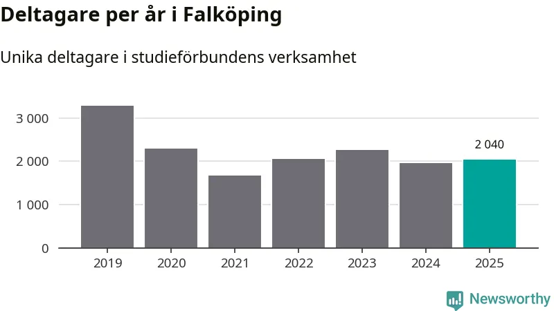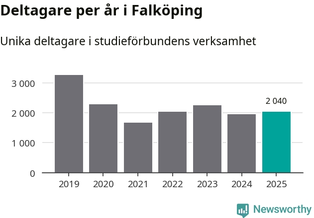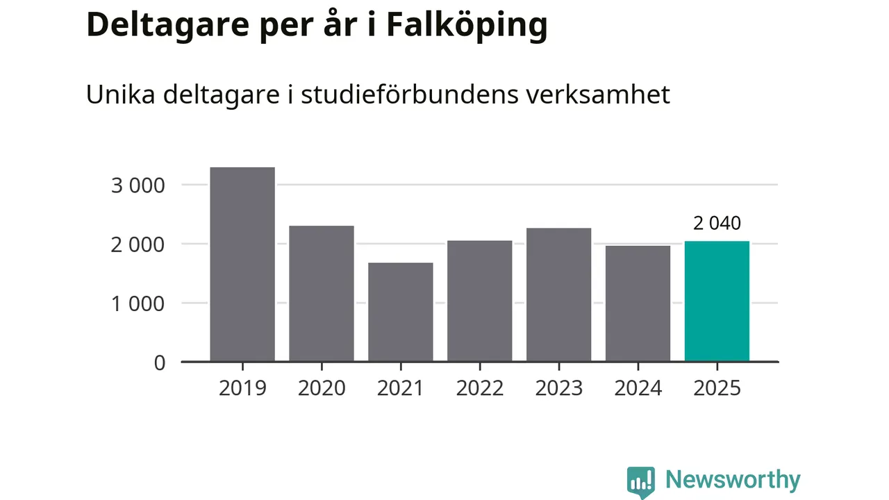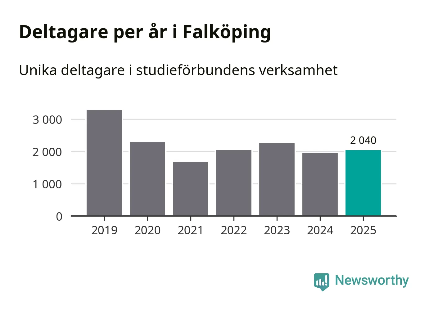 Även antalet unika deltagare ökade i Falköping i fjol: från 1 961 till 2 040 personer. Det innebär att sex procent av befolkningen i kommunen deltog i studieförbundens verksamhet under 2025, vilket är ungefär som rikssnittet.