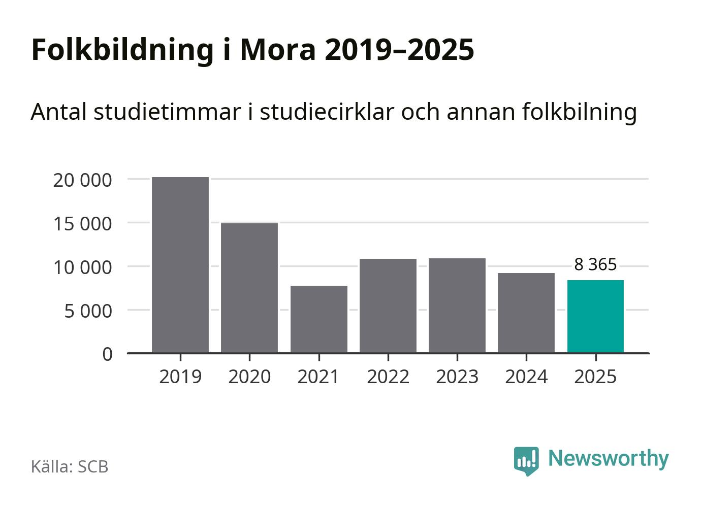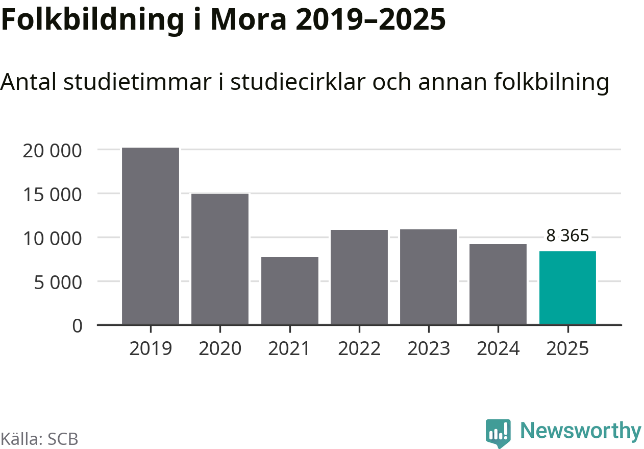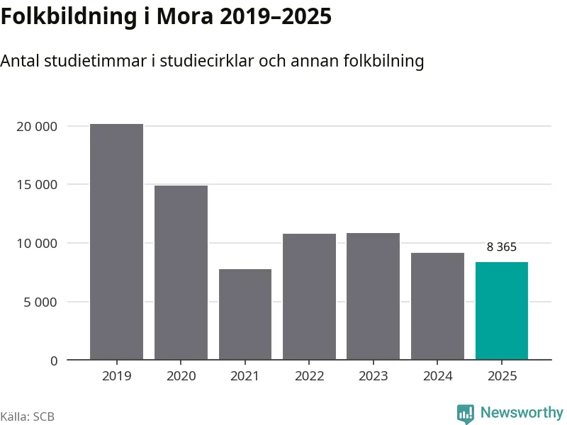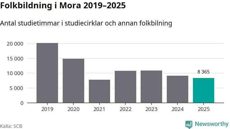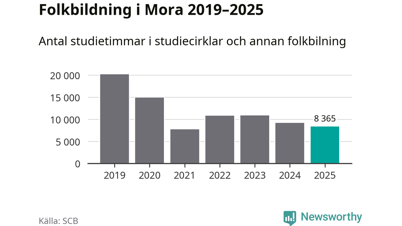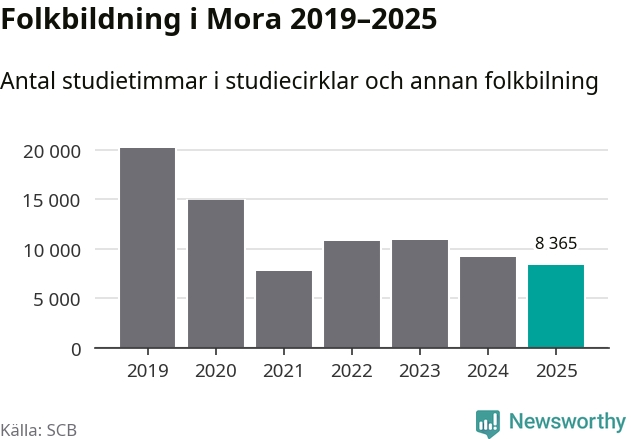 Studieförbunden drabbades hårt av pandemin. Även i Mora noterades det lägsta antalet studietimmar under 2021, som då var 61 procent färre än 2019. År 2024 var antalet studietimmar åter högre men de var fortfarande långt från förpandeminivåerna.