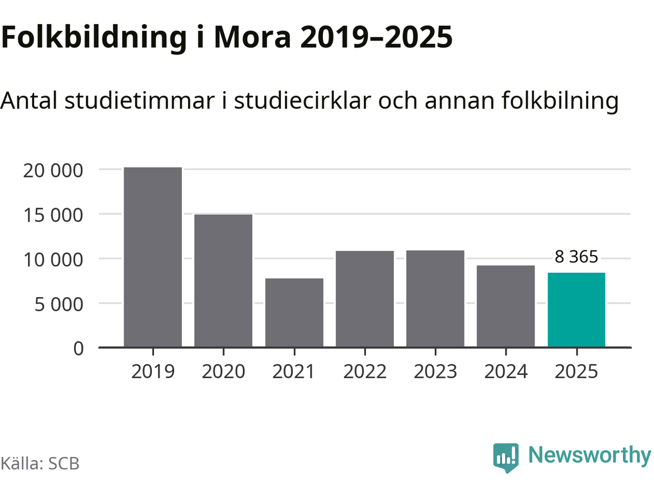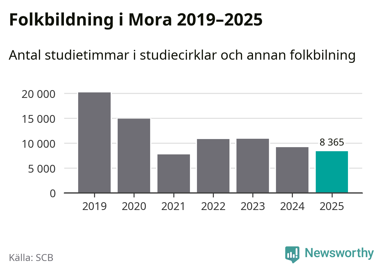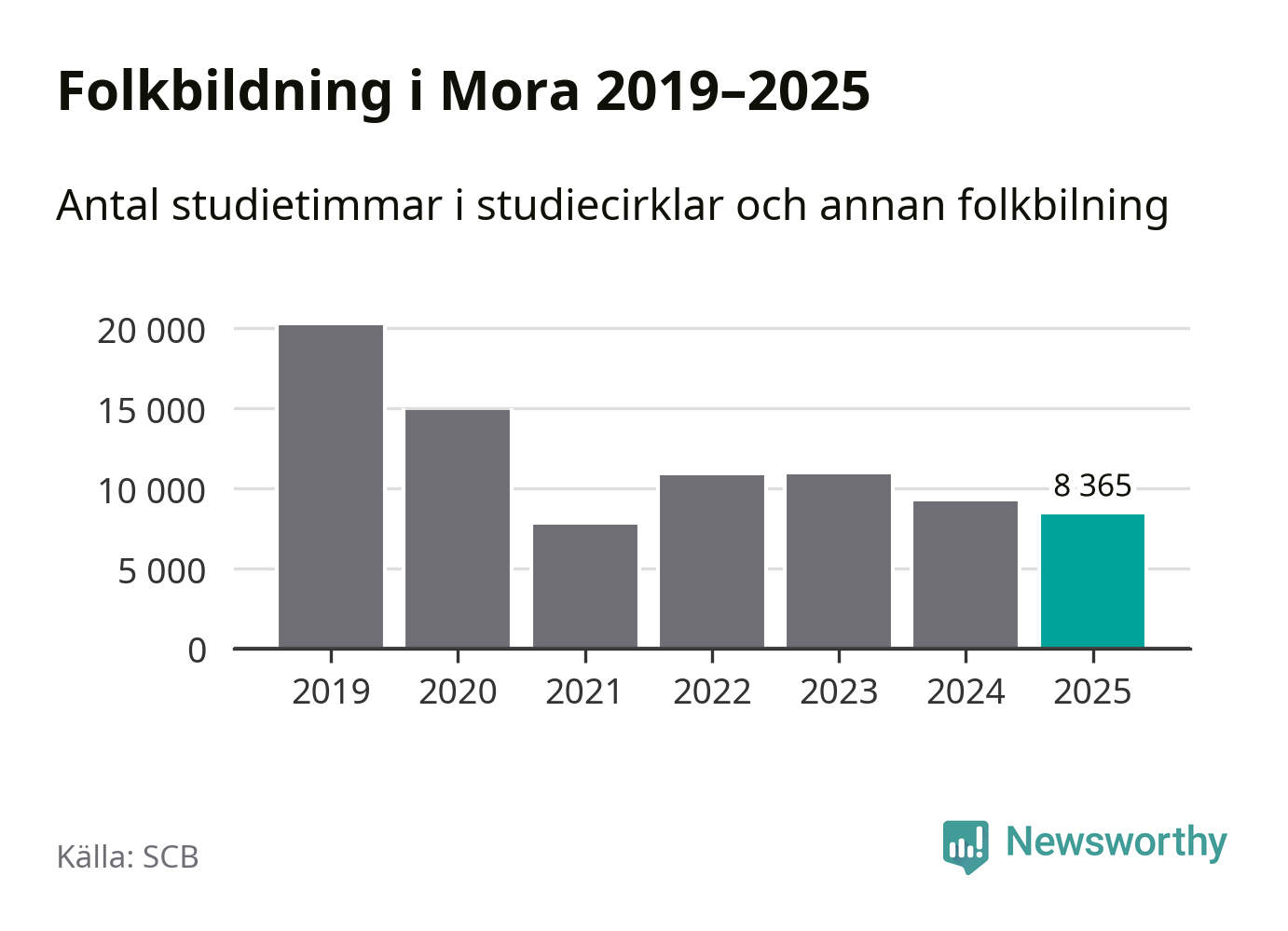Studieförbunden drabbades hårt av pandemin. Även i Mora noterades det lägsta antalet studietimmar under 2021, som då var 61 procent färre än 2019. År 2024 var antalet studietimmar åter högre men de var fortfarande långt från förpandeminivåerna.