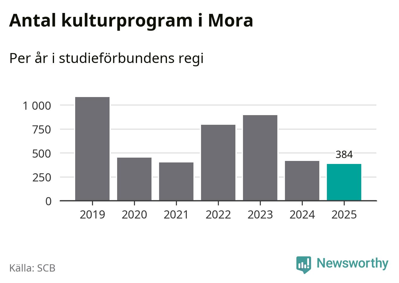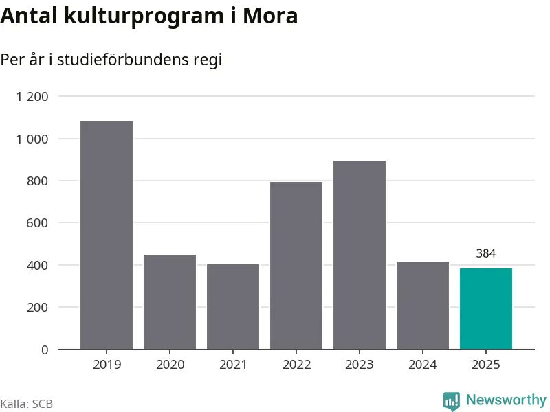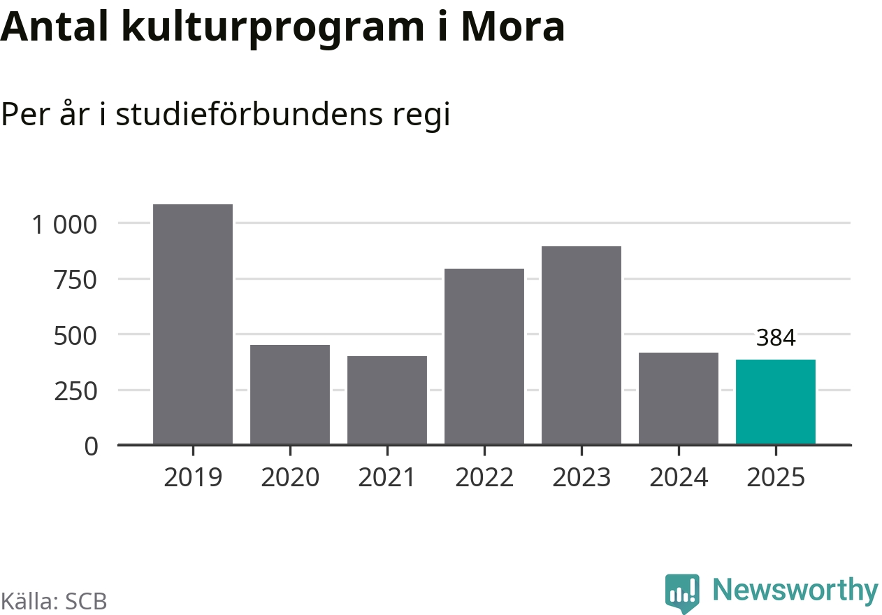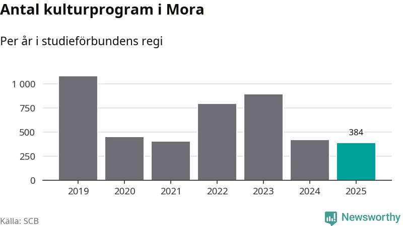 Sju av de studieförbund som 2025 fick bidrag från Folkbildningsrådet har haft någon form av verksamhet – antingen studiecirkel, annan folkbildning eller kulturprogram – i Mora under de två senaste åren. Under 2025 ökade Studiefrämjandet och Sensus antalet studietimmar i kommunen jämfört med året innan, medan fyra andra förbund i kommunen noterade färre timmar.